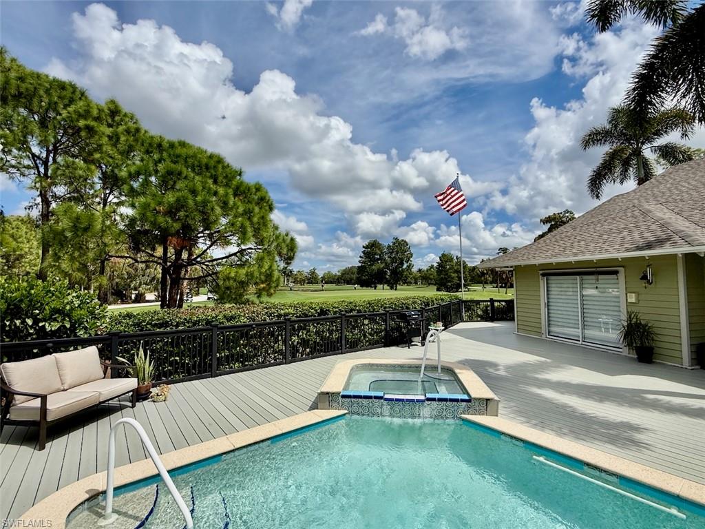 Outdoor living is equally impressive. A sunny pool with integrated spa and tranquil water feature is framed by a newer nearly 2, 000 sq. ft. composite deck—ideal for entertaining or relaxing in the Florida sunshine. A fenced yard ensures privacy, while the screened lanai and inviting front porch offer additional serene spaces. Recent major updates include a new roof (2024), new A/C (2025), and a whole-house generator with a 500-gallon tank for peace of mind.