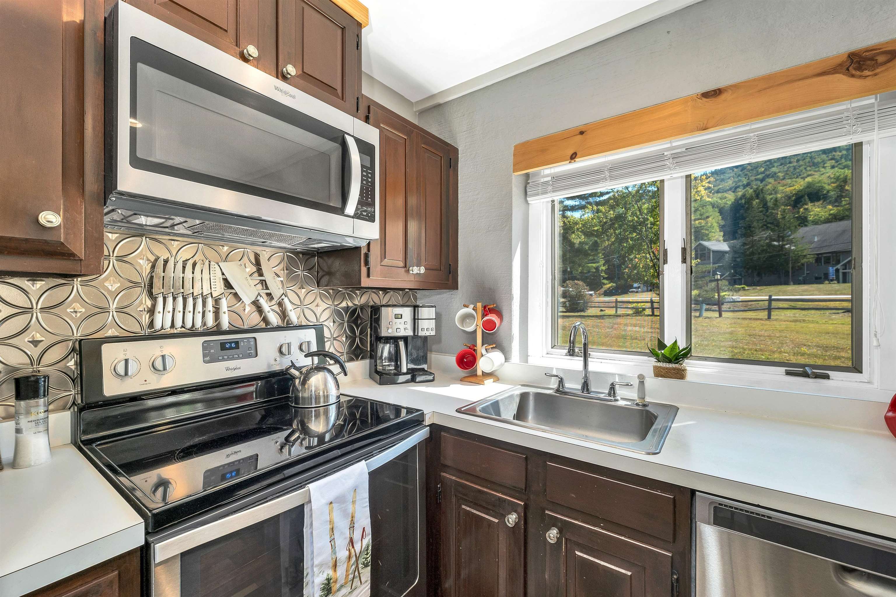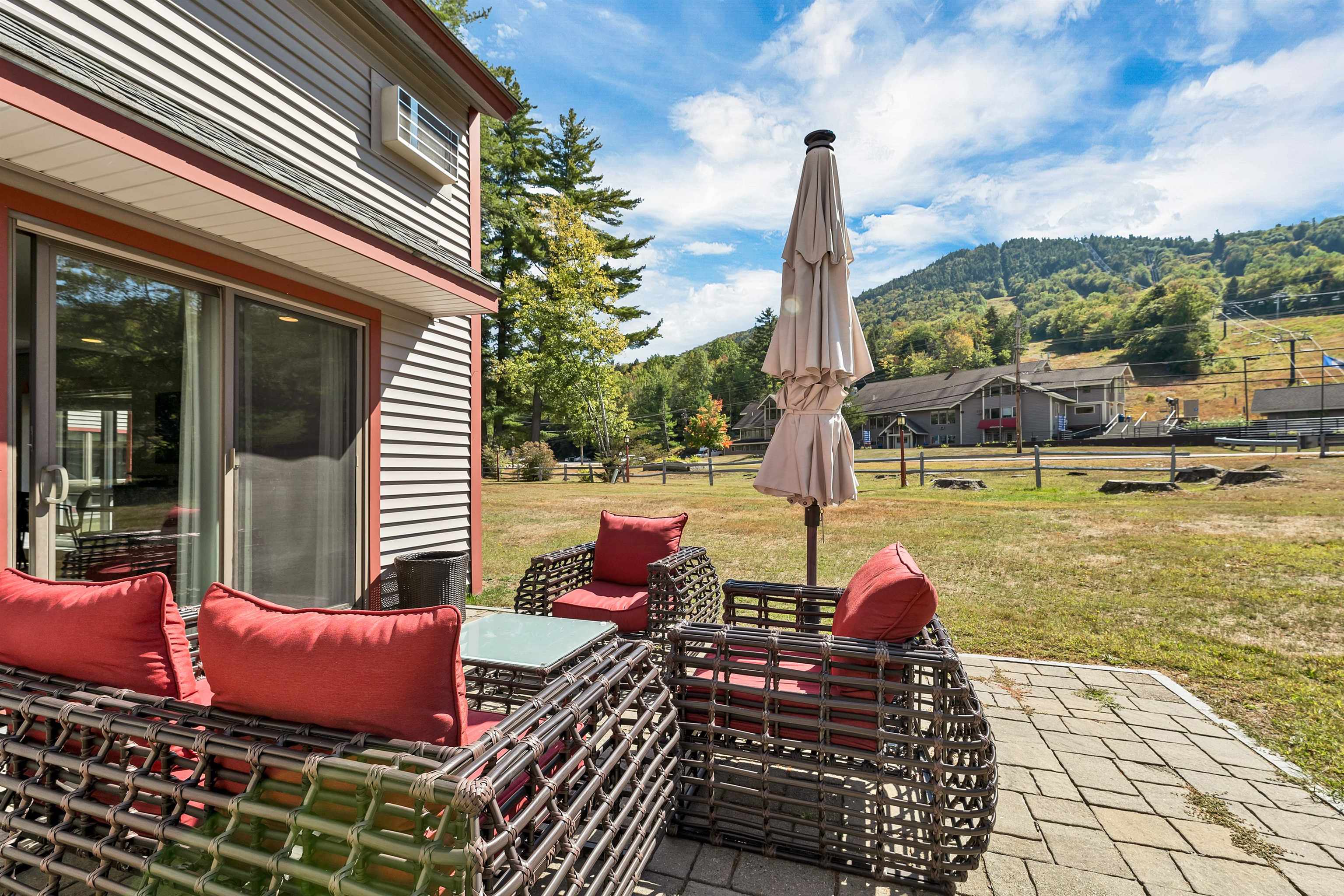 Ski trail access directly across the street on Attitash. Enjoy apres ski on your patio with unobstructed views of the ski trails and directly across from the base lodge. This townhouse style condo sleeps 6 including two bedrooms with private baths and a third full bath on the main level. This home is one of the most desirable in the development. Through the main door you are immediately drawn to the mountain view through the open plan layout. The living room, dining room and kitchen are beautifully upgraded with hard surface flooring, modern appliances and a gas heat stove for cozy winter nights. Upstairs the primary bedroom includes a king bed, en suite bath, owner's closet, office alcove, and sliders to a balcony overlooking the ski area. The second bedroom has a queen bed and another private bath. This room would make a great bunkroom as it has the added feature of a sleeping loft. This space has two twin beds and could be repurposed as a playroom, office or a larger space for additional storage. There is also a first floor laundry, mudroom with 3 ski closets and additional storage under the stairs . Attitash Mountain Village has so much to do you will never want to leave including an on-site restaurant, indoor and outdoor pools, fitness center, just one building over, Jacuzzi, sandy beach on the Saco River, game room, tennis, basketball and much more. All this and only minutes to North Conway Village. A great primary home, second home or a vacation property with an onsite rental program and a high demand location. Sold furnished. Special assessment for new roof and other improvements has been paid by the Seller including new remote control, solar powered skylight in the primary bedroom. Used as both the owners personal ski home and as a rental when not used by the family. Recent nightly rentals of $600 during holiday periods and $4800 for one week during ski vacation week. Active rental property.