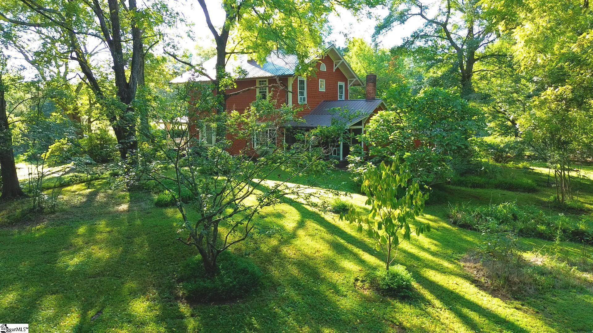 Welcome to this truly unique 32-acre gem just 2 minutes from downtown Landrum. Built in 1926, this charming farmhouse-style residence combines timeless character with modern functionality. The home features original hand-pressed tin ceilings in many rooms, beautiful hardwood flooring, a classic rocking chair front porch, and elegant architectural details that exude warmth and history. The property is a perfect blend of well-established pastures and mature forest, offering a wonderful mix of hardwoods and conifers. Equestrians will love the well-kept 3-stall barn with tack room, newer fencing, and three pastures that provide excellent facilities for horses, cows, goats, sheep, or other livestock. The acreage offers ample space for riding, grazing, and simply enjoying the serene countryside—all while being only minutes from the heart of Landrum. For those drawn to homesteading, the grounds include well-appointed chicken coop with a a fully covered fenced pen, , a fully fenced vegetable garden with its own shed, and an abundance of established plantings, including fig trees, Concord grape vines, thornless blackberries, wine berries, and more. The land has been chemical-free for over 40 years, making it an exceptional choice for sustainable living. Additional features include: • 50 amp hookup for a camper • Two glamping platforms in the woods with electrical and water • Fenced-in backyard • Wolfe Creek running through the property and one known natural spring This property truly has it all—whether you are an equestrian, farmer, homesteader, or simply seeking a private retreat that blends history, charm, and modern amenities. Adding to its appeal, the new Saluda Grade Rails-to-Trails will run right in front of the property. Located in the highly sought-after School District 1.