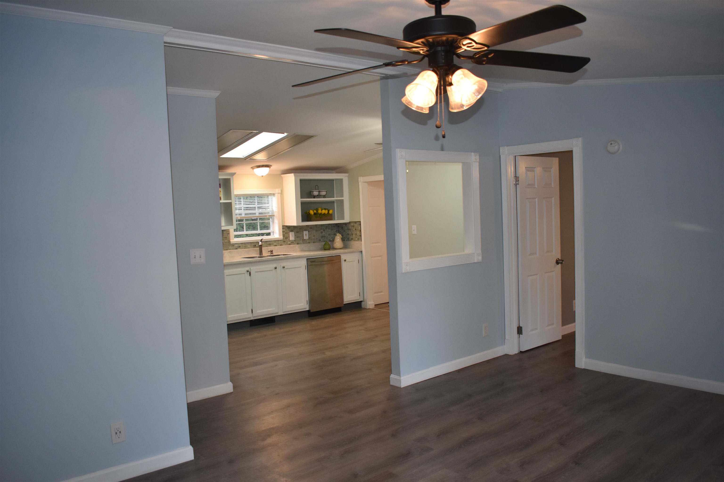 Seller will pay your first 3 months of Park Rent with an acceptable offer! Bright and welcoming 1995 manufactured home in a 55+ community! This home offers an open floor plan and comfortable one-level living. The spacious eat-in kitchen boasts abundant cabinetry and open shelving, stainless steel appliances, skylights, and a convenient pass-through to the living room. A large picture window and ceiling fan highlight the inviting living area. The primary suite includes a generous closet and private bath with a walk-in shower. Two additional bedrooms share a full hall bath with a large vanity and tub. Added conveniences include a full-size washer and dryer, extra storage closet, and an attached garage with direct entry. Located in a desirable 55+ park close to shopping, dining, and local amenities!