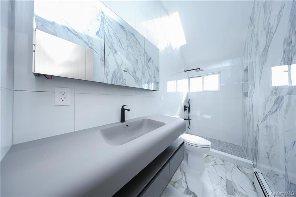 Welcome to this fully renovated two-family home, renovated from the inside out with brand-new plumbing, electrical, flooring, kitchens, bathrooms, HVAC, and exterior finishes. Every detail has been thoughtfully upgraded for modern living. The main unit offers a spacious duplex layout. The first-floor features two large living areas with an open-concept kitchen, a convenient half bathroom, a balcony, plus access to a rear deck overlooking the backyard. Upper level are three well-proportioned bedrooms with custom closets, including a primary suite with its own full bath, along with an additional full bathroom. This unit includes a comfortable 1-bedroom, 1-bathroom layout with a living room and kitchen, ideal for rental income or an extended family. Additional highlights include a finished basement, a private driveway, and a garage, providing ample parking for multiple cars and storage. Building size 18x46 over lot size 26x103. Located just minutes away from the Staten Island Mall, shops, schools, and parks, and convenient access to multiple MTA bus lines, including S61, S91, S44, S59, S94, and SIM4 to Manhattan. This move-in-ready property combines space, functionality, and a full modern renovation — a perfect opportunity for both homeowners and investors.