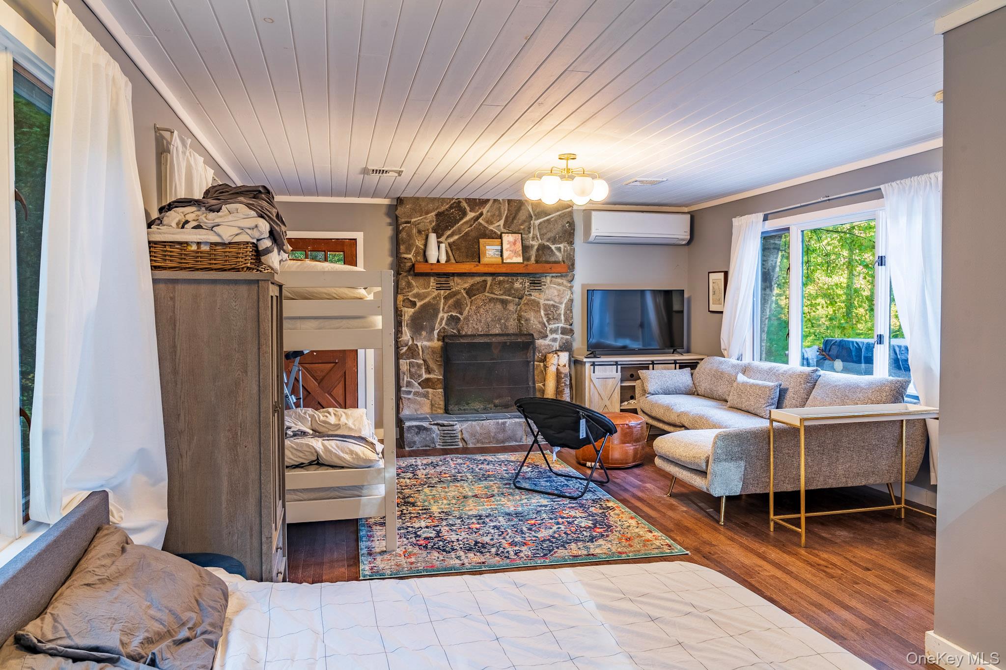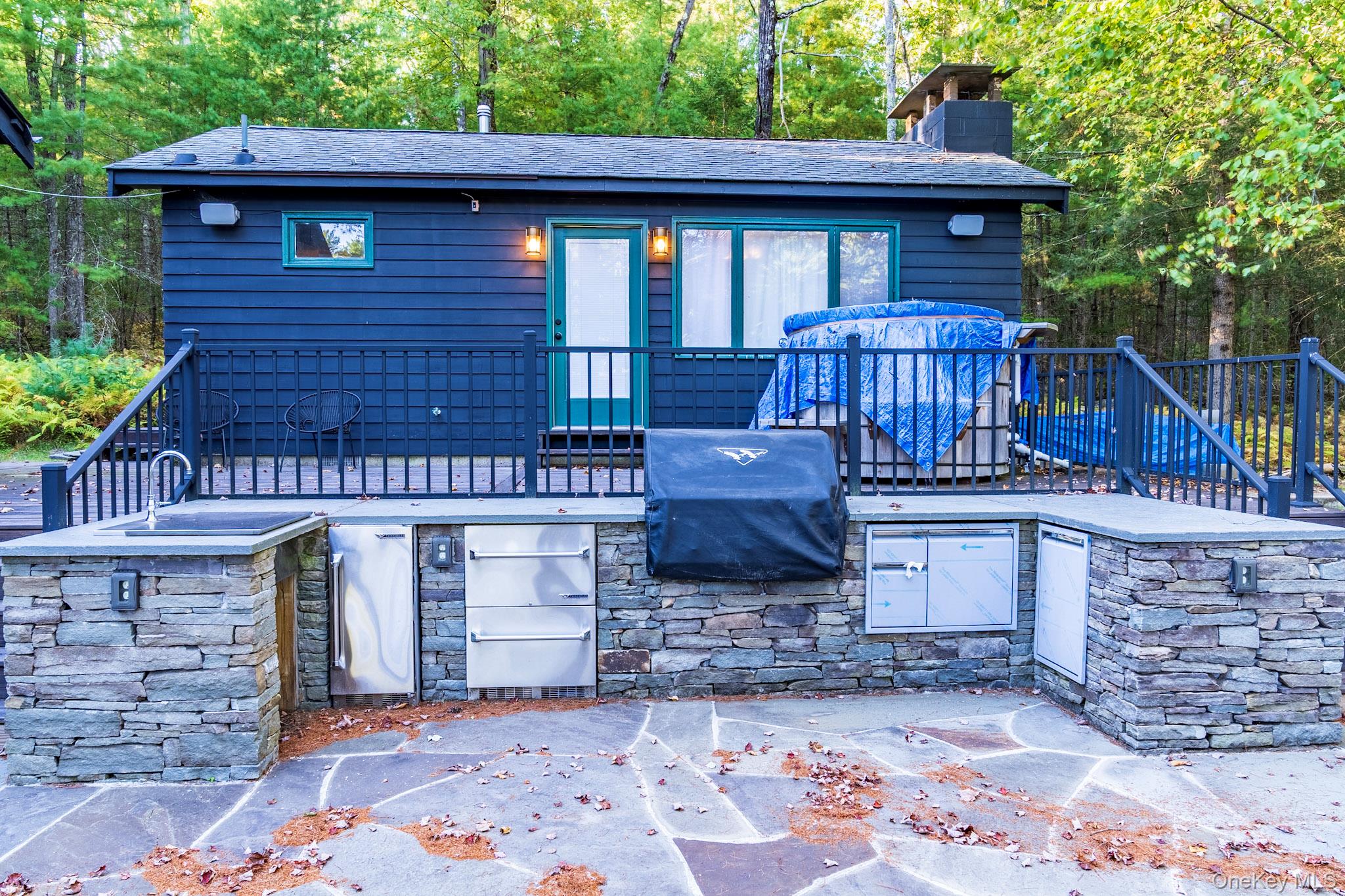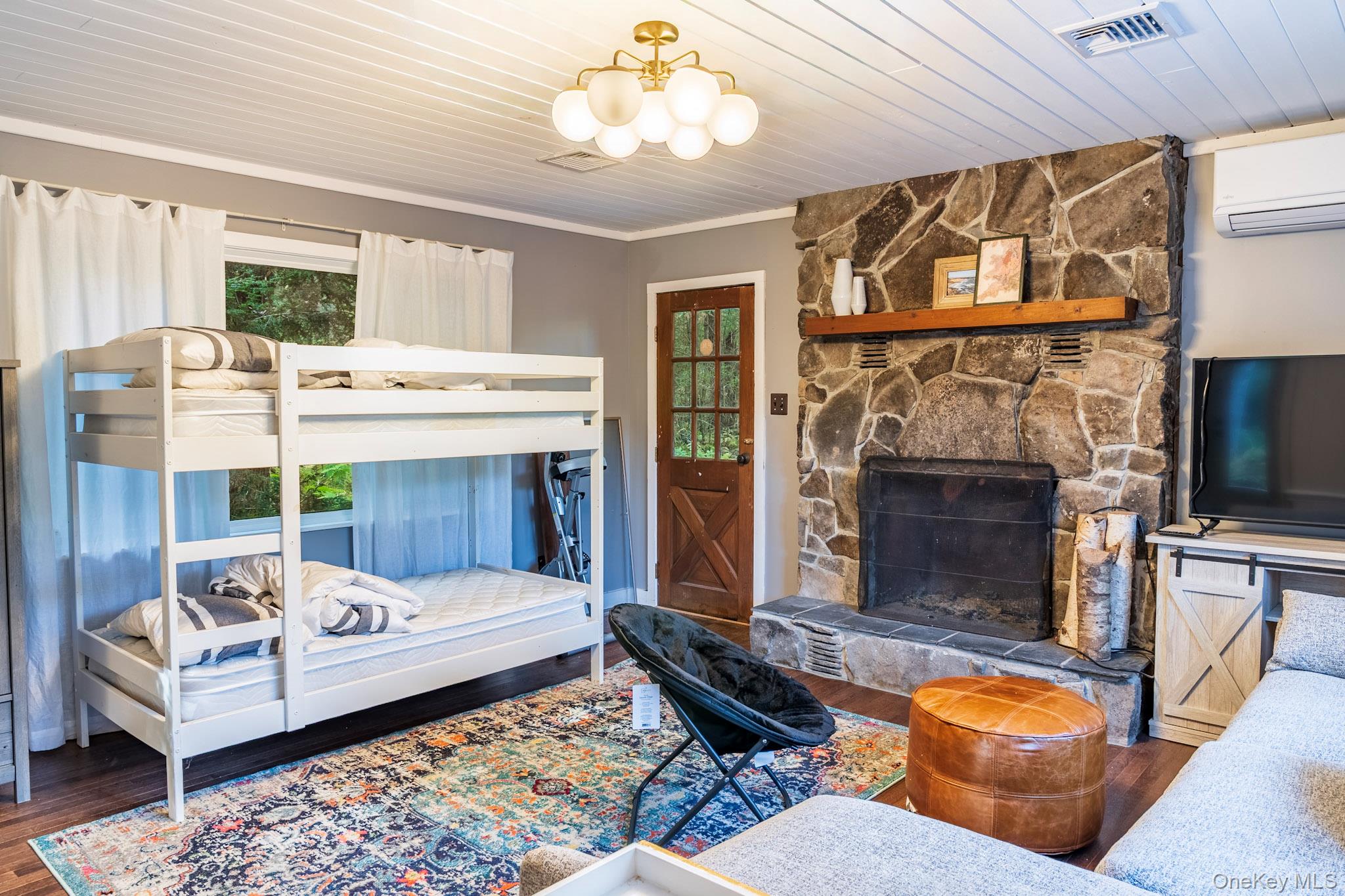 Your dream lakefront retreat awaits at the very end of a private road in beautiful Forestburgh, NY. This rare and historic property features a stunningly restored cabin with a separate guest house, nestled among the trees with direct access to a serene, private lake. As you pull into the driveway, you’ll immediately feel the magic of this one-of-a-kind home, where vaulted ceilings, outdoor entertaining, and breathtaking lake views welcome you into a space filled with warmth and character. Originally part of the 1939 New York World’s Fair, the cabin showcases an original stone fireplace stamped from that historic event, along with carefully preserved details like original cabinetry and built-ins that add timeless charm. The kitchen has been thoughtfully updated with new countertops while maintaining its vintage appeal, and the bathroom has been fully renovated with modern finishes. The separate guest house offers a cozy stone fireplace and a brand-new bathroom, perfect for hosting friends and family or creating a private studio or rental space. Outside, the property truly shines with an oversized bluestone patio designed for entertaining, and a spectacular one of a kind, custom Teak hot tub to enjoy. The new patio features a full high-end outdoor kitchen, a grand bluestone fireplace, and multiple areas to gather and relax by the lake. Whether you're hosting large events or simply enjoying a peaceful evening in nature, this home delivers both privacy and convenience. The property is a few minutes from Monticello Motorclub, the Forestburgh Playhouse, the Forestburgh General Store, Forage Pizzeria, Resort World Casino, and a 1 1/2 drive to the GWB. With a blend of rich history, stylish comfort, and modern upgrades, this lakefront gem offers an unmatched lifestyle for full-time living, weekend getaways, or investment potential. Don’t miss this amazing opportunity to own one of Forestburgh’s most enchanting homes.