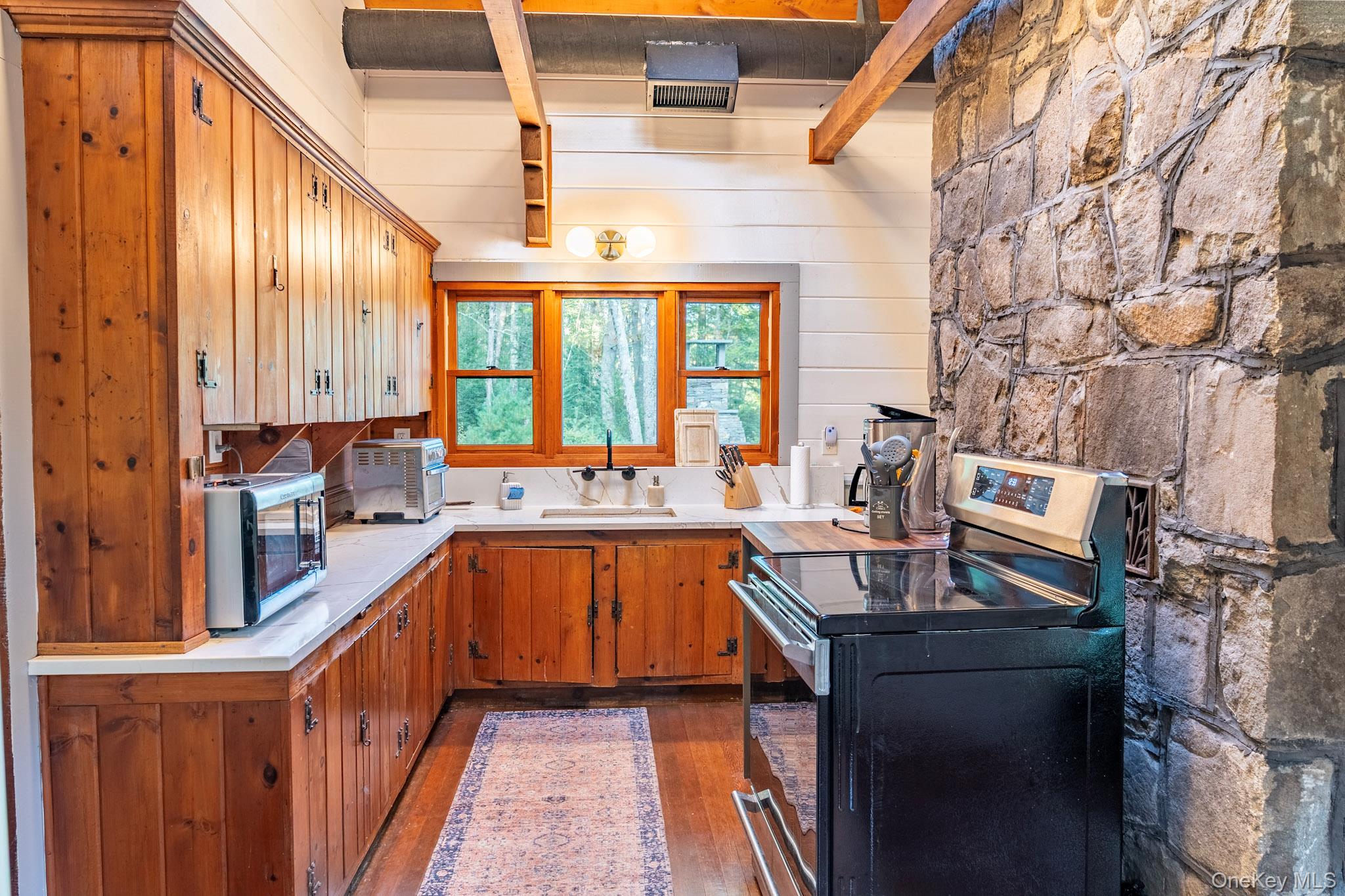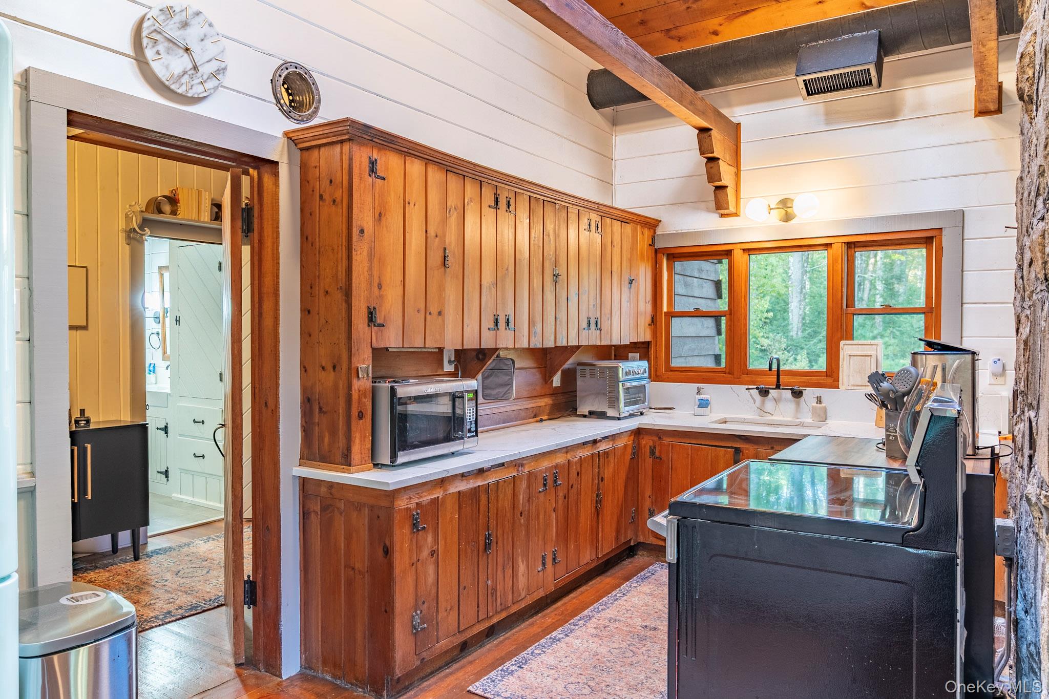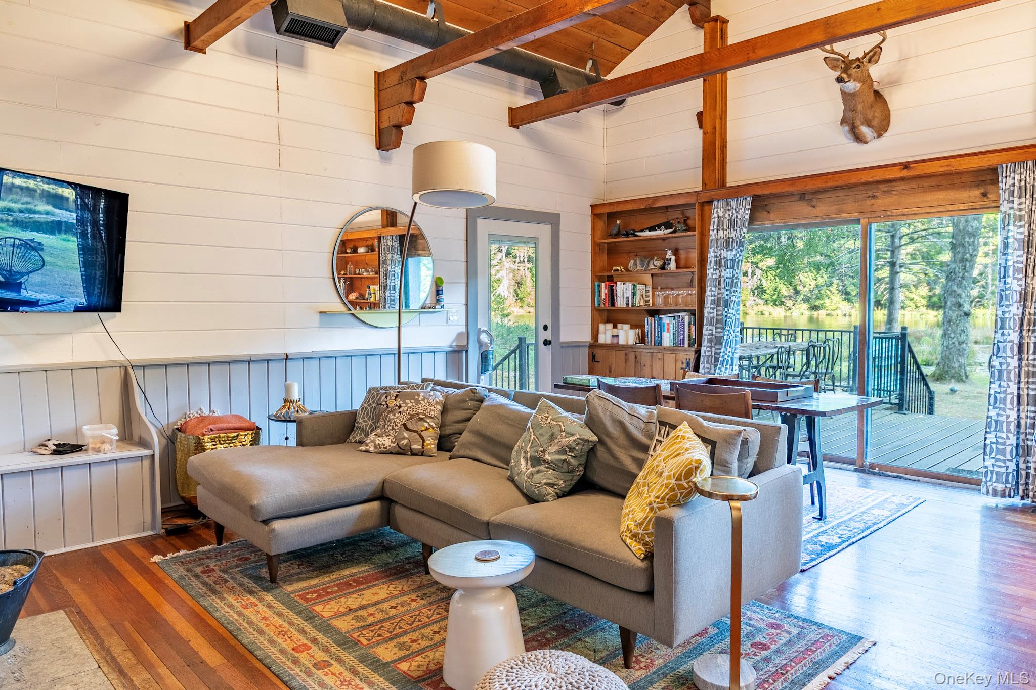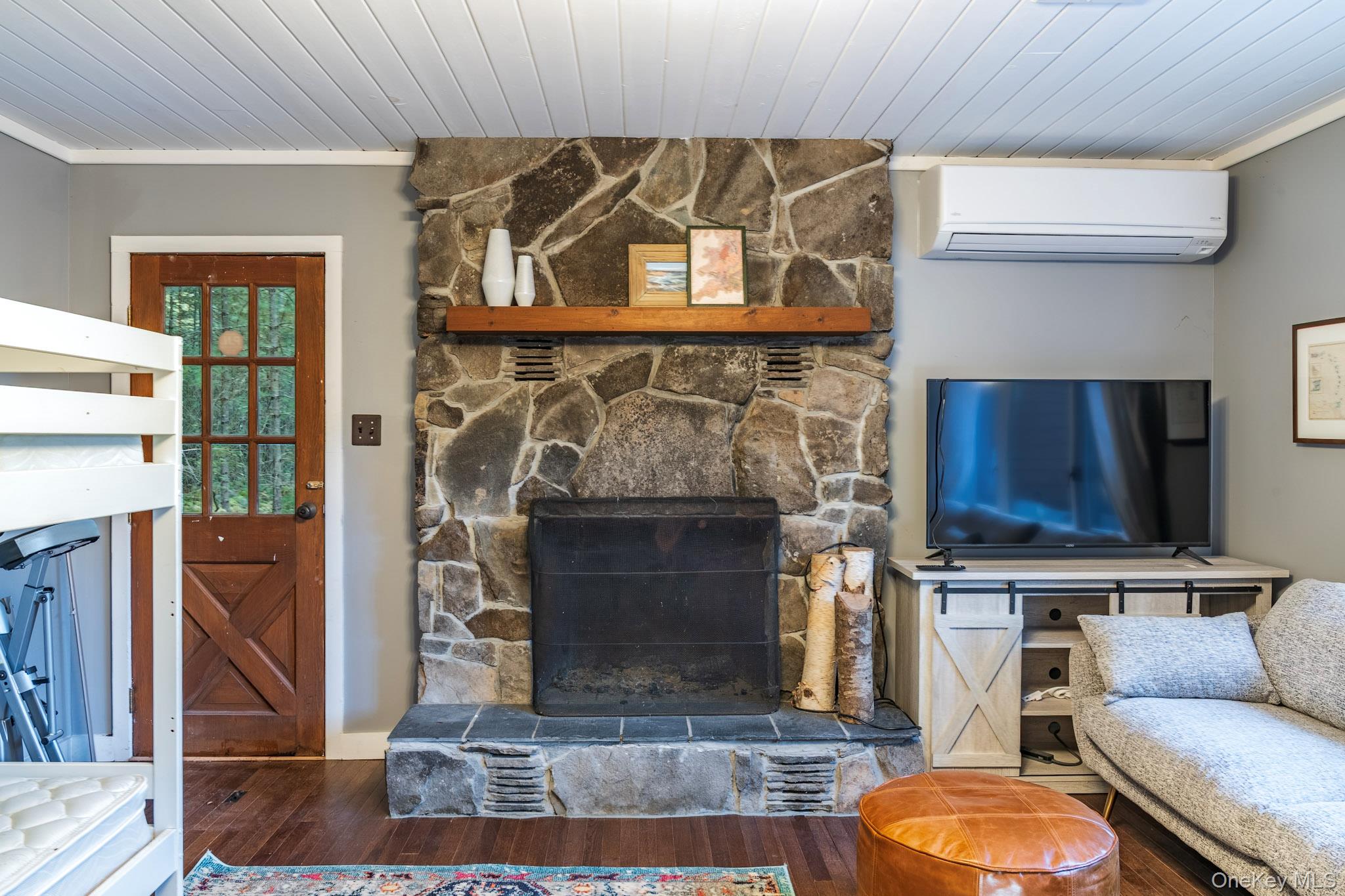Your dream lakefront retreat awaits at the very end of a private road in beautiful Forestburgh, NY. This rare and historic property features a stunningly restored cabin with a separate guest house, nestled among the trees with direct access to a serene, private lake. As you pull into the driveway, you’ll immediately feel the magic of this one-of-a-kind home, where vaulted ceilings, outdoor entertaining, and breathtaking lake views welcome you into a space filled with warmth and character. Originally part of the 1939 New York World’s Fair, the cabin showcases an original stone fireplace stamped from that historic event, along with carefully preserved details like original cabinetry and built-ins that add timeless charm. The kitchen has been thoughtfully updated with new countertops while maintaining its vintage appeal, and the bathroom has been fully renovated with modern finishes. The separate guest house offers a cozy stone fireplace and a brand-new bathroom, perfect for hosting friends and family or creating a private studio or rental space. Outside, the property truly shines with an oversized bluestone patio designed for entertaining, and a spectacular one of a kind, custom Teak hot tub to enjoy. The new patio features a full high-end outdoor kitchen, a grand bluestone fireplace, and multiple areas to gather and relax by the lake. Whether you're hosting large events or simply enjoying a peaceful evening in nature, this home delivers both privacy and convenience. The property is a few minutes from Monticello Motorclub, the Forestburgh Playhouse, the Forestburgh General Store, Forage Pizzeria, Resort World Casino, and a 1 1/2 drive to the GWB. With a blend of rich history, stylish comfort, and modern upgrades, this lakefront gem offers an unmatched lifestyle for full-time living, weekend getaways, or investment potential. Don’t miss this amazing opportunity to own one of Forestburgh’s most enchanting homes.