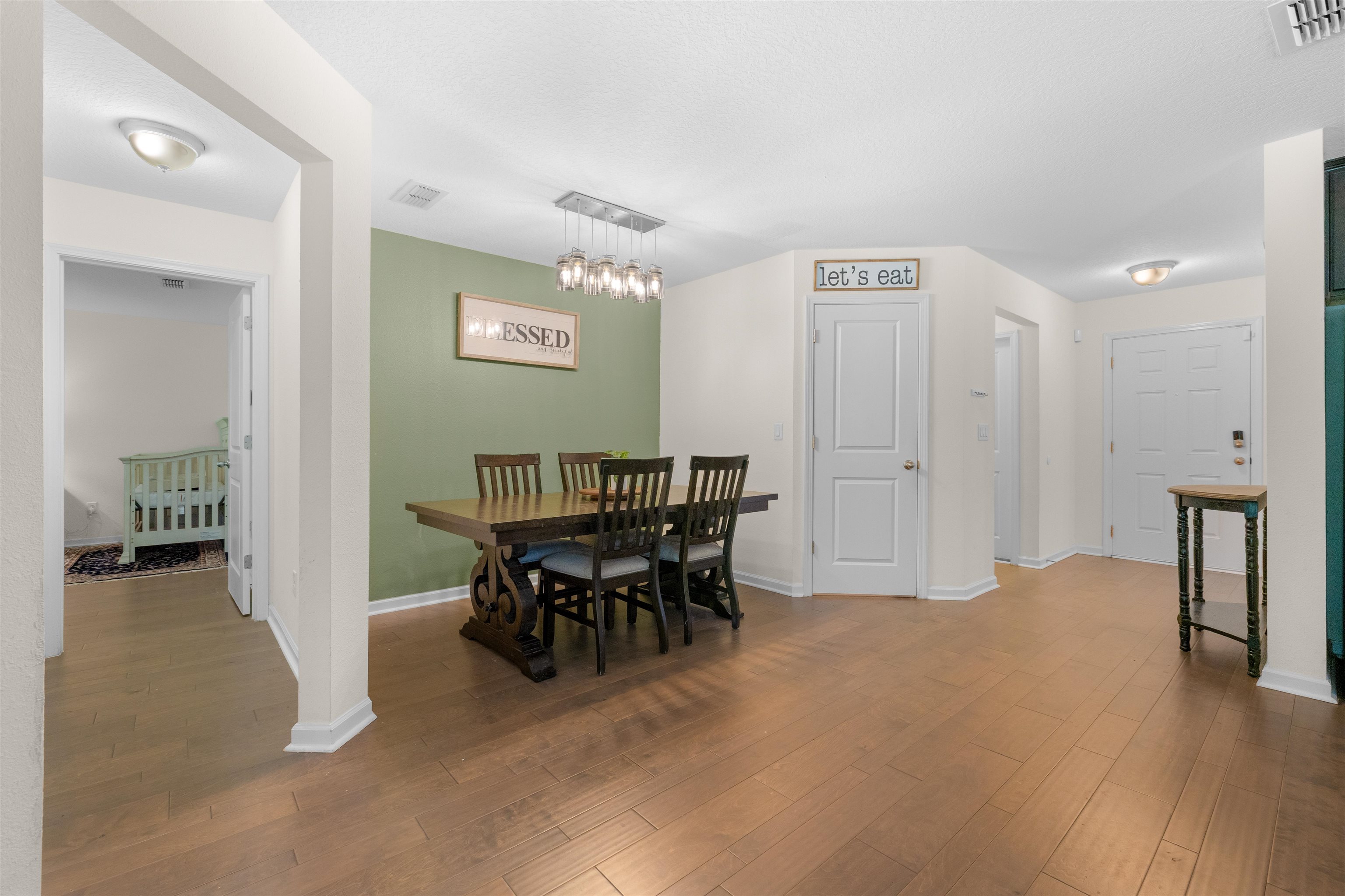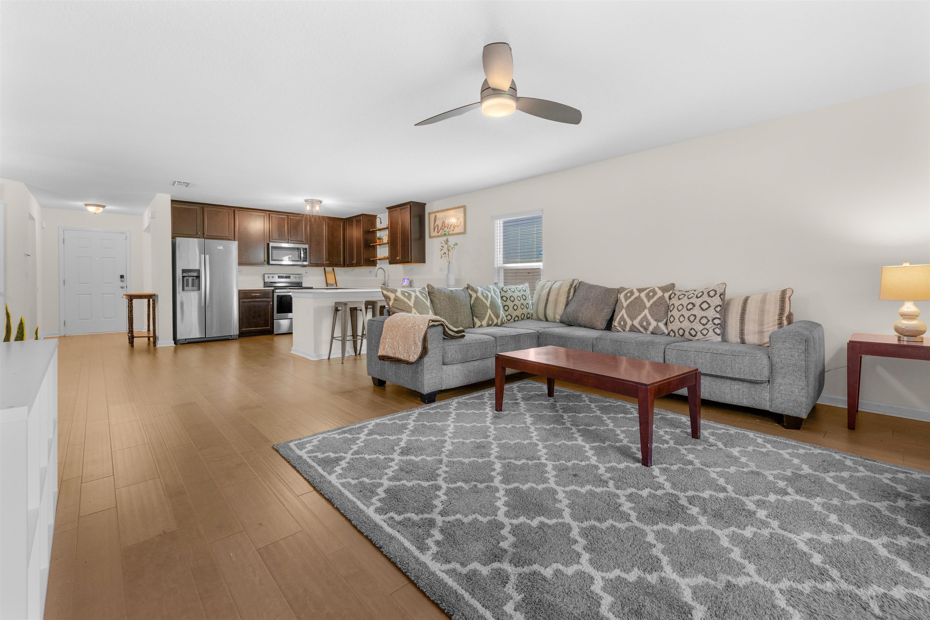 Massive two story 4 bedroom 3 and a half bathroom home just listed! Wood plank flooring in kitchen and living areas. Quartz countertops and stainless steel appliances compliment this open kitchen layout with full walk in pantry. Oversized two car garage. Primary bedroom downstairs with dual closets and en-suite bathroom. additional closets downstairs for storage with half bathroom for guests. Upstairs is 3 additional bedrooms and 2 bathrooms, a loft/flex space and additional room for entertaining and full laundry room. Fully fenced backyard with the largest lot in the community. Great central location minutes from the beaches or historic downtown St. Augustine. Schedule your showing today!