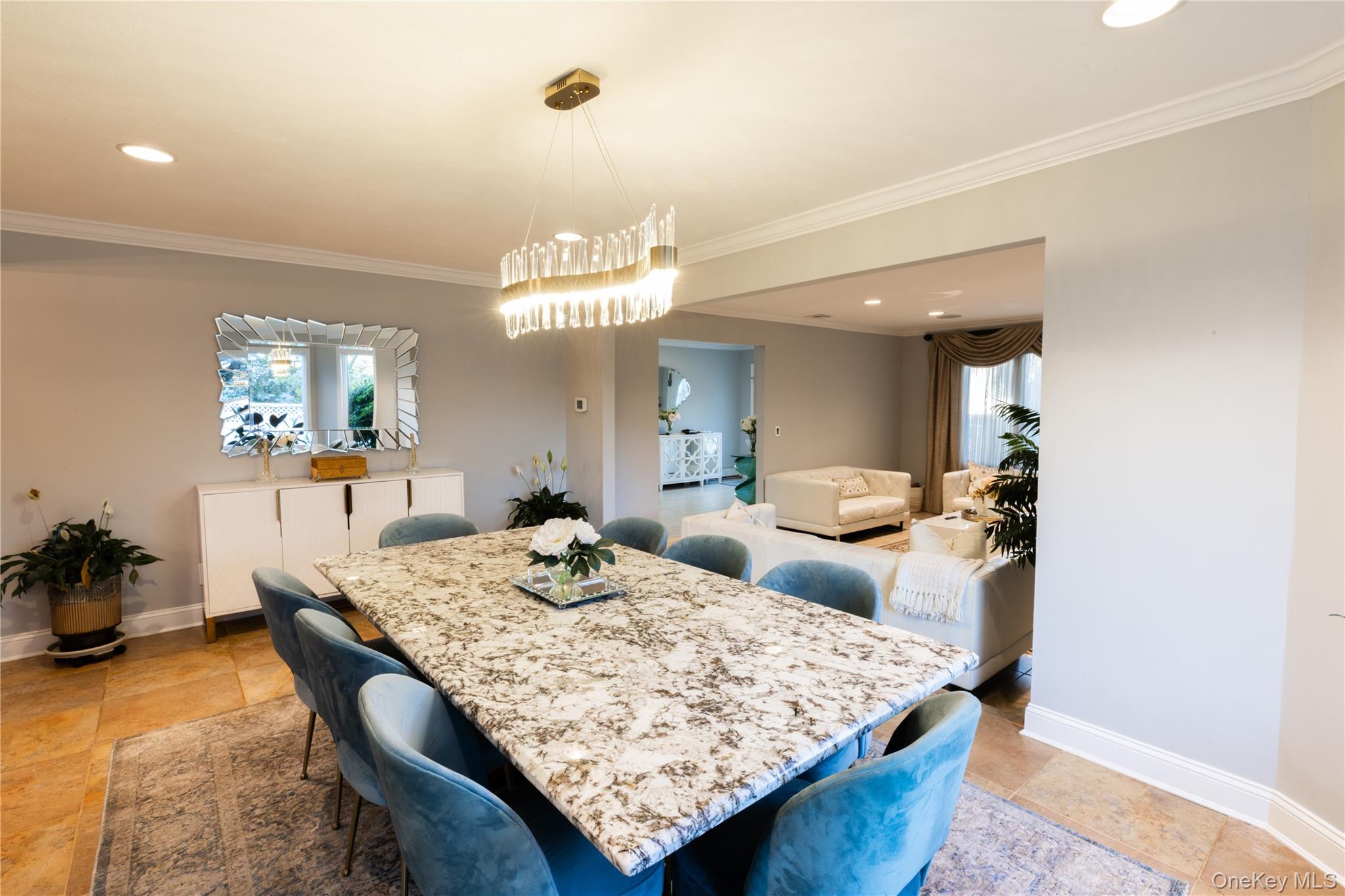 Step into this 3, 100 square foot Splanch, set on Jason Court in Bellmore, where light, space, and thoughtful design flow from one room to the next. The foyer opens into a welcoming living area, perfectly balanced by an elegant dining room. The open layout guides you toward the kitchen, appointed with granite countertops, custom cabinetry, and a Viking stove that anchors the space with a chef’s touch. Just a few steps up, the family room unfolds with soaring ceilings and a gas fireplace as its centerpiece. A built-in banquette sits against an oversized window, offering views of the backyard retreat beyond. Upstairs, the primary suite stretches into a spacious sanctuary with its own sitting area and private balcony—an ideal perch for taking in the water views. The en suite bath complements the suite with its refined design, while three additional bedrooms and a full bathroom with double vanity complete this level. Outdoors, the property transforms into a private resort setting. A heated pool shimmers at the center, framed by mature landscaping and multiple entertaining spaces. The outdoor grill, complete with a large island and even an ice cream maker, sits beneath a pergola for gatherings in every season. This home’s modern touches extend throughout, with smart-home features and Bose surround sound carrying into the backyard, blending everyday living with exceptional convenience. From quiet evenings on the deck to afternoons by the pool, each space feels intentionally designed for comfort and enjoyment.