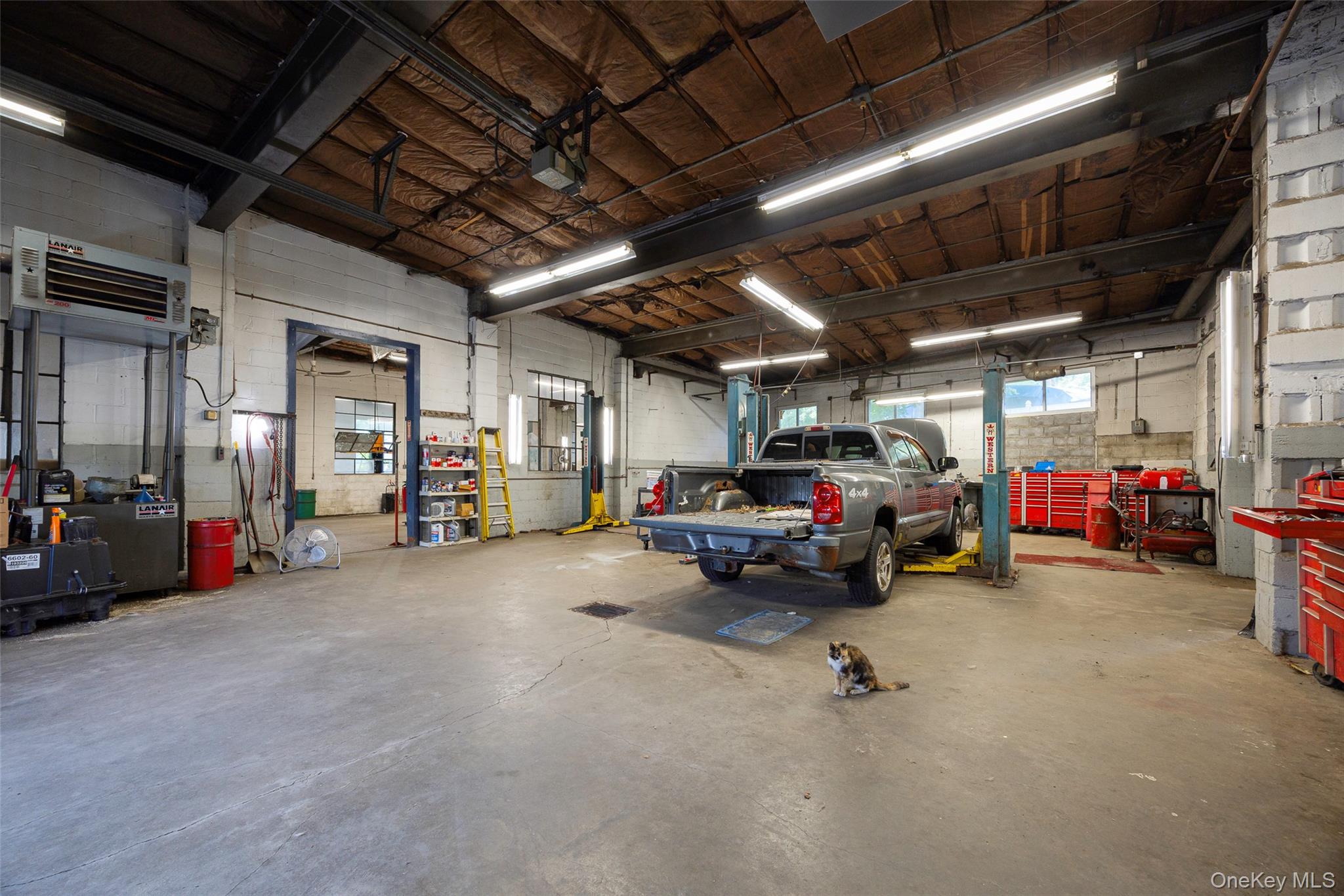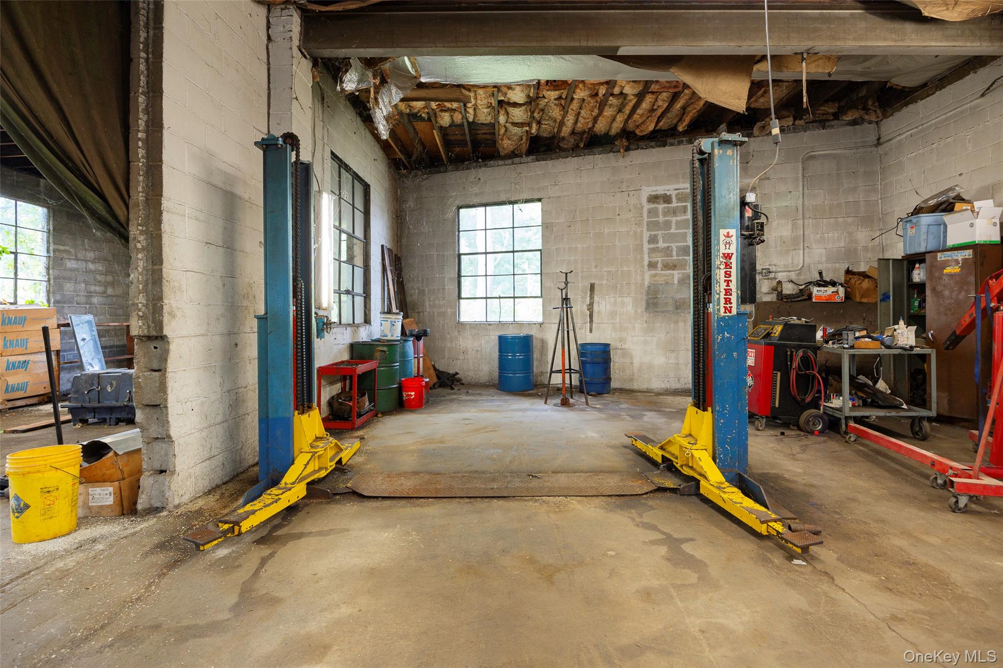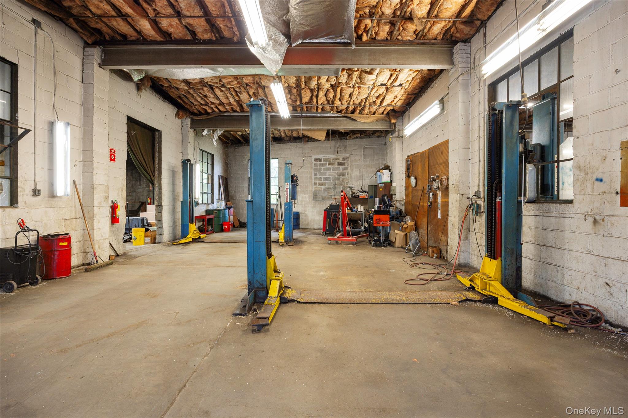 Centrally located warehouse with three large bays, workshop & two story office space. 21' ceiling with three overhead doors and five lifts for a turnkey operation. Office space includes first floor waiting room, two offices & restroom plus second floor office and restroom. Block structure with municipal water/sewer & natural gas. Arlington Town Center zoning conducive to a multitude of uses. Easy access to Route 55, Route 44 & Taconic State Parkway. An exceptional opportunity for use in the current configuration or redevelopment.