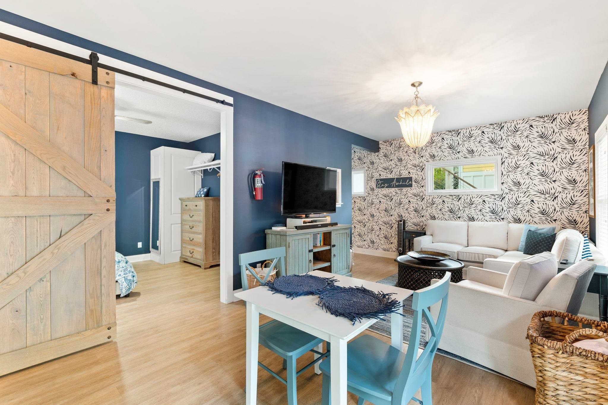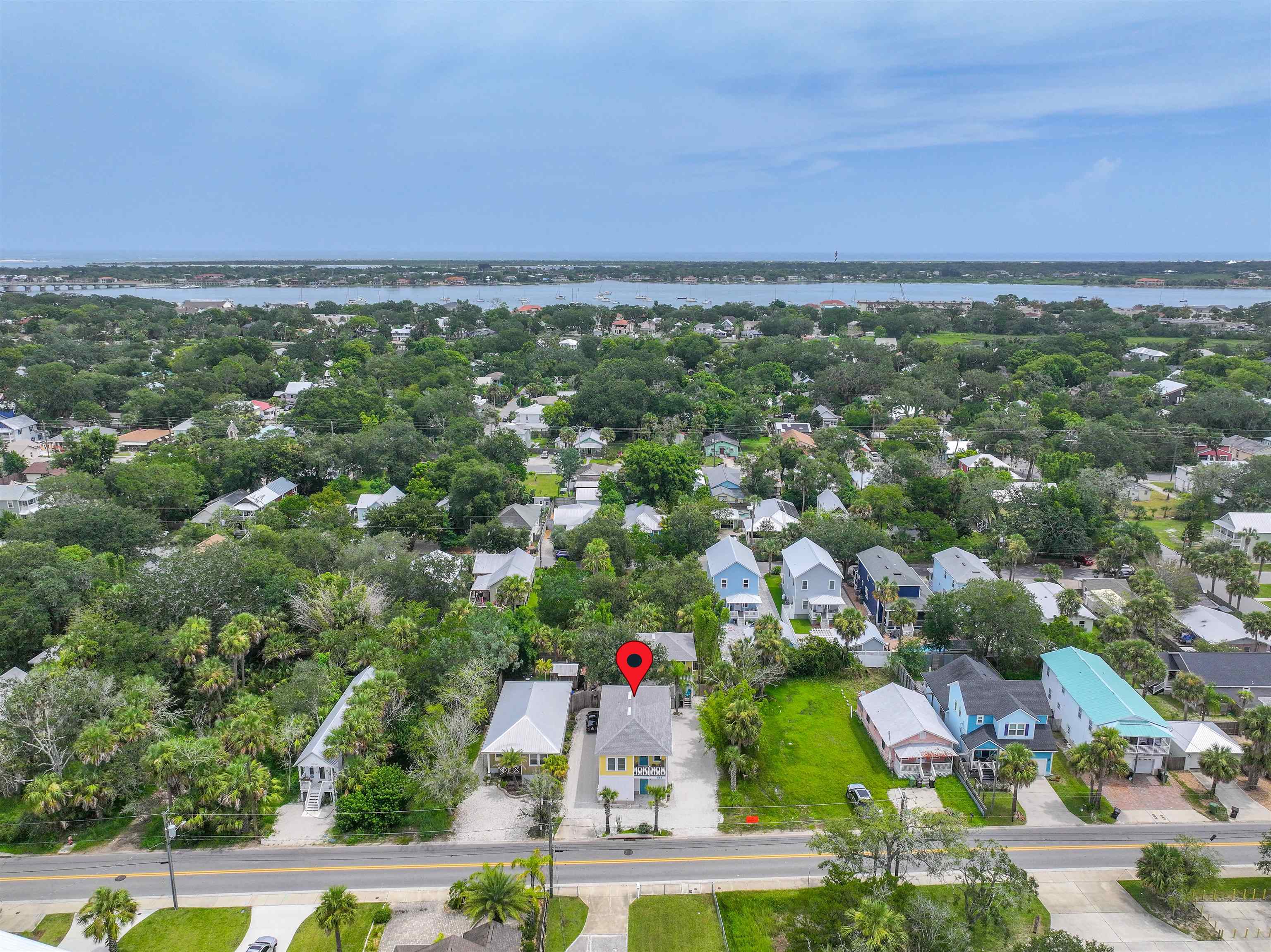 Located along the quiet, increasingly sought-after stretch of Riberia Street just north of Lincolnville, 251 Riberia offers a rare investment opportunity in the heart of historic St. Augustine. This fully furnished, income-producing property includes three distinct rental units, two garages, private outdoor areas, and ample parking—all just minutes from the waterfront and downtown. Zoned for nightly rentals, it's ready to generate strong returns from day one. The largest unit, “Family Tides, ” is a spacious three-bedroom, two-bath home perched above the garages, with a balcony that looks out over the marina. Inside, a refined coastal palette sets the tone—white cabinetry, granite countertops, stainless appliances, and soft blue hues create a light, breezy feel. The primary bedroom features an en suite bath and generous closet space, while two additional bedrooms share a beautifully updated hall bath. Below, a large, air-conditioned utility space provides room for laundry, storage, or future customization. One of the garages also includes a private entrance, offering potential for conversion into a studio space. Unit B, “The Lookout, ” is a bright one-bedroom apartment with a relaxed, boho-inspired aesthetic. Green walls and coral accents bring a sense of warmth and connection to the natural surroundings. A new GE washer and dryer are included. Beneath it, Unit C—“Déjà Blue”—is a well-designed studio that leans into a more modern, moody style. Deep navy and slate tones, rustic textures, and layered finishes create an inviting atmosphere, with the added bonus of a private, fenced backyard surrounded by tropical landscaping and a spacious seating area. Each unit is fully equipped and styled with a curated mix of comfort and function—stocked kitchens, Smart TVs, bicycles, beach chairs, and more are all included. New AC systems have been installed throughout for year-round ease. Set just a short stroll or bike ride from downtown’s shops, galleries, and waterfront parks—and only a quick drive to the white-sand beaches—251 Riberia offers a rare blend of location, flexibility, and design-forward living. Whether you're building a short-term rental portfolio or seeking a unique multi-unit property to live in and lease, this one stands apart with both substance and style.
