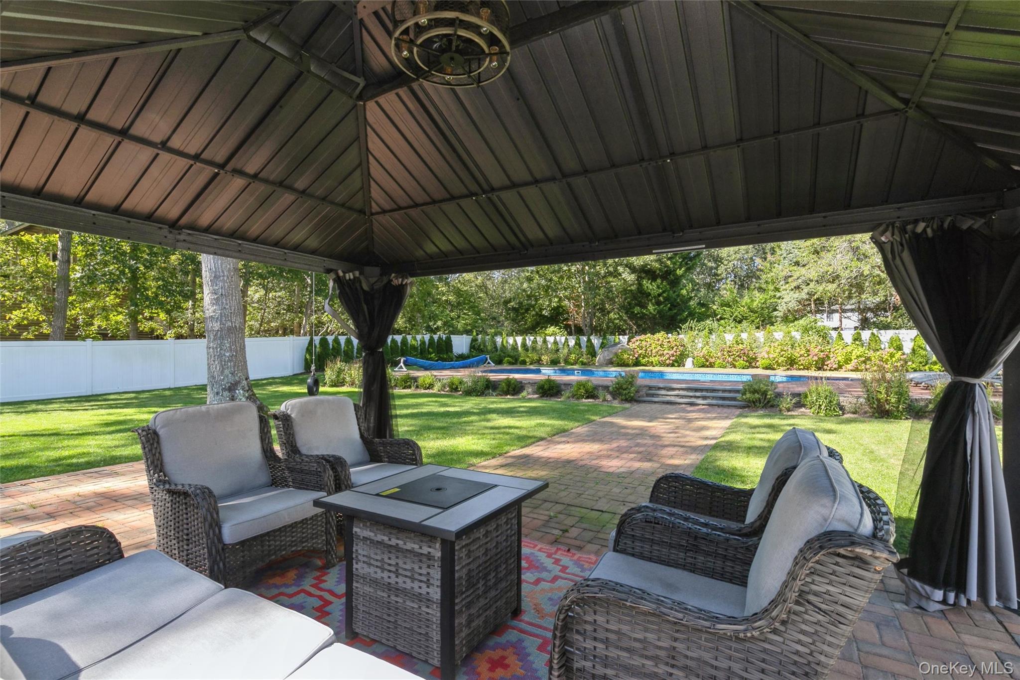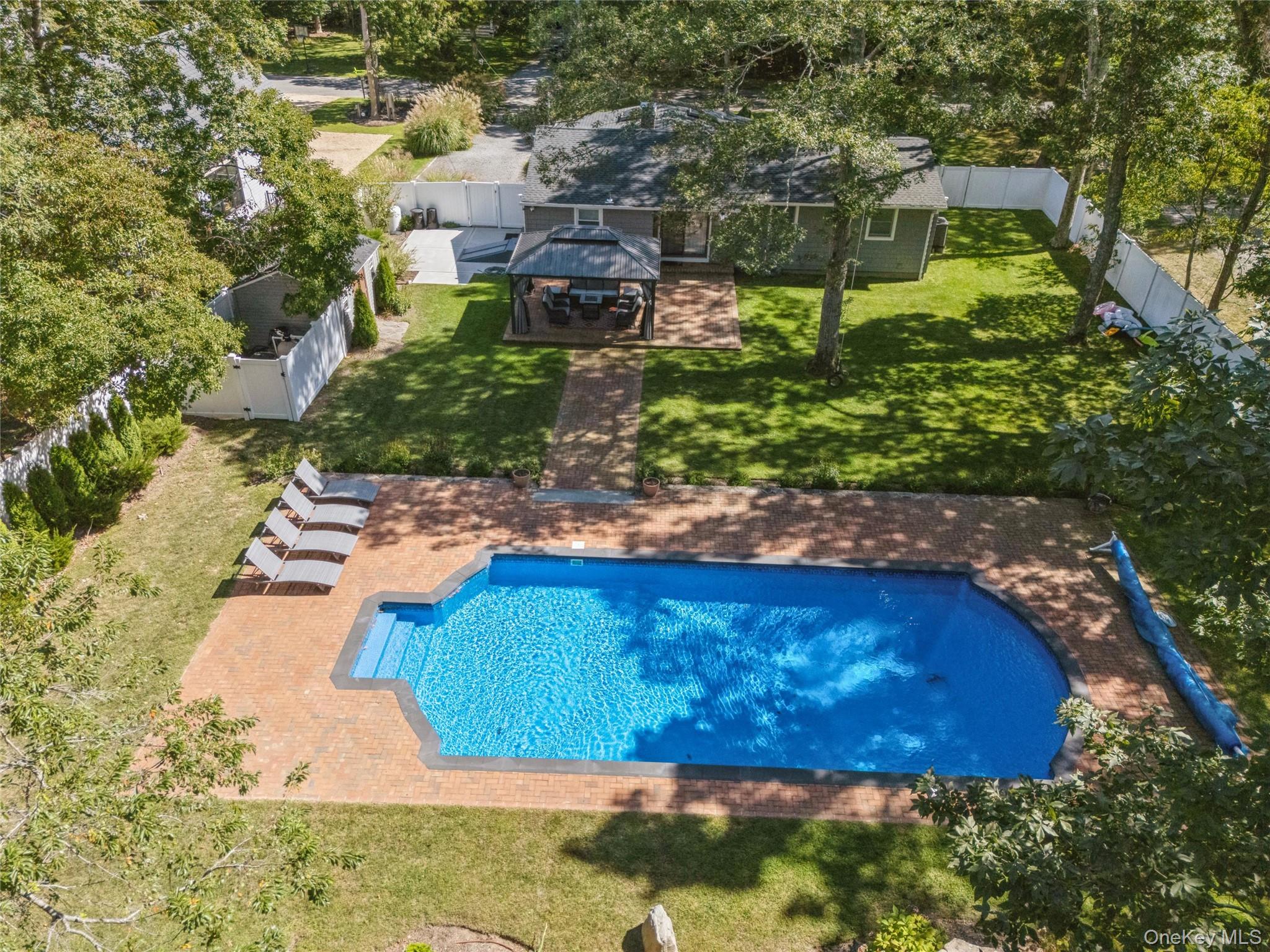 Welcome to this beautifully UPDATED RANCH in the sought-after CLEARWATER BEACH community of East Hampton. Offering both a full-time residence and the ideal HAMPTONS RETREAT, this home combines MODERN UPDATES, A RESORT-LIKE BACKYARD and EXCLUSIVE BEACH ACCESS. This home is MOVE IN READY and has a SPACIOUS and SUN-FILLED layout with VAULTED CEILINGS, SKYLIGHTS, RECESSED LIGHTING, HARDWOOD FLOORS, CROWN MOLDING, and a Cozy DUAL WOOD BURING FIREPLACE shared by the Living and Dining Rooms. The NEWLY RENOVATED KITCHEN showcases QUARTZ COUNTERS, WHITE CUSTOM CABINETRY, STAINLESS STEEL APPLIANCES, PANTRY and a BREAKFAST BAR. BATHROOMS have been RENOVATED to give a spa like feel. Bedrooms are all good size with ample closets. The home also includes SMART THERMOSTATS for heating/cooling and in-ground sprinklers. Plus, the VINYL SIDING, ROOF, CENTRAL AIR, BOILER, HOT WATER HEATER are all less than 3 years old and provide efficiency and peace of mind. The Backyard is extremely inviting and is like a PRIVATE BACKYARD OASIS which includes a Brick Patio, Gazebo and 18x40 HEATED IN-GROUND POOL where the liner, filter and heater are approximately 4 years old. White PVC FENCING encloses the back yard making it very private. The secluded yard is BEAUTIFULLY LANDSCAPED and designed for entertaining or simply relaxing. In addition, you can enjoy membership to the private Clearwater Beach Association, featuring a sandy bay beach, marina with boat slips, pavilion, playground, bocce, and basketball courts - just minutes from your door. Not only is it close to the CLEARWATER BEACH, but it is close to EAST HAMPTON VILLAGE, SHOPS, RESTAURANTS, LIRR, SCHOOLS, AND PARKS, this home is a TRUE GEM that blends LIFESTYLE, LOCATION AND LUXURY.