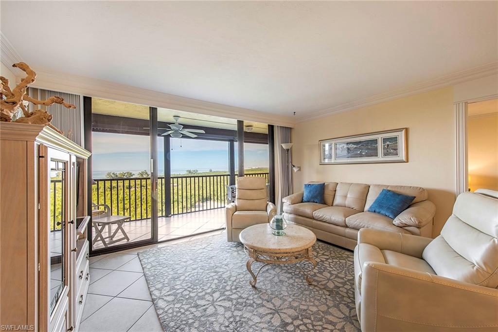 STILL AVAILABLE FOR FEBRUARY AND/OR MARCH 2025. Breath-taking views of the Gulf and bay backwater views from this top floor condominium. Upgrades include bone tile in all living areas. A beach themed condo to relax in. White leather sofa and a leather chair in the living room. The glass dining room table seats four plus there is a two person dinette in the eat-in kitchen. This unit is well stocked with every creature comfort available. Convenient split floor plan with each bedroom set up as a suite. The guest bedroom is now set up with a queen sized bed and there is a new living room sofa and 2 swivel/recliner chairs. Just a short stroll to the beach. Amenities include a heated pool, tennis, and gated entry. Owner storage closet has beach chairs and floats.