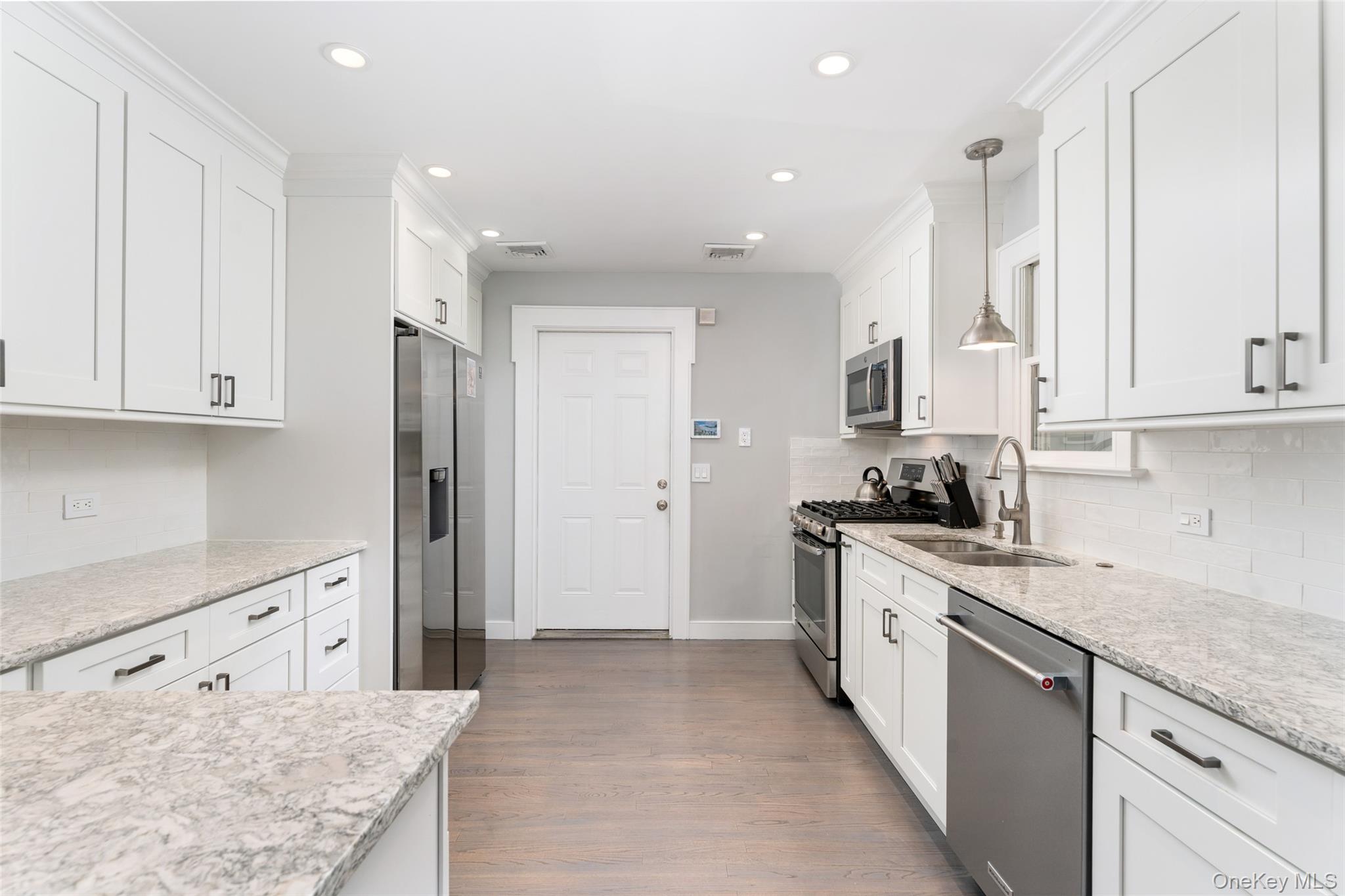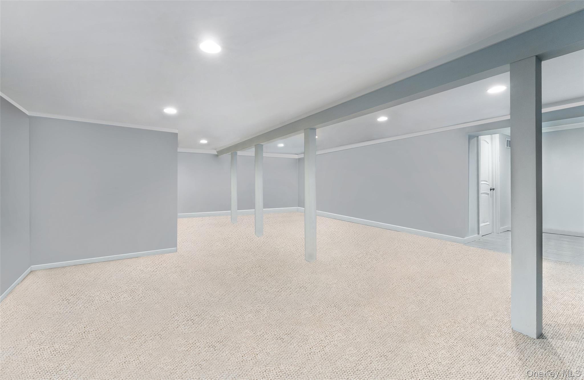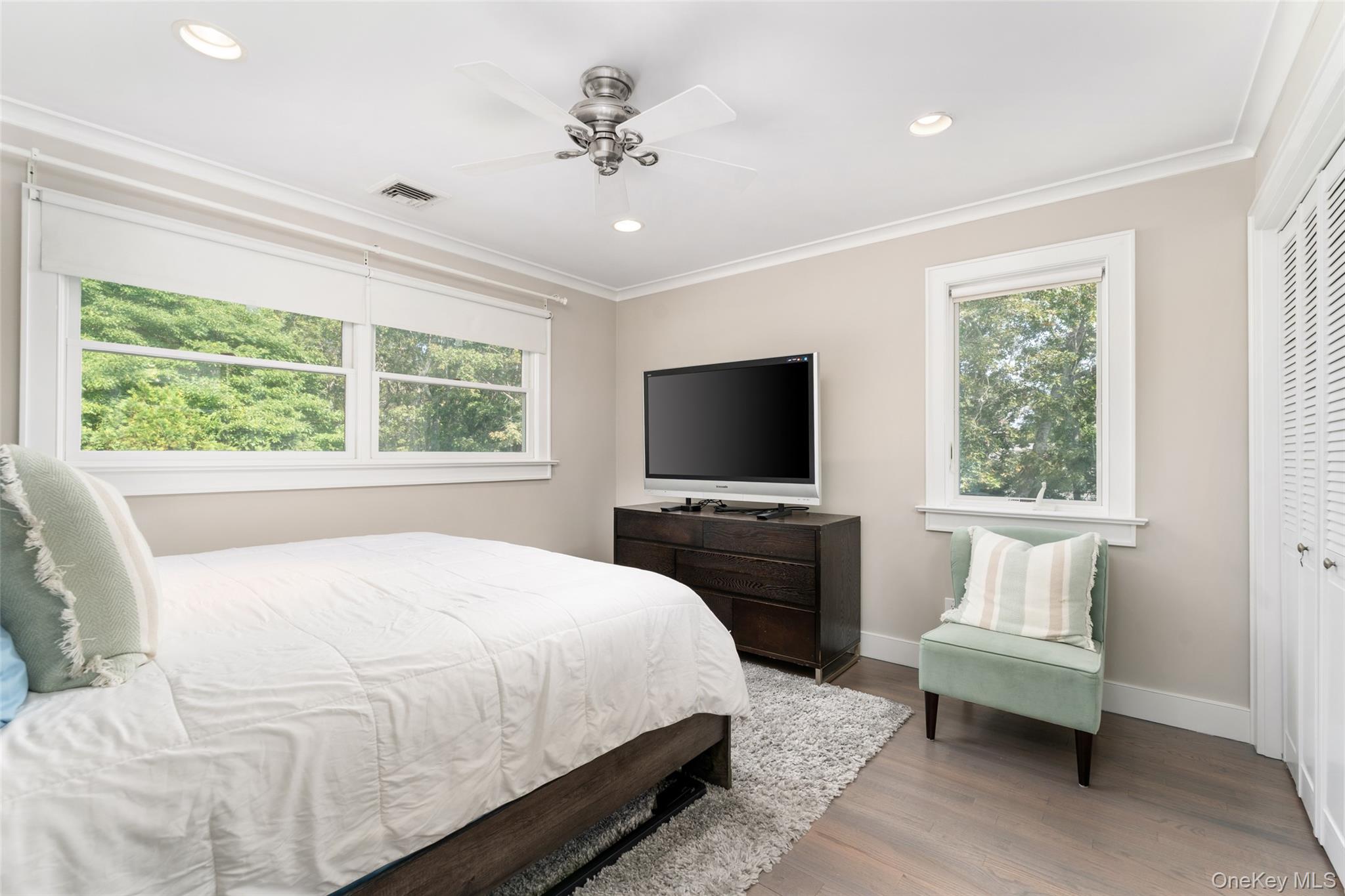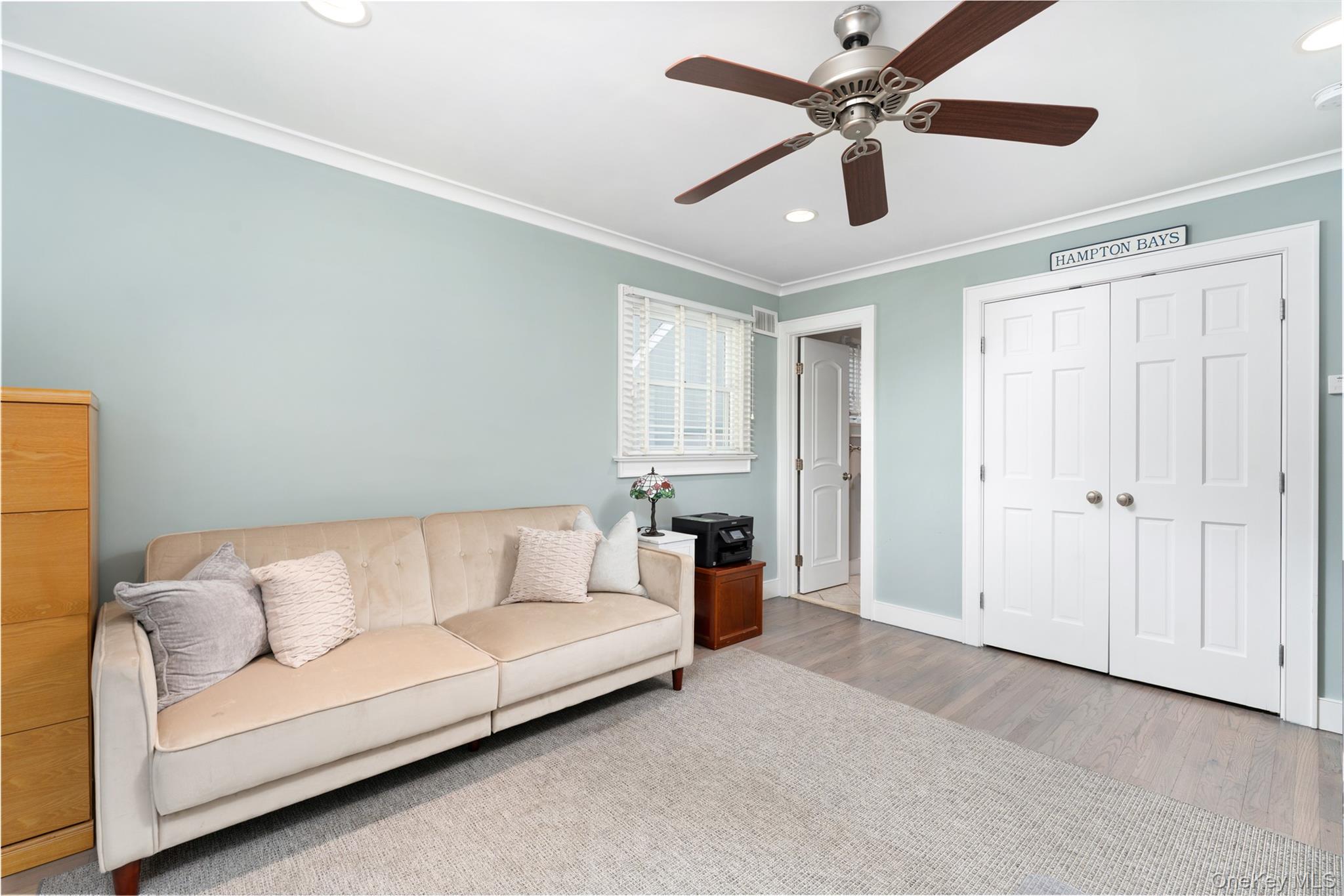 Nestled within the private community of Squire Woods in Hampton Bays, this beautifully updated and meticulously maintained four-bedroom, three-and-a-half-bath home offers the perfect blend of year-round comfort and vacation luxury. Step into a light-filled open floor plan featuring a spacious great room with vaulted ceilings and a stacked stone gas fireplace, ideal for relaxing or entertaining. The chef’s kitchen is a culinary dream, boasting granite countertops and sleek stainless-steel appliances. The two-car garage is conveniently located adjacent to the kitchen. On the first floor, a junior primary suite provides a private retreat with its own full bath and direct access to the expansive mahogany deck and lush yard, complemented by an additional powder room for guests. Upstairs, the large primary suite is a true sanctuary, featuring custom closets, a gas fireplace, and a redesigned private bathroom with elegant finishes. Two additional guest bedrooms and a full bath complete the second floor, offering comfort and style for family or visitors. Modern conveniences such as central air conditioning and central vacuum enhance everyday living. The legal lower level includes a media room and office space, a dedicated laundry room. Outside, enjoy resort-style amenities including new mahogany decking, a fully equipped outdoor kitchen, a refreshing outdoor shower, and a heated pool surrounded by mature landscaping for ultimate privacy. Whether you're seeking a serene escape or a stylish Hamptons base, this property is the perfect getaway.