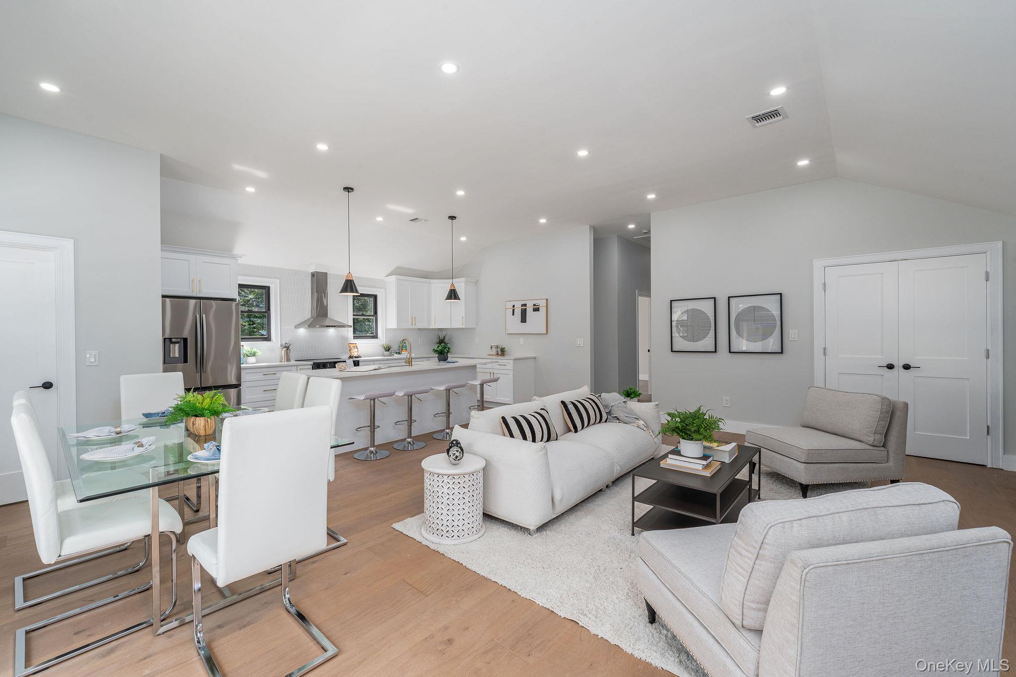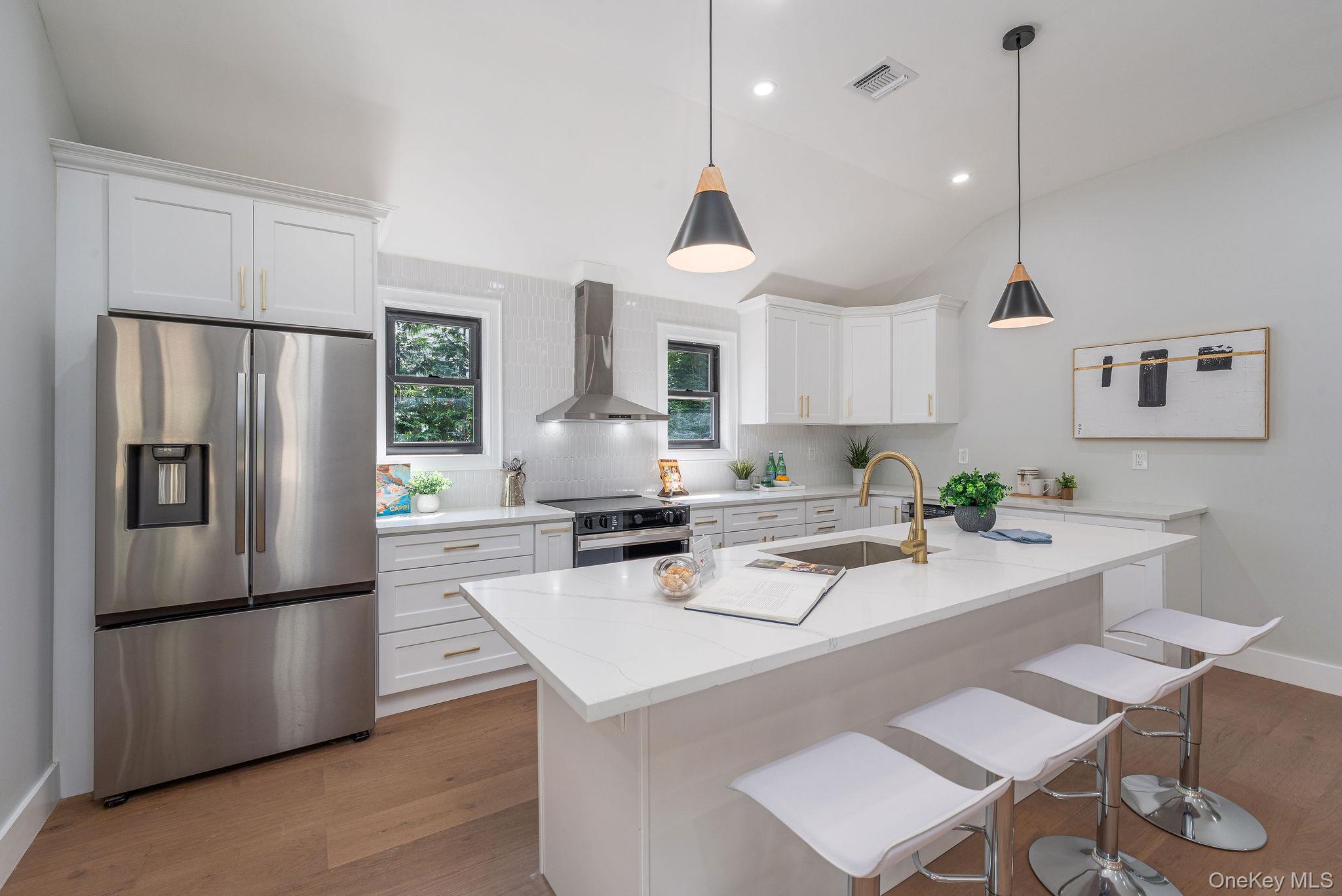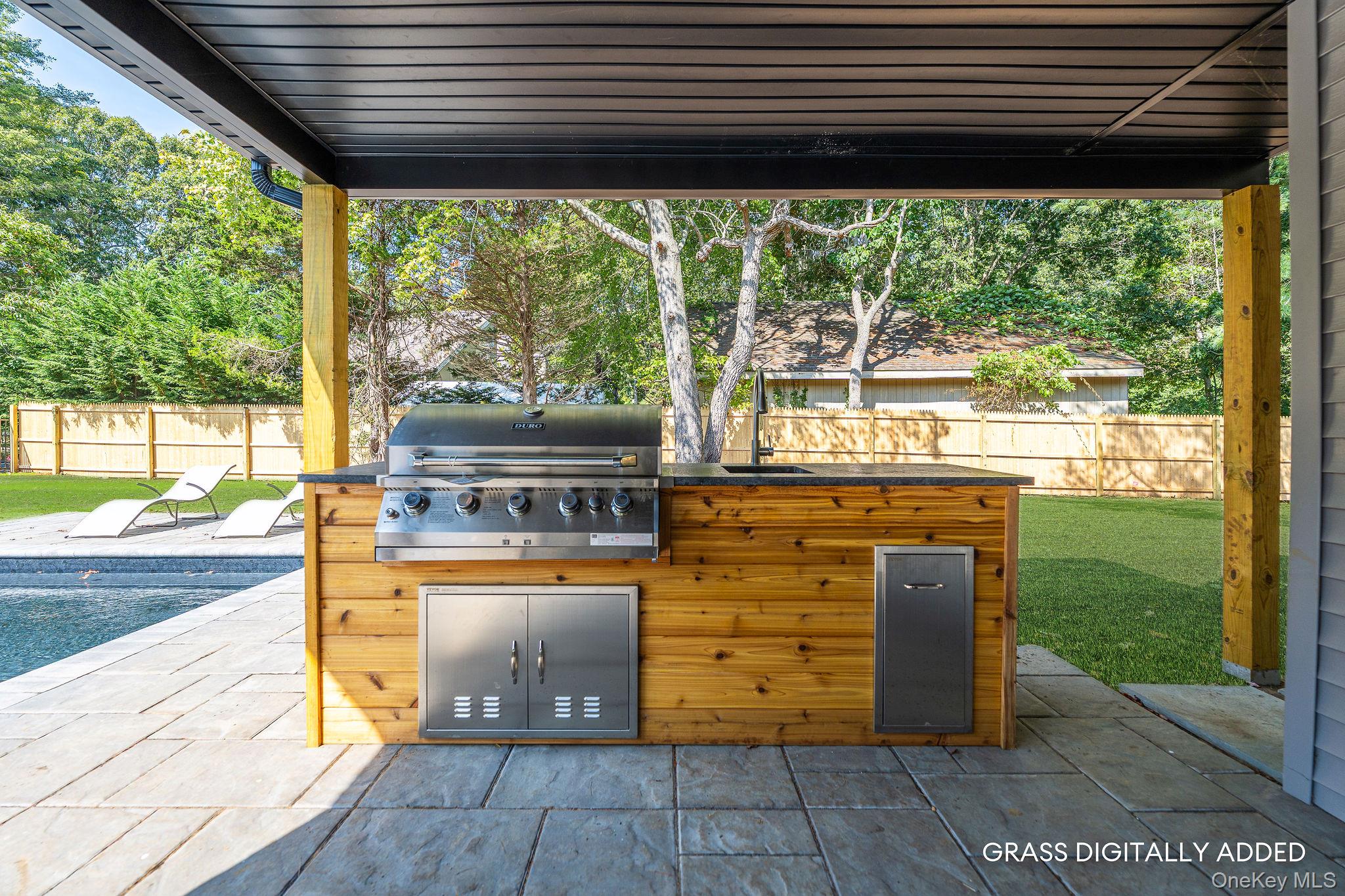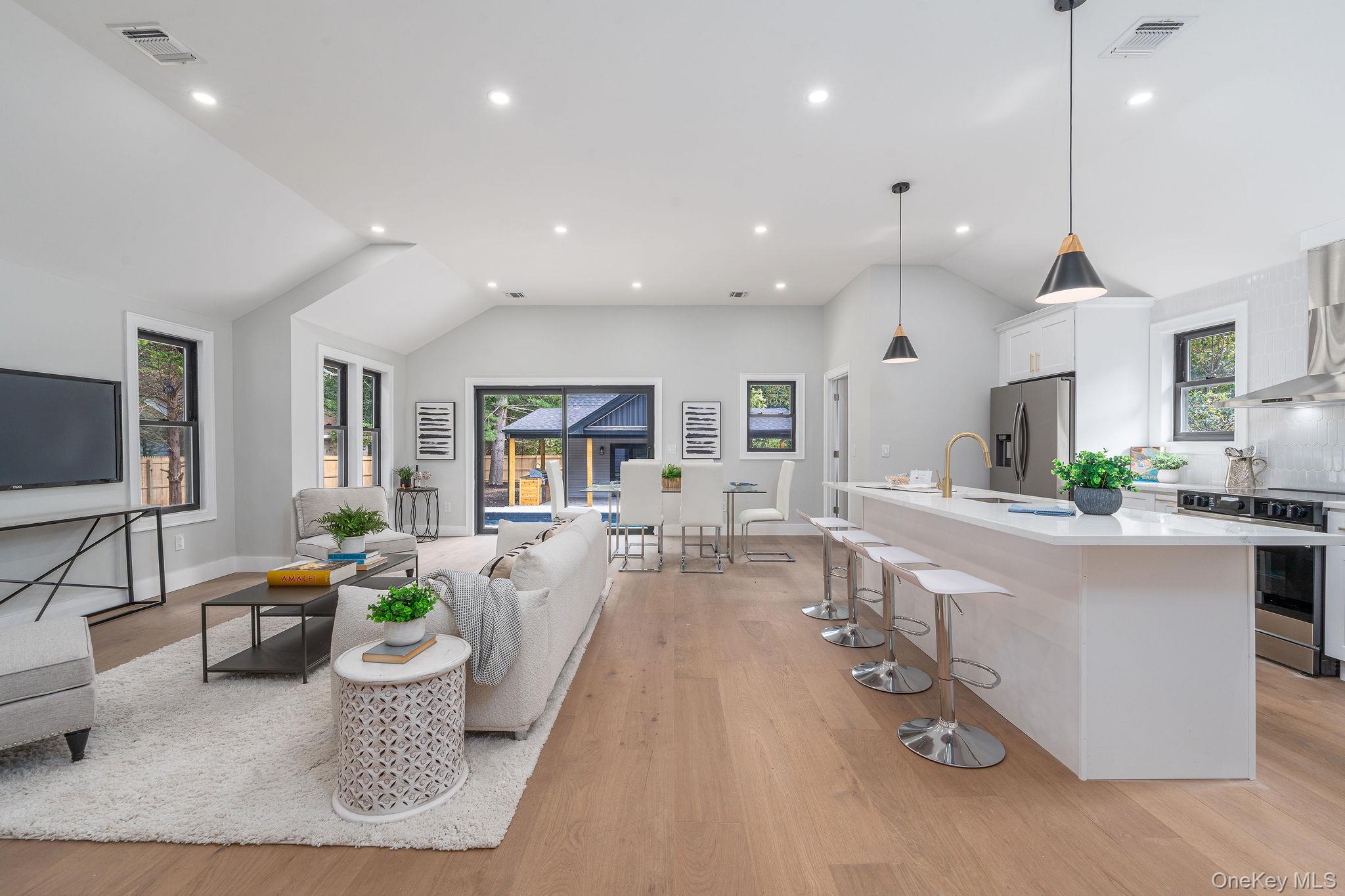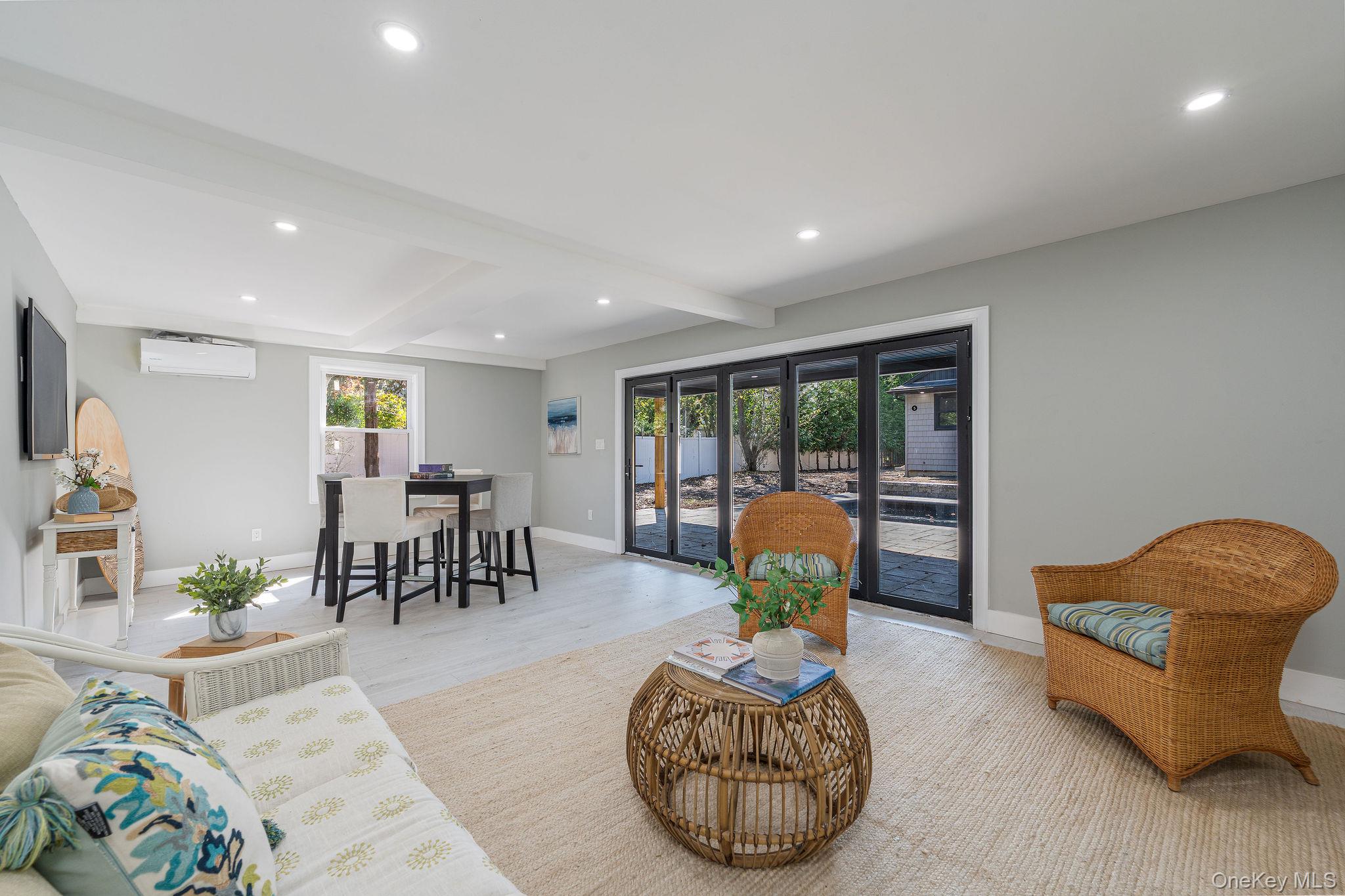 This fully renovated 3-bedroom, 2. 5-bath home offers 1, 400 sq ft of modern living with soaring 10’ vaulted ceilings throughout. Complete renovation in 2025. The primary suite features a walk-in closet and marble-tiled bath. A new high-efficiency Bosch electric central air and heating system, smart Alexa-ready lighting, sprinkler system, and all new WaterSense appliances ensure comfort and convenience. The kitchen includes a wine fridge, while a separate laundry room adds functionality. Step outside to a resort-style backyard with a brand-new 14’x36’ heated saltwater pool with in-pool sun deck, Hayward electric heater, outdoor kitchen, new paver patio with full drainage, and built-in enclosed shed. The pool house offers 508 finished sq ft, plus an additional 353 sq ft across two rooms ready to be completed with proper permits, featuring its own water heater and mini split AC. All new windows, siding, roof, flooring and more! Additional upgrades include a new IA septic system sized for expansion, two dry wells, a new well tank, and everything designed for efficiency and low maintenance