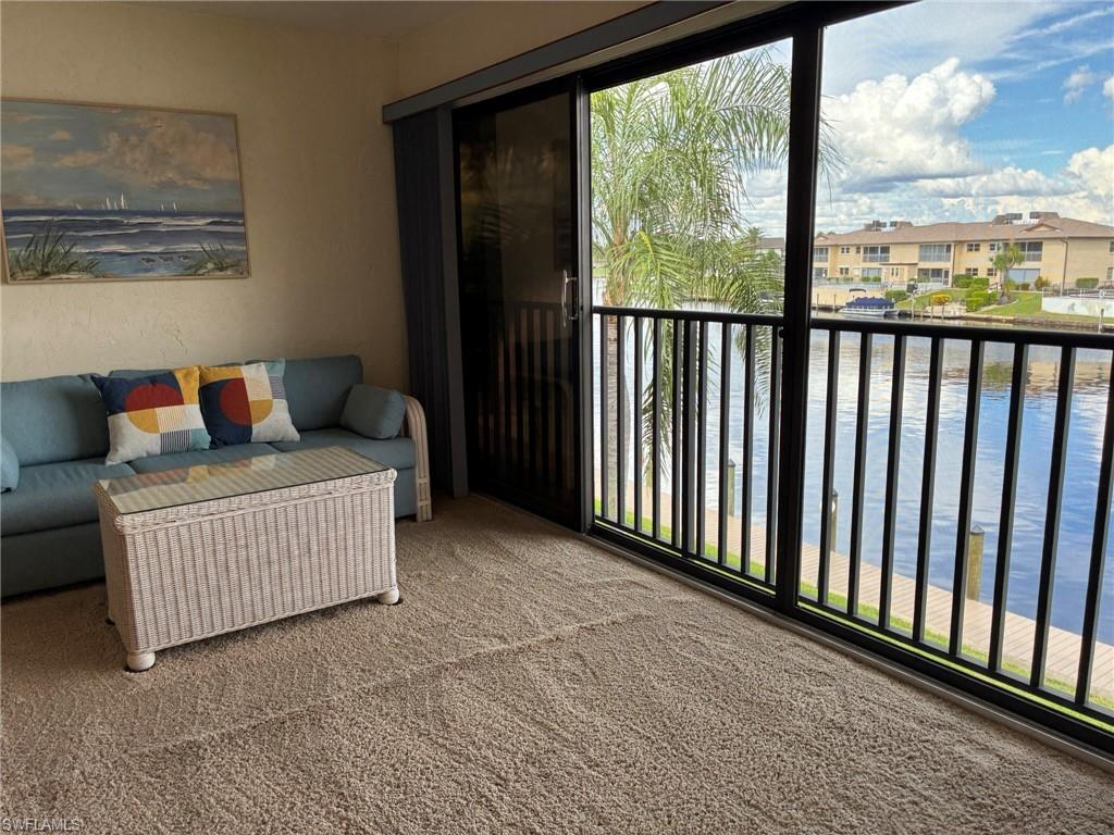 Sweeping views from the 2nd floor of Rubicon Canal highlight this unique and spacious floorplan. Two bedrooms and two full bathrooms, eat in kitchen, and screened Juliet balconies keep this home open and airy. Perks in this 55+ community include newer seawall & community dock with overnight boat parking, storage locker, close & convinent carport space, heated pool, strong reserves, and new roof. Recent improvements include newer appliances and newer A/C; main rooms of this 2nd floor unit must be carpeted. Approximately 20 minute boat ride and one bridge to open water of the river. Building, wndw sills, gutters, eaves, downspouts, & carports were all repainted without an assesment. . . healthy reserves!