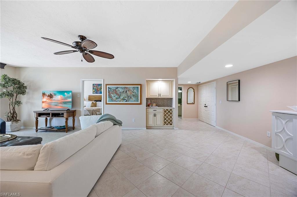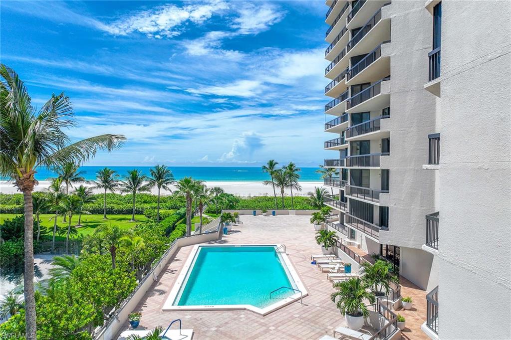 Welcome to Duchess 1003, a south-facing 10th-floor residence offering an elevated beachfront lifestyle on Marco Island’s world-renowned crescent-shaped shoreline. Encompassing 1, 664 square feet, this two-bedroom, three-bath home presents panoramic Gulf and pool views from a wall of 10-foot impact glass sliders in the main living area. The primary bedroom is a tranquil retreat with floor-to-ceiling windows, a sitting area and custom wood shutters. A coastal-inspired living and dining room features neutral tile, custom built-in bar cabinetry with wine storage, and a concealed Murphy bed for guests. The kitchen is designed with white cabinetry, a breakfast nook overlooking the beach and direct access to a walk-in pantry and full-sized washer and dryer. Wood shutters and silhouette-style shades offer tailored privacy throughout. This residence includes an assigned covered parking space and is just steps from the Gulf’s sugar white sands. The Duchess offers elevated amenities – a beachfront pool and spa, a guest suite available by reservation, a fitness center, billiards and ping pong, a library with a large television, and elegantly appointed common spaces. Professionally managed with top-tier service, the building is ideally located near the fine dining and luxury shopping of Marco Island and Naples!