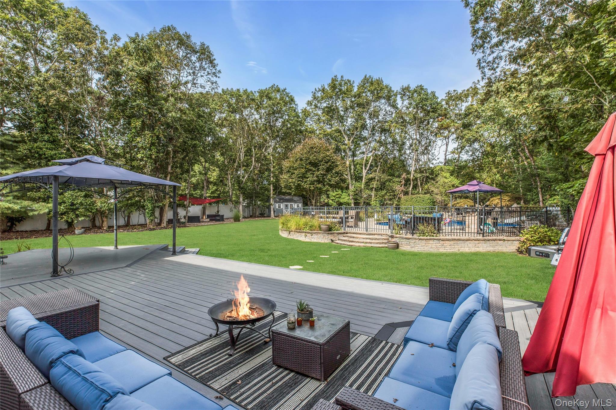 Stunning Colonial with Resort-Style Pool & Luxe Primary Suite. Welcome to this extraordinary 4-bedroom, 3-bathroom colonial that blends timeless elegance with modern comfort. This distinguished home is introduced by an elegant front porch, a perfect place to unwind before entering the refined interior, As you step into the foyer and be greeted by beautiful white columns framing the living area, setting the tone for the home’s inviting style . At the heart of the home is a custom gourmet kitchen featuring a center island, granite countertops, stainless steel appliances, a double oven, and abundant cabinet space. A spacious kitchen dining area with oversized windows overlooks the backyard, filling the space with natural light and creating a seamless flow into the dining room and living room—perfect for both everyday living and entertaining. Conveniently, a laundry room and full bathroom sit just off the kitchen. The spacious family room is the ultimate gathering place, complete with a centrally placed fireplace and oversized sliding glass doors leading to a brand-new deck. Step outside to your own private retreat: a flat, landscaped yard with a lagoon-shaped pool, designed for relaxation, entertaining, and fun in the sun. Upstairs, retreat to the expansive primary bedroom en suite, boasting soaring ceilings, a spa-like bathroom, and generous walk-in closets. Three additional bedrooms and a full bath complete the second level, providing comfort and space for family and guests alike. The home also offers a fully finished basement, ideal for a den, playroom, home office, gym, or additional storage — a versatile level that adapts to your lifestyle needs. With its perfect blend of elegance, functionality, and resort-style living, this colonial is ready to welcome you home. Close to the Town of Port Jefferson, where you can enjoy the waterfront restaurants, and picturesque Waterview's, beach or take Port Jefferson Ferry to Connecticut.
