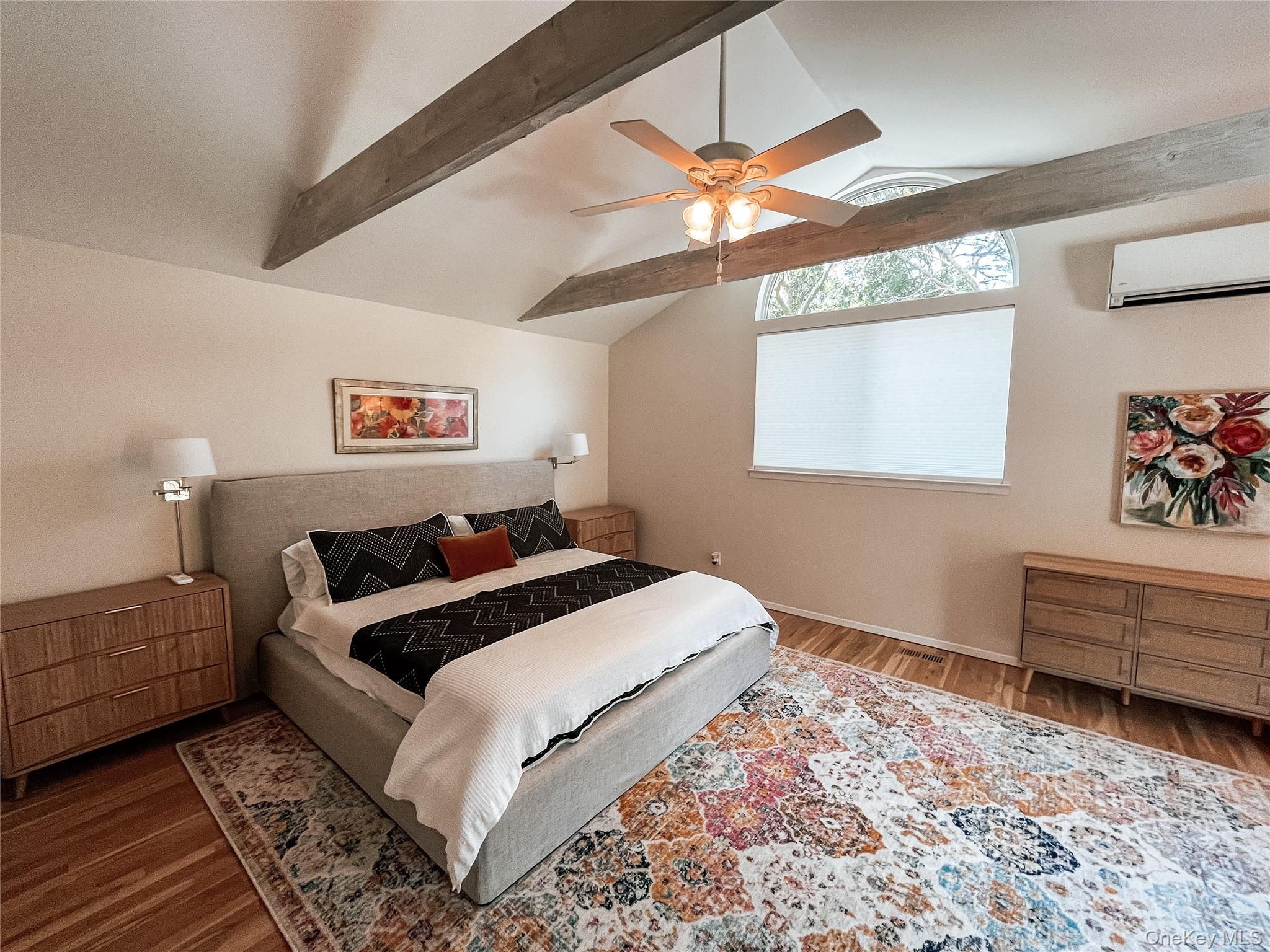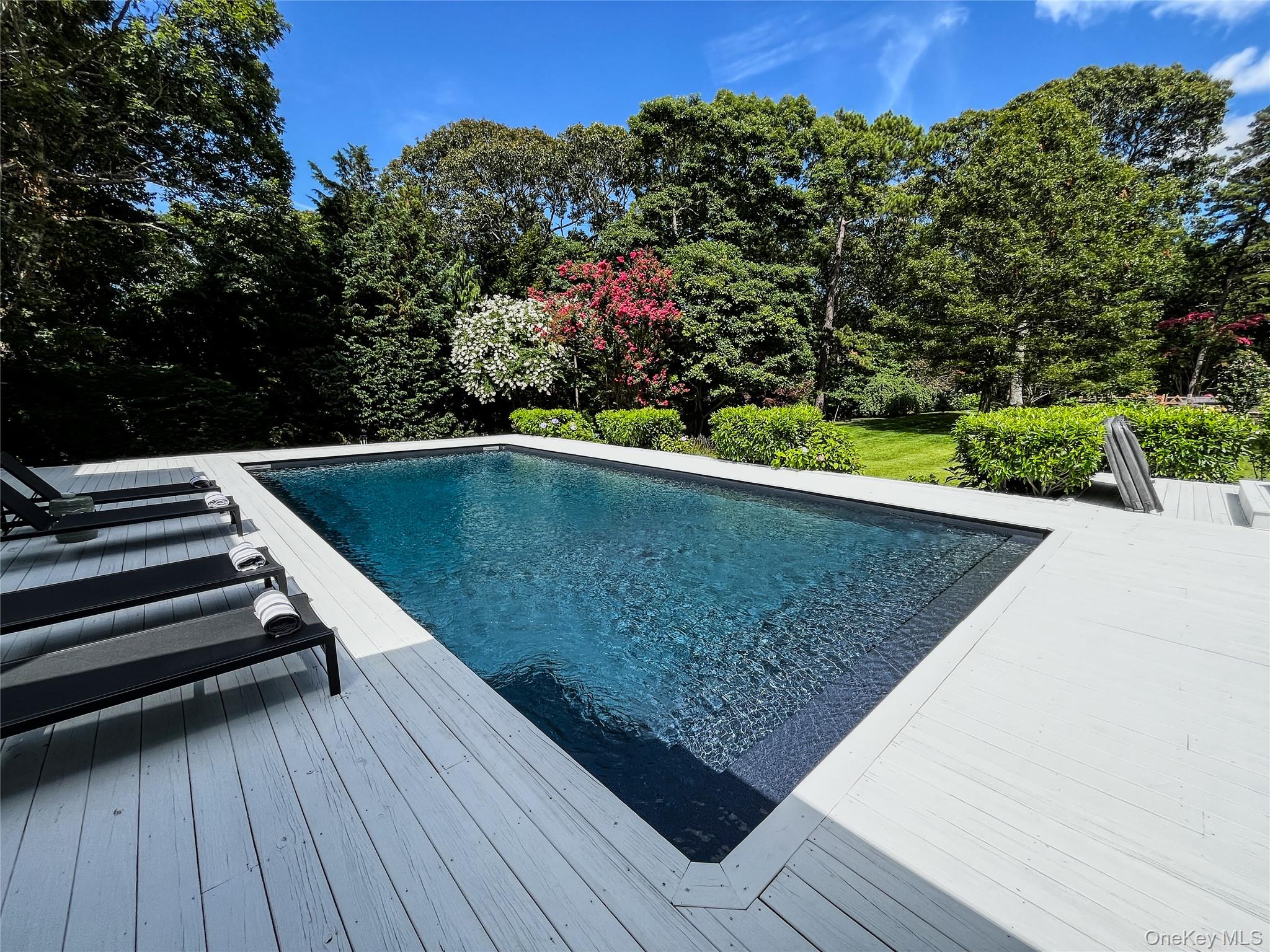 Convenient to the Hamptons, and the North Fork. Located in Flanders, this very private, refreshed contemporary boasts two beautifully landscaped acres, new roof, new hot water heater, a spa, a heated pool with new pool liner and new pool mechanicals. Plenty of decking to entertain. The open concept main level features refinished hardwood flooring, two guest bedrooms, two full bathrooms, kitchen, living room with fireplace and den with fireplace. The second level features the primary en-suite with walk-in closets, refinished hardwood flooring, balcony and skylight. The lower level features a media lounge. Located in Southampton Town with access to Town Beaches. Be in for Spring!