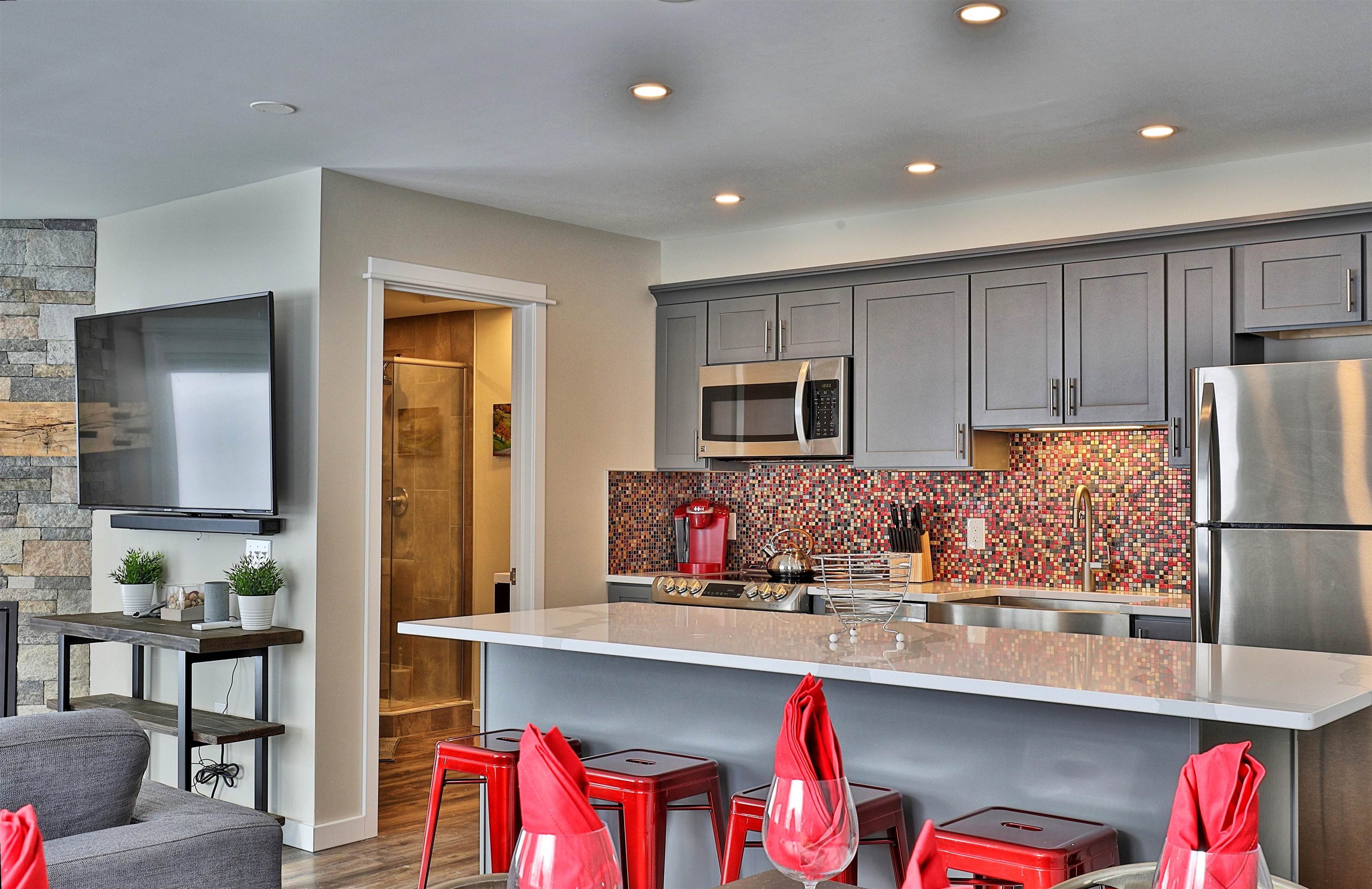 KILLINGTON CENTER! Prime Killington location right off the Killington Road. Minutes to the K1 Base Lodge, walk to all the restaurants/bars or for ease use the shuttle bus steps away from the units. Strong rental investment opportunity! 2024 income over $54K gross. Gorgeous, renovated turnkey fully furnished units 612 and 613. Unit 612 is an open concept floor plan ideal for entertaining. Beautiful kitchen with breakfast bar, custom tile backsplash, granite counters and stainless appliances. Enjoy the formal dining area directly off the kitchen. The spacious living room area is wonderful with a floor to ceiling stone hearth and gas fireplace to cozy up to after a cold day. In the warmer months from the living room, walk out to the covered porch with relaxing seating and barbeque to enjoy the VT outdoors. There is a 3/4th bath off the main living area. Enter the ensuite bedroom to relax after a day of outdoor play with a luxurious bathroom inclusive of washer/dryer. Unit 613 is a lock out studio unit with open bedroom area and full bathroom. You can use the units as a whole, rent both or rent out one and use the other. On the summer months enjoy lounging out at the seasonal pool. Come tour this property today to appreciate all it offers! Act fast this one will not last.