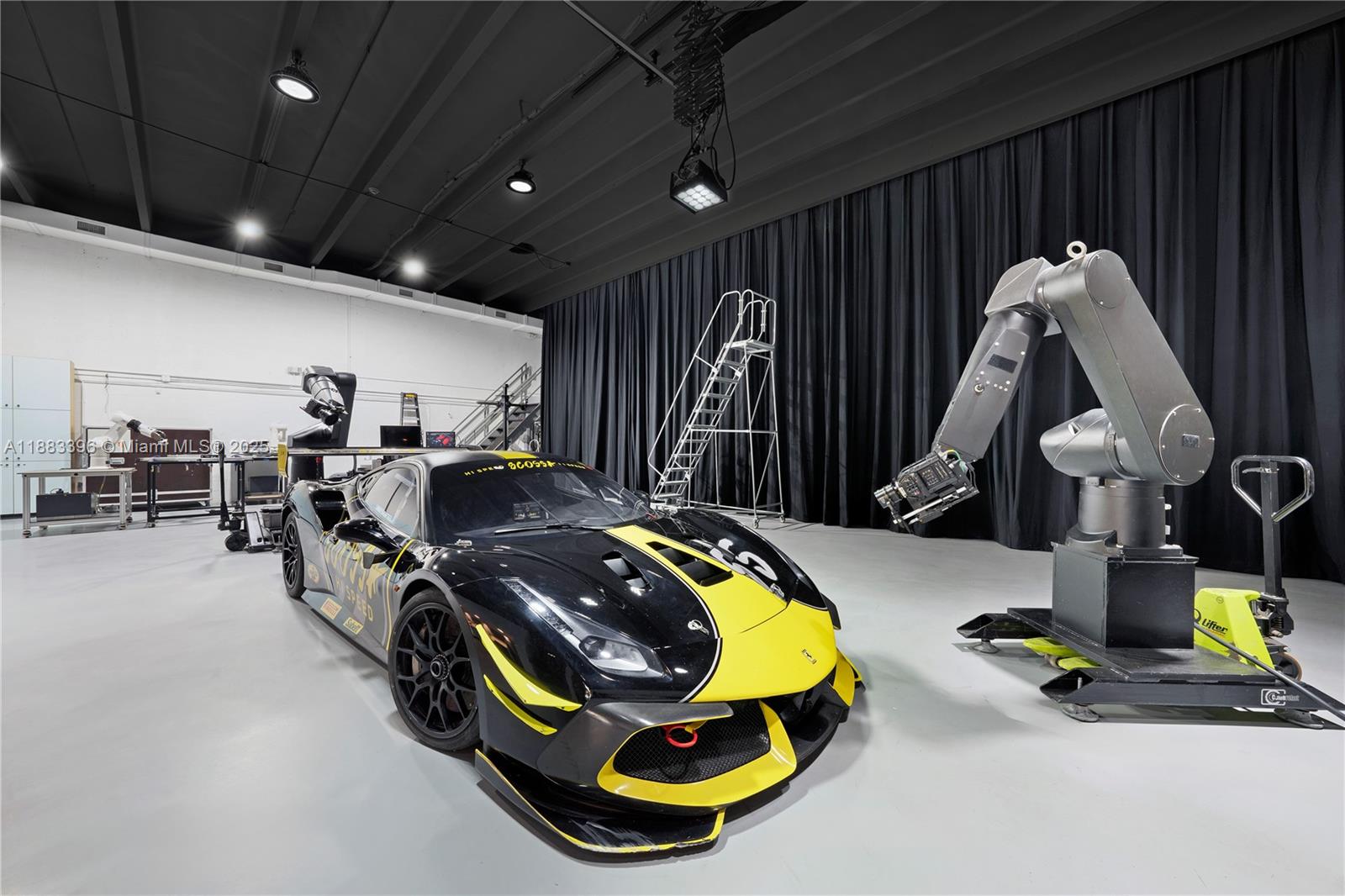 Studio Scossa is a 5, 000 sq. ft. turnkey, fully equipped tabletop film studio built in 2021. Designed by Strang Architecture, it features luxury finishes. The space includes 4, 300 sq. ft. on the ground floor and 700 sq. ft. on two mezzanines. Amenities include ground-floor equipment storage, second-floor props and special effects storage, lunch area, large client/agency meeting room, prep kitchen, tool workshop, and office/lounge area. Features new flooring and a FOBA rail system for lighting. The studio is available as a turnkey film facility. Equipment list available upon request (equipment not included in the sale price). Available equipment includes: 2x Camerobot [Bolt] robots, Mark Roberts turntable, Phantom VEO camera, Aputure lights, and more.