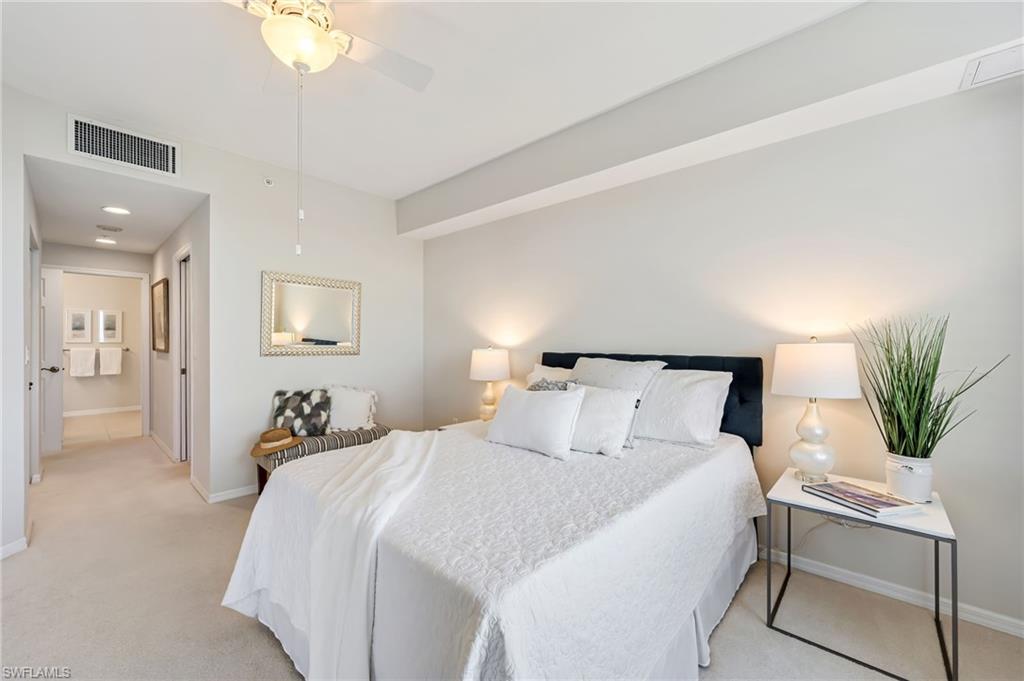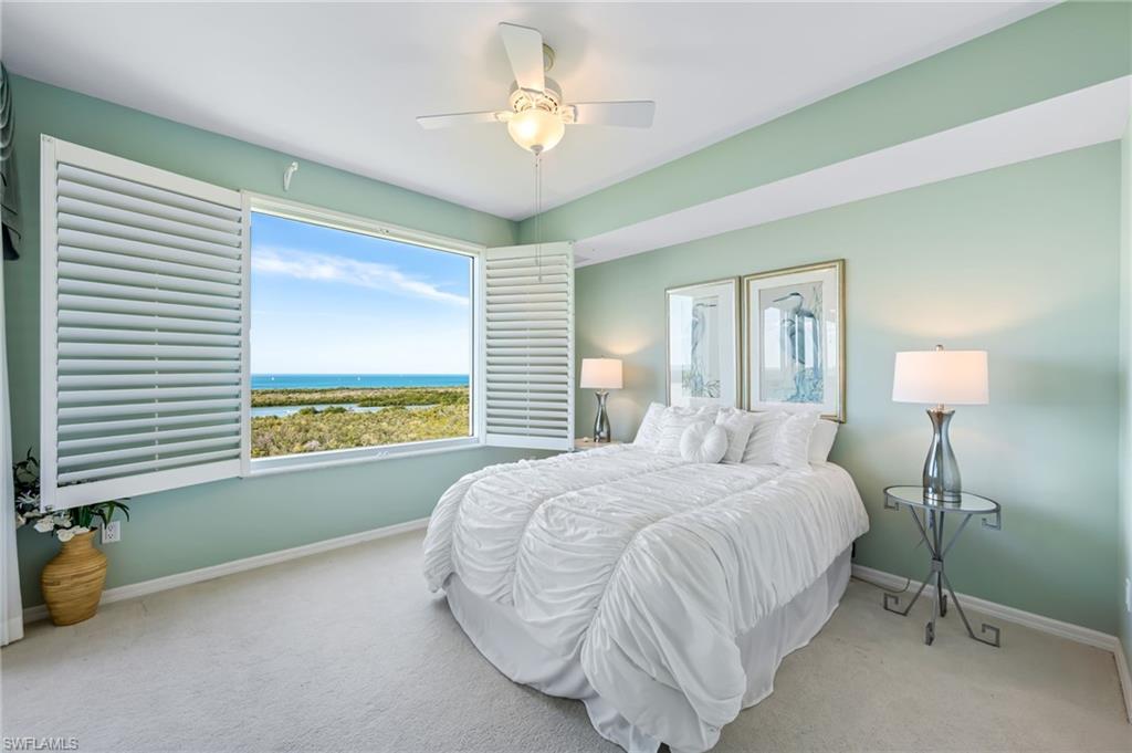 Stunning Gulf Views! This 2-bedroom, 2-bathroom residence offers breathtaking views of the Gulf and Bay with world-famous sunsets. Residence features include granite countertops, a new water purification system, a spacious laundry room, ample closet space, and electric storm shutters for peace of mind. Residents enjoy access to resort-style amenities, including fitness facilities, on-site fine dining, and complimentary transportation to shopping and medical appointments, ensuring a truly effortless lifestyle. With fee-simple, deeded ownership and no financial or medical commitments, this 55+ active community provides both independence and peace of mind. All within minutes of Naples’ beaches, shopping, and dining. One car garage spot is included.