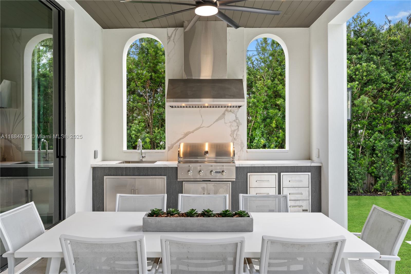 Brand-new construction by Pacheco Architecture, this contemporary-modern estate offers 6 beds plus office with 7. 5 baths total 7, 142 sq. ft. of construction. The grand entry with double-height ceilings opens to expansive living spaces. Massive floor-to-ceiling sliding doors lead to a covered terrace w/ fully equipped outdoor kitchen & private pool. The chef’s kitchen features top-of-the-line appliances, and an elevator connects to 4 upstairs bedrooms, including a luxurious master suite with private balcony, spa-like bath, and custom LED-lit closet. Features include a wine cellar, wet bar, 3-car garage, smart home tech, gates & lush landscaping. Perfectly located near top Miami schools, shops, dining and entertainment. Home is ideal for upscale family living and entertaining.