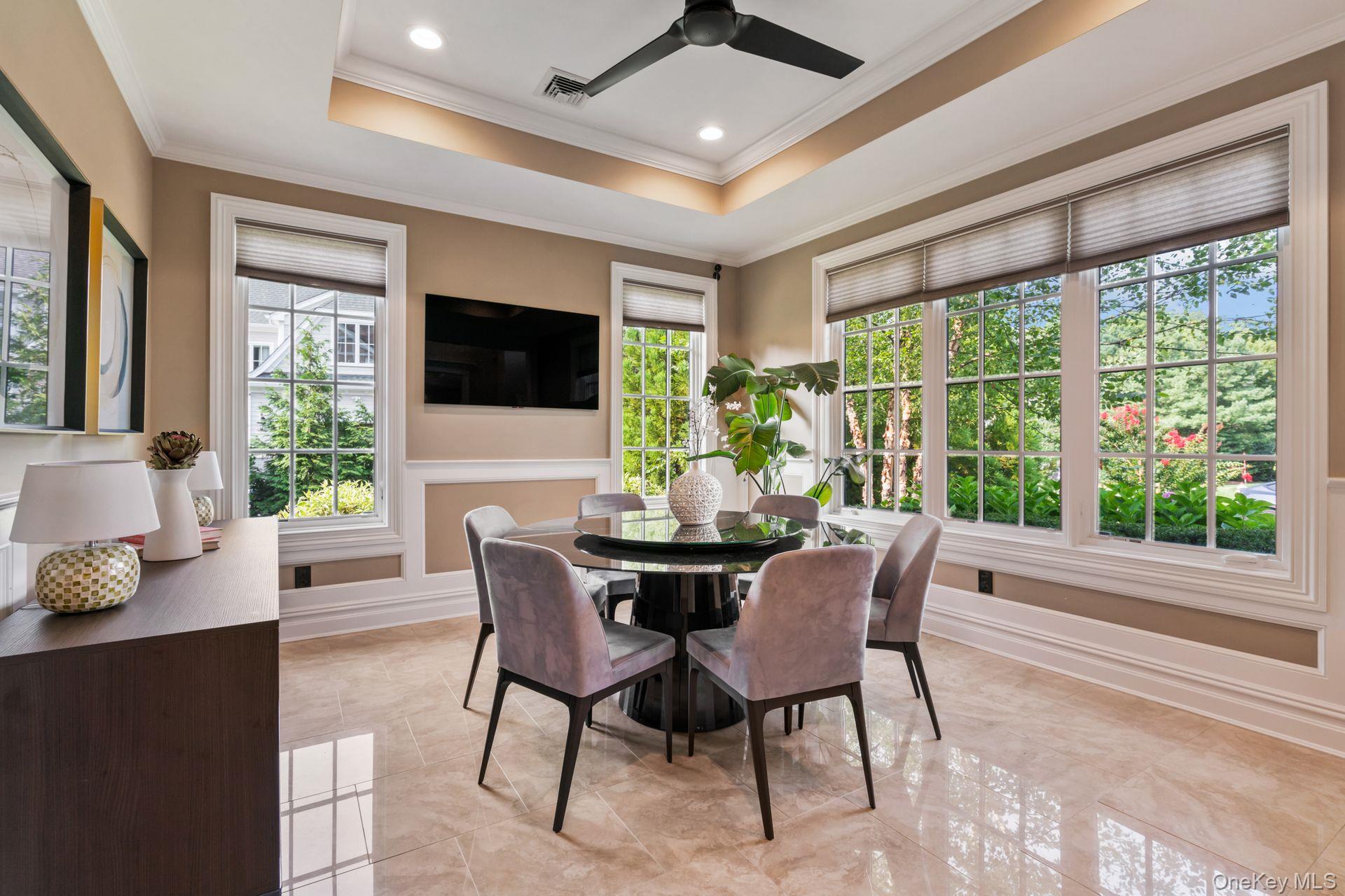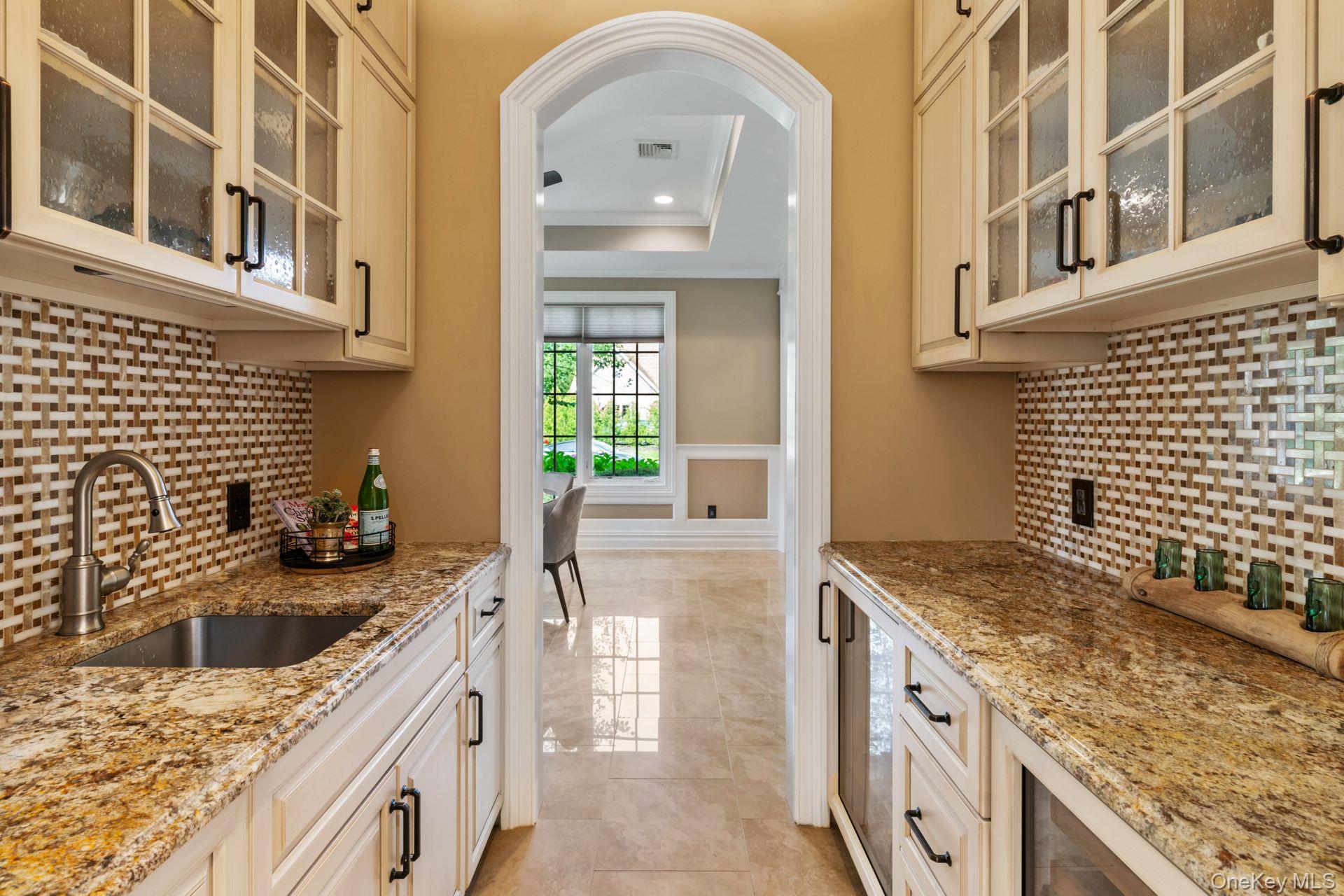 Welcome to 11 Buckingham Ct — an exceptional Colonial-style residence in the prestigious gated community of Stone Hill, Muttontown. This one-of-a-kind, custom-built young home offers approximately 5, 500 sq. ft. of refined living space, seamlessly blending timeless architecture with modern luxury. The impressive entry sets the tone for this elegant yet inviting residence. Step inside through the grand mahogany double doors to a soaring two-story foyer with a graceful bridal staircase. The home’s elegance unfolds with imported granite floors, radiant heat throughout the main level, coffered ceilings, exquisite moldings, and finely crafted millwork. The impressive double-height living room is a showstopper, featuring a majestic fireplace, dazzling chandelier, and French doors that open to a serene patio. A true gourmet will fall in love with the chef’s kitchen, designed with custom artistic cabinetry, imported countertops, high-end appliances, a large center island, and abundant natural light. A rare second kitchen with extensive storage / sink / dishwasher adds to the home’s thoughtful design. For seamless entertaining, a sophisticated butler’s pantry connects the kitchen to the formal dining room. The first-floor grand primary suite is a retreat in itself, complete with a private sitting room/office, a lavish primary bath with dual facilities, and a separate laundry room. Also on the main level is a second ensuite bedroom—ideal for guests or in-law. An elevator services all levels, including the second floor, which is as functional as it is stunning. Here you’ll find four additional ensuite bedrooms, an office, a gym, a full bath, a second laundry room, and two spacious finished walk-in attics. The partially finished basement offers an incredible 3, 000 sq. ft. of open space with soaring 10-foot ceilings and a walkout entrance—ready to be customized to your lifestyle. Outside, the park-like half-acre property blooms year-round with flowers and trees, providing a private, tranquil backdrop. The home is equipped with advanced features including 7-zone radiant and HVAC heating (with instant hot water), Marvin windows, an architectural roof, central vacuum, and a whole-house water filtration / water solften system—all ensuring comfort and efficiency. Stone Hill offers premier community amenities, including an indoor heated pool, tennis courts, gym and clubhouse, all within the award-winning Syosset School District. 11 Buckingham Ct isn’t just a home—it’s a statement of luxury living.