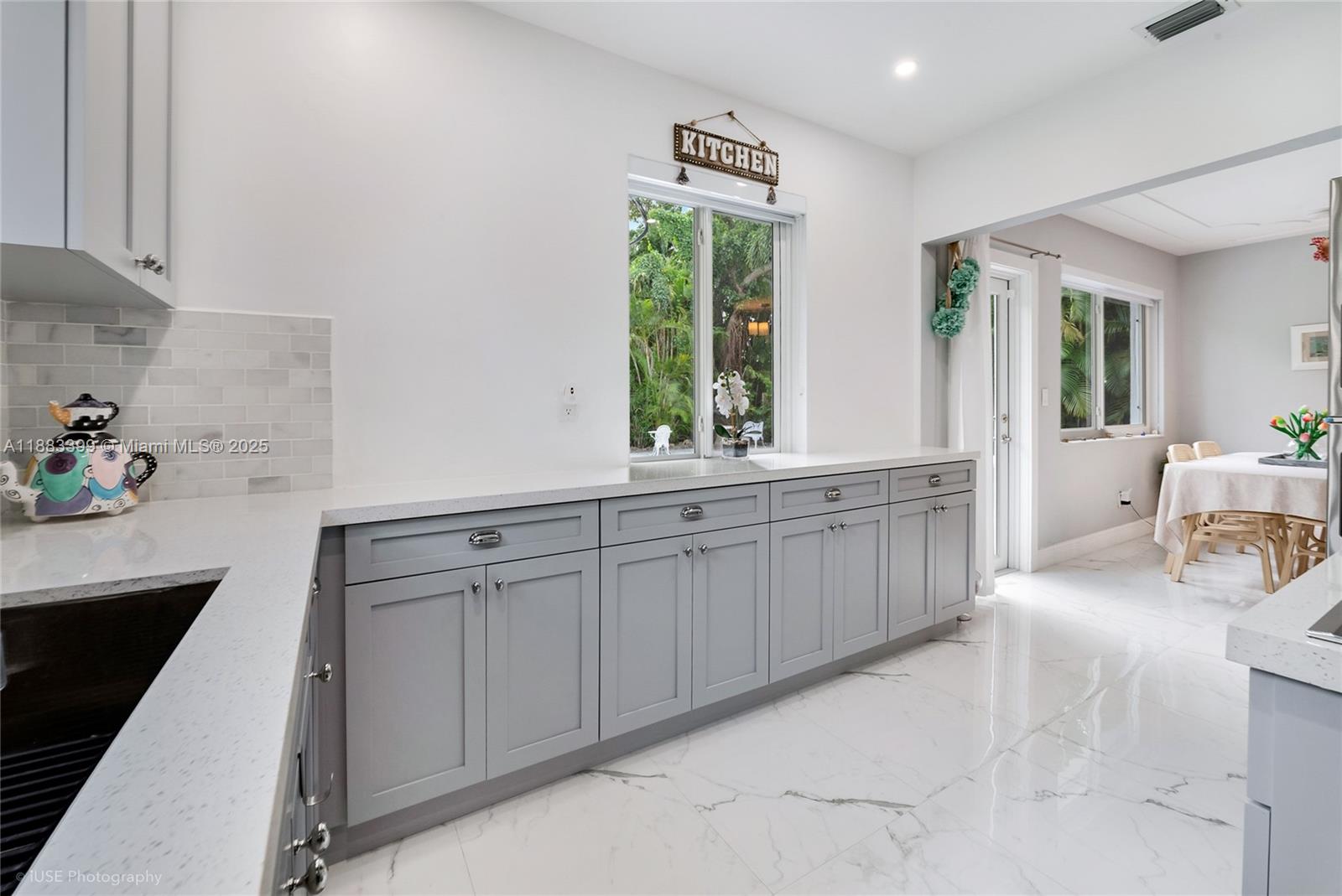 1 CAR GARAGE - IMPACT WINDOWS - NEW KITCHEN. This 2 bedroom, 1 bathroom North Coral Gables is ready for you to move in! As you walk in, you are greeted with the airy living room featuring luxury white tile flooring, which flows nicely into a small dining area and the kitchen. The kitchen has new stainless steel appliances, stone countertops, and new cabinets. The bathroom is fully remodeled as well, and has a high end stone shower. The washer/dryer is inside the home, just off the kitchen. The backyard features a patio along with a green area. The one car garage is well maintained. EXCELLENT location - close to Granada Golf Course and downtown Coral Gables. High quality impact windows recently installed. The furniture can stay if desired. Schedule a showing today!