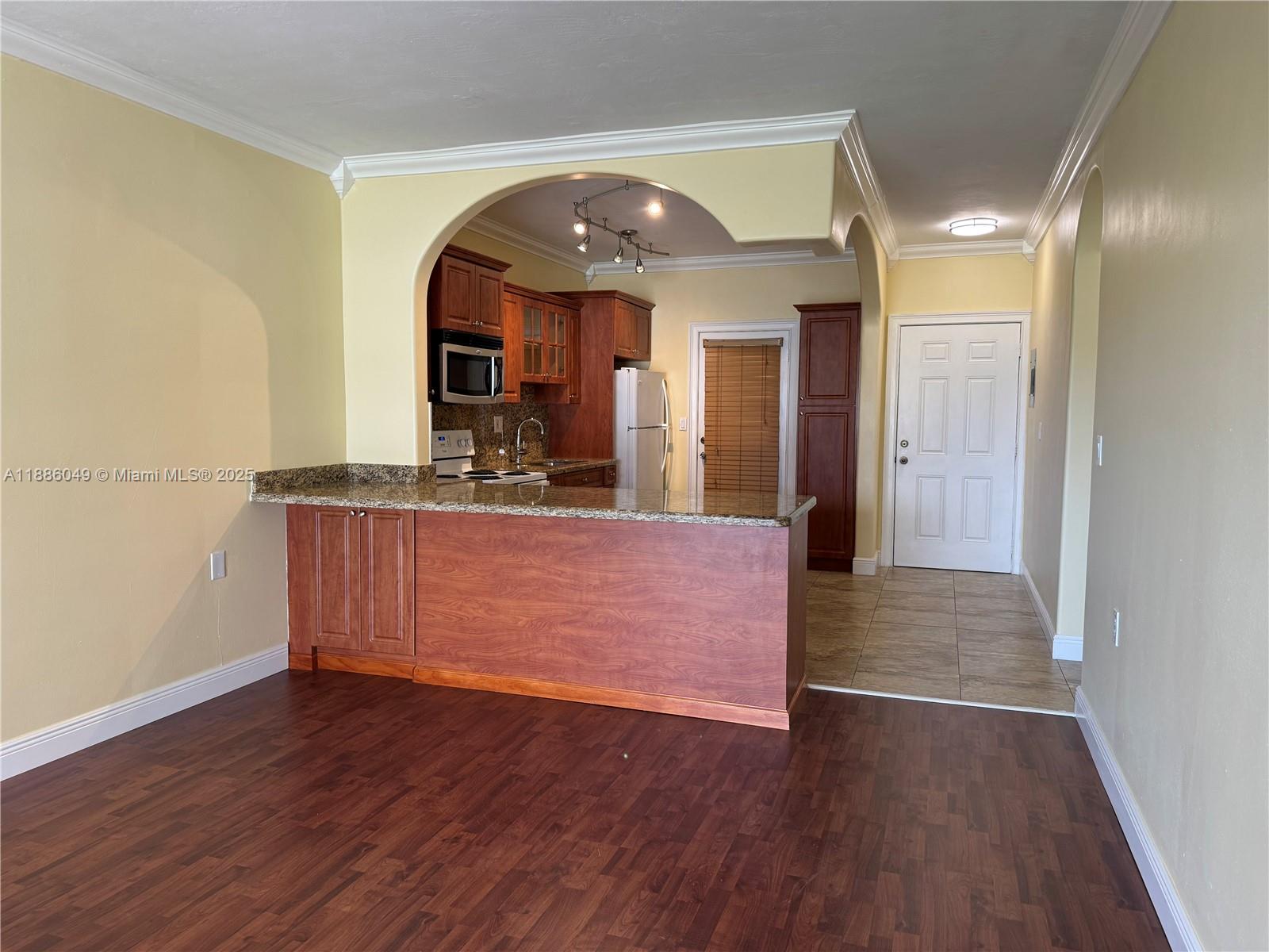 Beautifully updated 1-bedroom condo available for rent east of Biscayne on a desirable street. This condo features a renovated kitchen and bathroom, wood floors in the living areas, and tile in the kitchen. It boasts a spacious floor plan with plenty of natural light and a large renovated balcony. The building offers amenities such as a pool, laundry facilities, elevator, assigned parking, and guest parking.