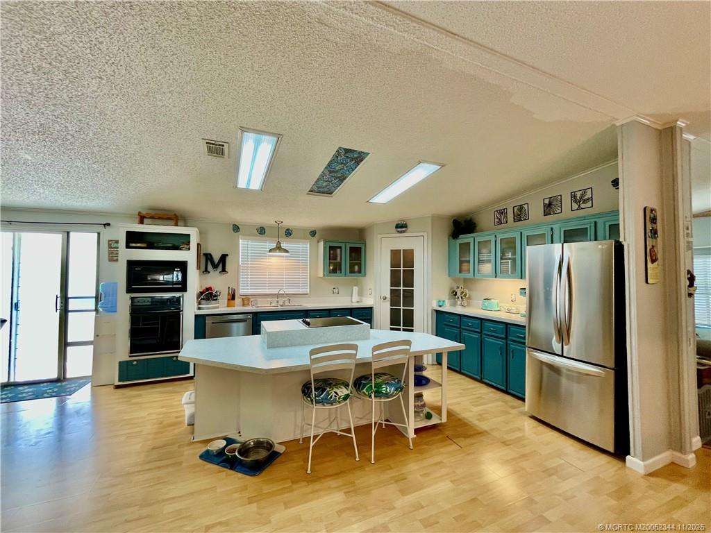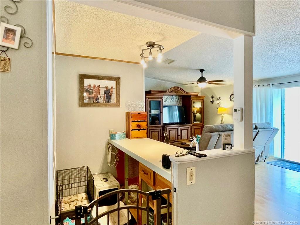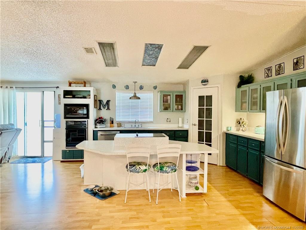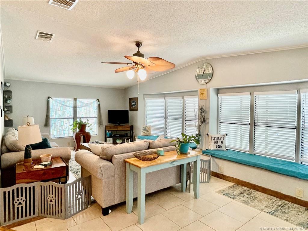 This ch?rm?ng resid?nc? boa?ts numerous delightful featur?s. 2 ?R, 2 baths + a dedicated office space ensuring privacy & a tranquil area to work or create a new craft/hobby with a private entrance to the expansive outdoor deck that was power washed, stained & sealed in 6/2024. Kitchen: new countertops, freshly painted cabinets w/new hardware, a new garbage disposal, light fixtures, a SS refrigerator & island cooktop. New blinds in the kitchen & living room. The exterior showcases freshly painted shutters & well-maintained sprinkler system. Golf cart inc! Community amenities: 2 pools, recreation center, fitness room, tennis courts, shuffleboard, bocce ball & pickleball. There's also a public golf course, pro shop & restaurant w/both indoor & outdoor seating, full liquor license w/views of golf course & lake. Pet-friendly community. Lot rent $1397. 10 lawn maintenance, common areas, recreational facilities, trash, Internet, TV, taxes, insurance. 55+ community. Realtor. com for more photos