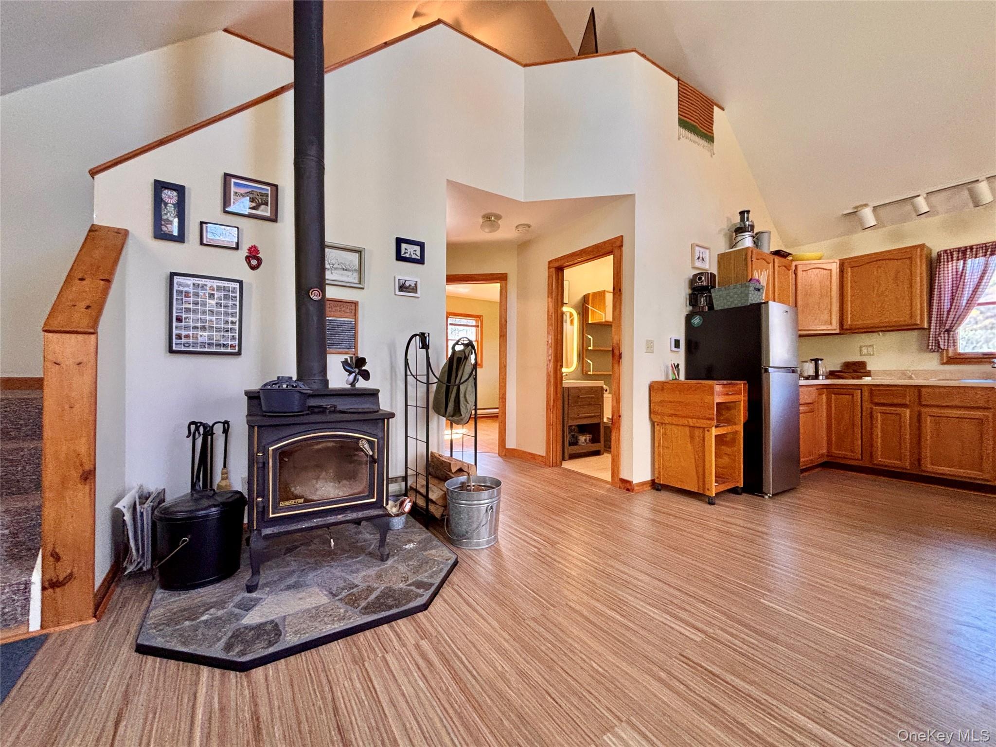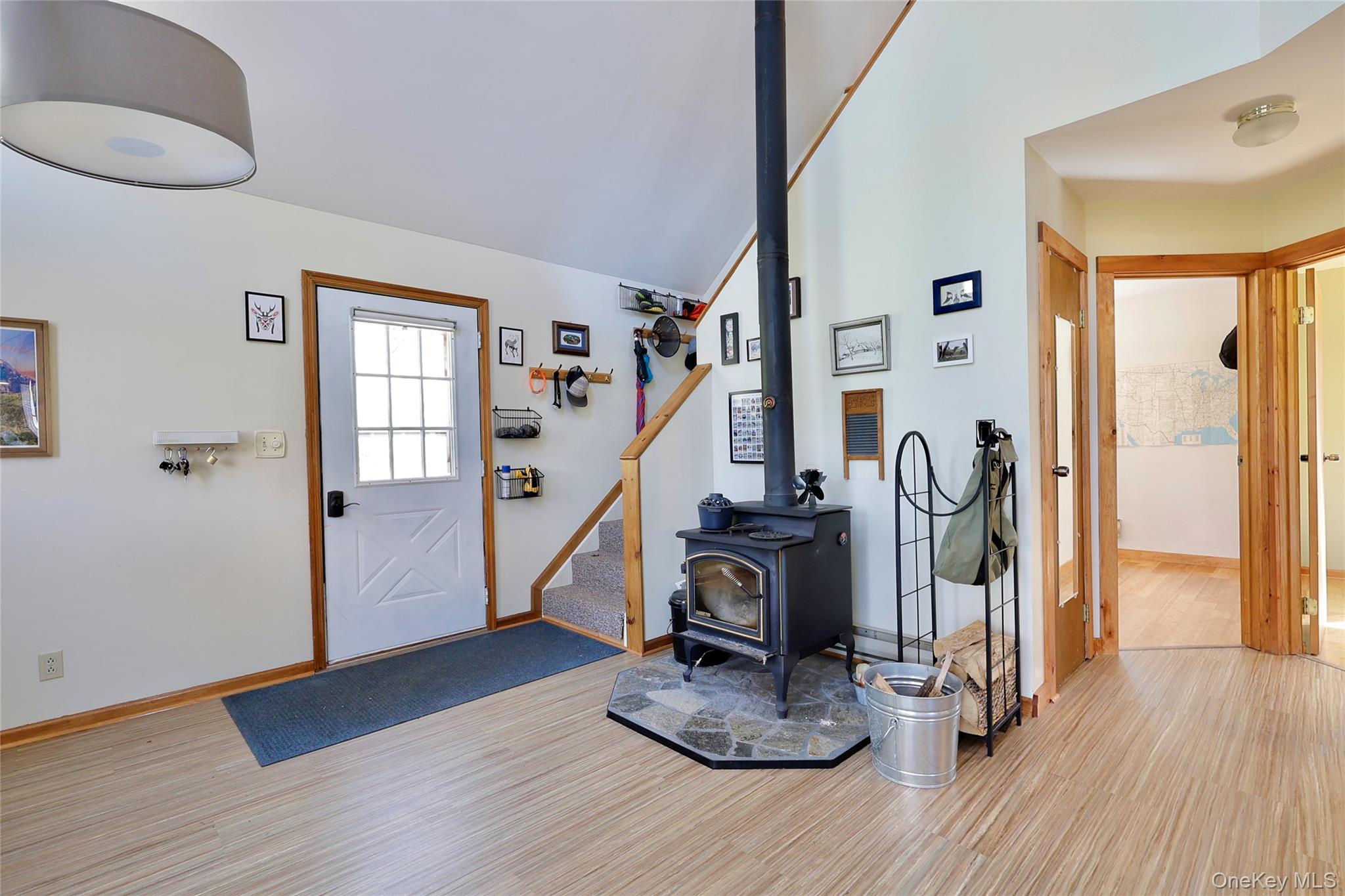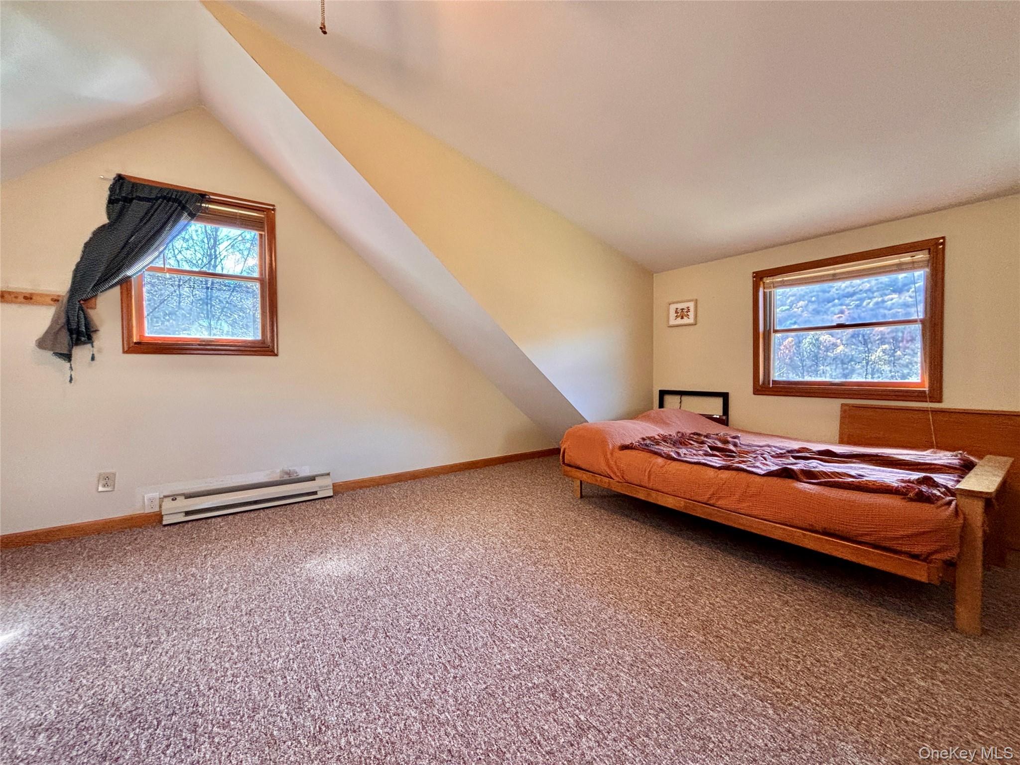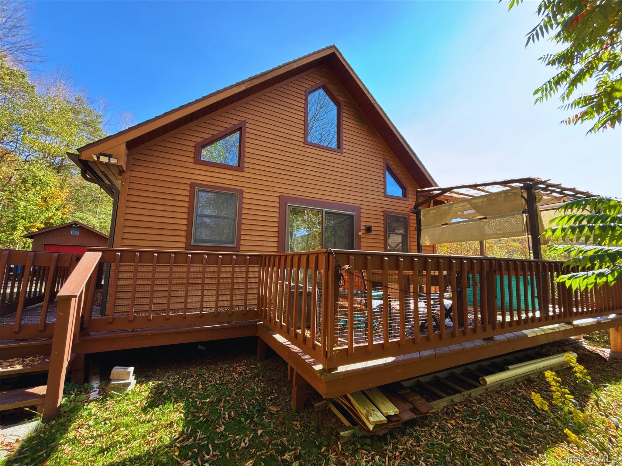 Tucked away on a quiet, maintained road minutes from dining, shopping, skiing, golf, & hiking, this cedar-sided chalet is the perfect Catskill Mountain retreat, offering privacy & seclusion. Set on 5. 25+/- acres, the property is alive with nature: apple trees, birdsong, wildlife, stone walls, & the soothing presence of Betty Brook at the edge of the property. A pond offers plenty of enjoyment—skate in winter, paddle in summer (pond can tend to dry up in the height of summer), or simply sit & enjoy the chorus of spring peepers. Every season here brings its own magic, from lush greenery to fiery autumn ridgelines & peaceful winters. The chalet opens to a welcoming great room with vaulted ceiling & woodstove, creating a perfect cozy Catskill atmosphere. An eat-in kitchen with new Bosch dishwasher flows seamlessly to the living space. Step outside through new sliding doors onto a wrap-around deck with mountain views—ideal for entertaining or simply soaking in the peace of the setting. After a day of adventure, unwind in your own outdoor cedar hot tub beneath the stars. This home features 3 bedrooms (including loft-style bedroom upstairs) & upgraded bathroom. Practical upgrades include new flooring, a radon mitigation system, Rinnai on-demand water heater, Anderson windows, 200-amp electric service, an encapsulated, temperature-controlled crawl space/cellar, new LG washer & dryer, high speed Internet, & electric baseboard heat. A garage and storage container provide plenty of space. Even better—the sellers are including everything you need to maintain the property and live comfortably: gas snow blower, EGO lawn mower, trimmer, leaf blower with gutter attachment, spa chemicals, & kitchen island with chairs. From the moment you turn into the driveway & watch the home emerge against the valley backdrop, it’s clear this is a special place—a cozy sanctuary that balances peace, nature, & convenience. Whether you’re watching autumn’s colors blaze across the ridge, exploring winter trails on snowshoes, or sipping coffee on the deck as the pond reflects the sun, this chalet offers the ultimate Catskill Mountain lifestyle. Property visits by appointment only.