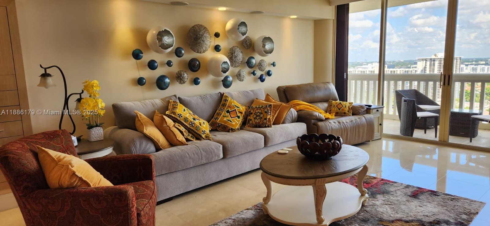 Amazing views from this high floor 2 bed 2 bath condo. Available for a 6 month seasonal rental. Fully furnished and ready for occupancy. Renovated kitchen and bathrooms, marble floors throughout the living areas and wood floors in the bedrooms. Live in prestigious Williams Island with access to full amenities on site: 15 tennis courts, 4 pickleball courts, 3 restaurants, 27, 000 sq. ft spa, marina, walking/jogging path, children's playground, courtesy bus and more. Club Membership is paid by the Landlord. Tenant is responsible for pro-rated Food & Beverage Minimum (appx $1000). 24 hour notice for showings is appreciated.