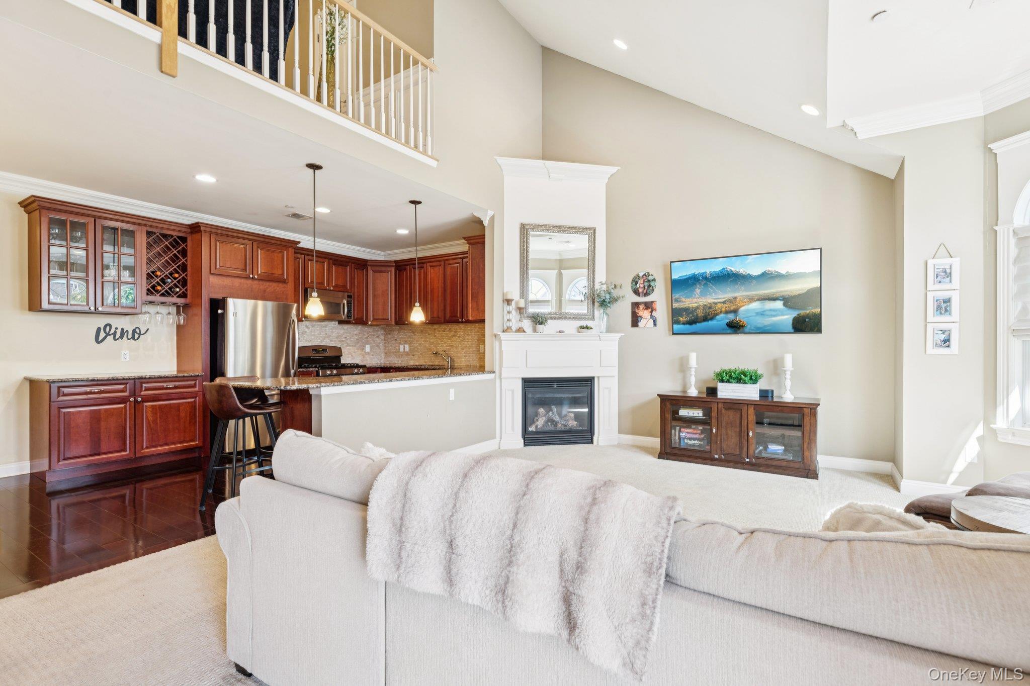Beautifully updated 2 bedroom, 2 bath Bay Village condo in the heart of vibrant Patchogue Village! This sun-filled home features soaring cathedral ceilings, elegant crown moldings, and a spacious loft overlooking the living room with a cozy gas fireplace. The kitchen offers granite countertops, stainless steel appliances, and custom closet cabinetry. Enjoy central air and a private terrace directly off the living room—perfect for morning coffee or evening relaxation. The primary bedroom includes a full bath and a generous walk-in closet. Ideally located just moments from Shorefront Park where you can enjoy summer concerts, and the Great South Bay Music Festival! Also very close to Mascot Dock, Patchogue Beach Club, Fire Island Ferry, Restaurants, Tennis, Pickle Ball, and Shopping. The Train Station is only a mile away. No Flood Insurance Required Here! Hurry Won't Last!