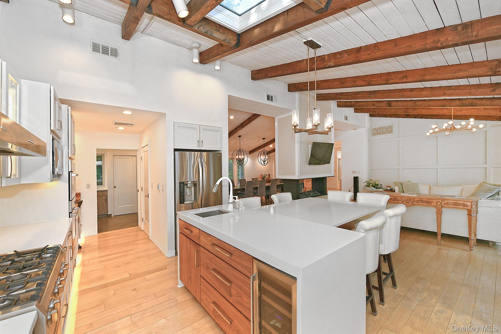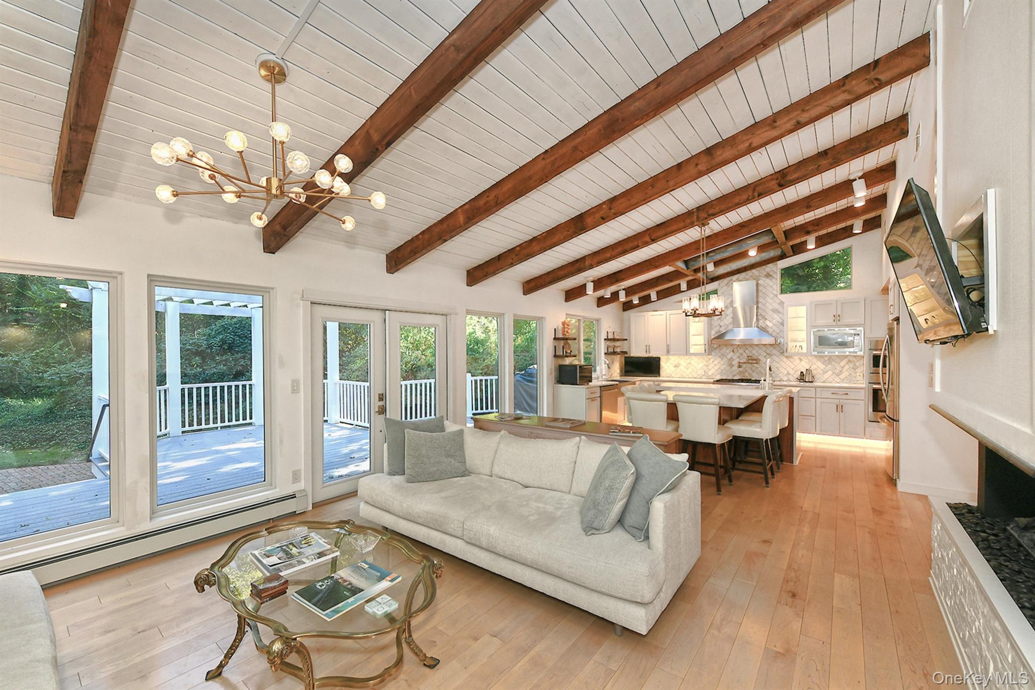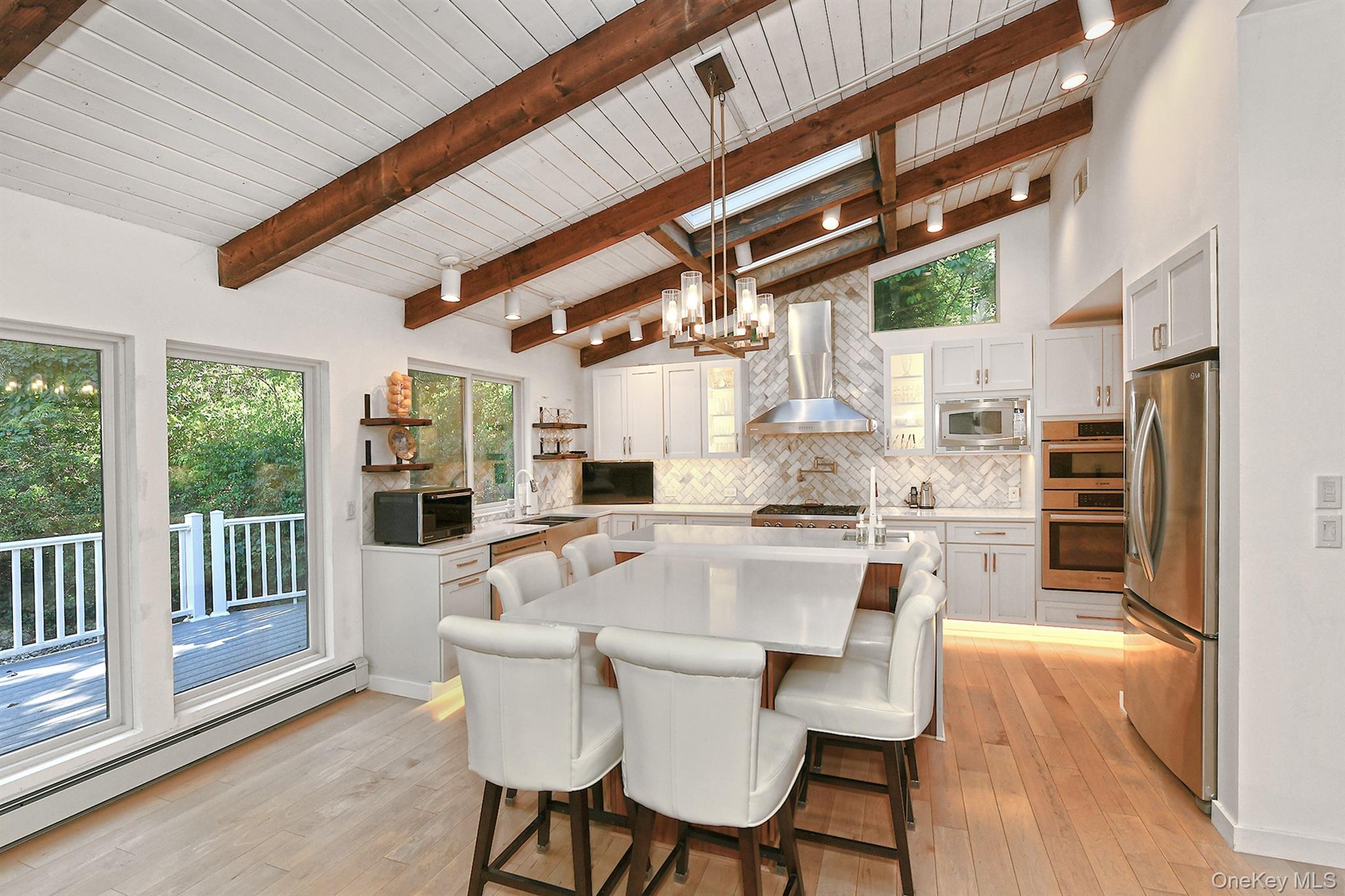 Set on a private acre, this spectacular 5-bedroom, 3-bathroom Ponderosa Ranch has been reimagined in 2025 with stunning upgrades. From the breathtaking see-through front doors to the soaring foyer, every detail has been thoughtfully designed. The brand-new chef’s kitchen, with high-end appliances and custom pantry, overlooks the serene backyard—perfect for gatherings and everyday living. Natural light pours through walls of new windows, highlighting rich white oak hardwood floors and vaulted ceilings. The 1, 500 sq. ft. finished walkout basement offers a full gym and movie room, creating the ultimate entertainment space. With central air, a 2-car garage, private driveway, and a new security system, comfort and convenience are built into every corner. Located in the highly regarded South Huntington School District, this home is a rare opportunity to live beautifully—inside and out. Schedule your private showing beginning Monday and experience the lifestyle you’ve been waiting for.