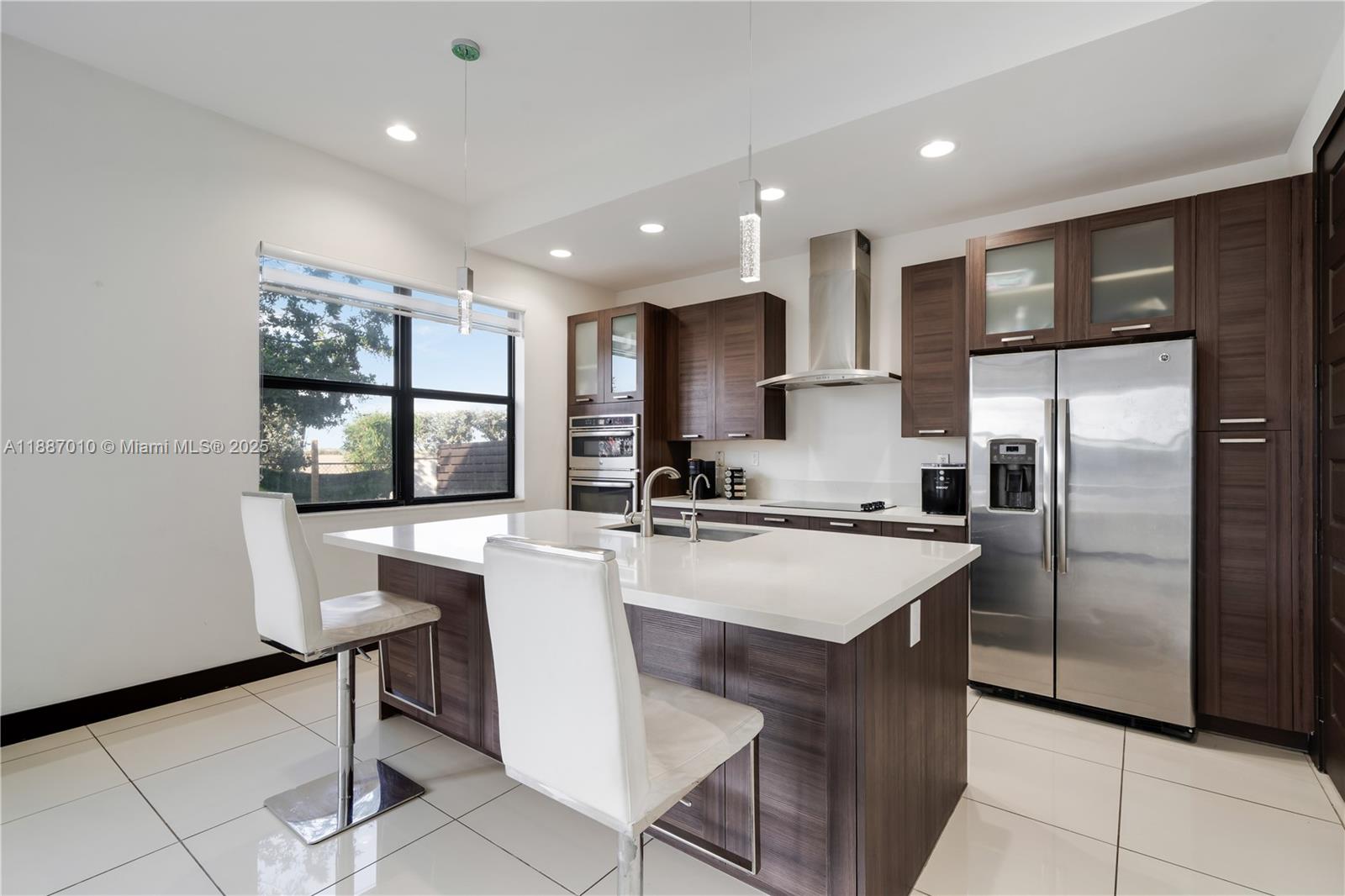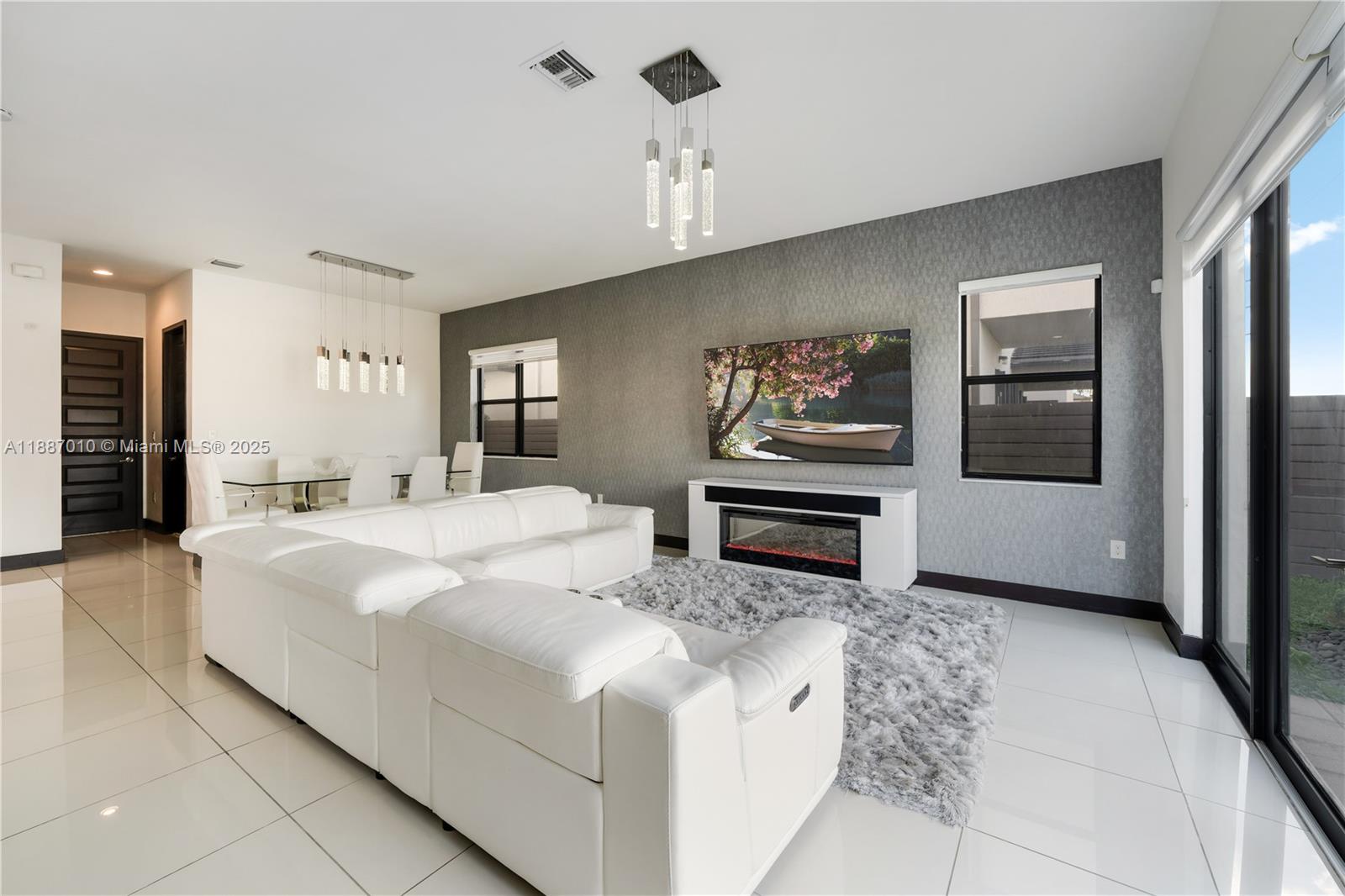 Welcome to Nirvana!!! This property is in the highly sought after community in West Kendall called Serenity. The property features 2, 597 sqft. with 4 bedrooms and 3 full baths. The property is designed in a Luxury Zen Inspired Contemporary Style with Porcelain floors, Gorgeous walnut laminate kitchen cabinets with quartz countertops, Stainless steal appliances. The Chandelier in the Foyer is by lighting design brand Kuzco and is a retired piece. The Primary en-suite bathroom features dual sinks with modern floating cabinets & a rainfall shower with pebble flooring. Come experience the Feeling of tranquility in this homes cozy backyard with the soothing zen water feature and garden.