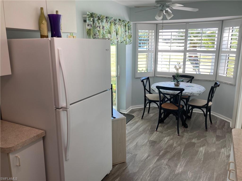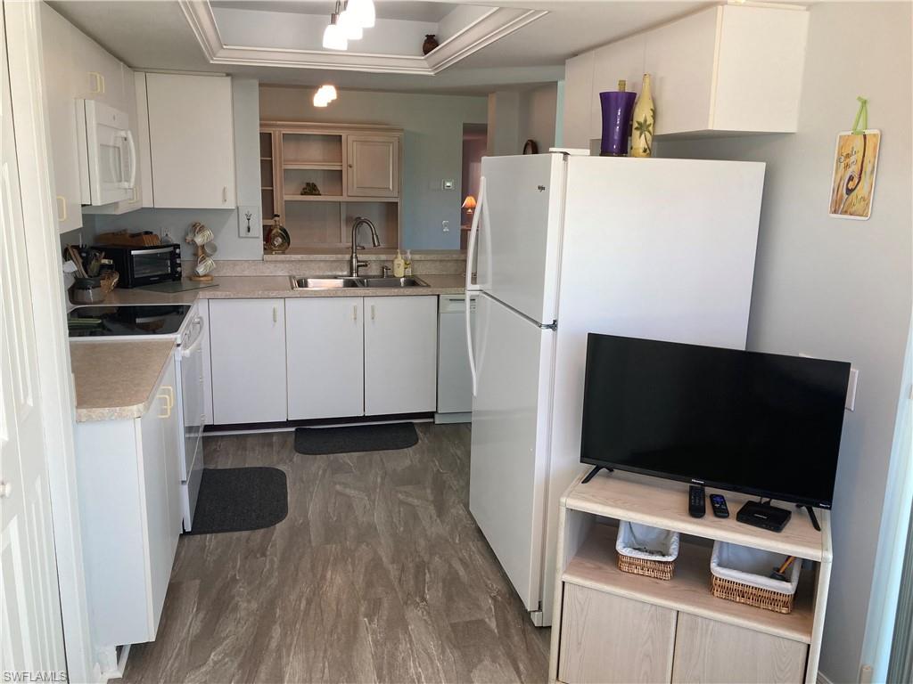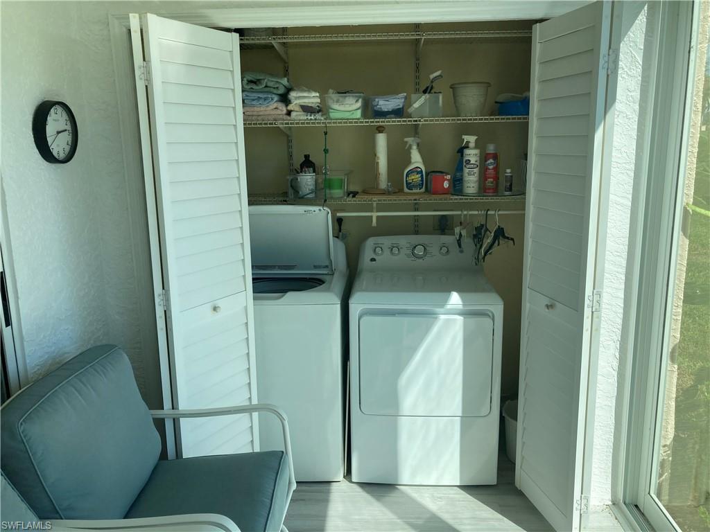 Condo features include: impact windows and impact glass enclosed lanai, plantation shutters, freshly painted interior, extra "bonus" closet in master bedroom, new hot water heater, luxury vinyl flooring throughout, washer & dryer. Carport, too! SOCIAL MEMBERSHIP included! (As a social member you will enjoy all the amenities, but, golf is subject to availability, green and cart fees. )