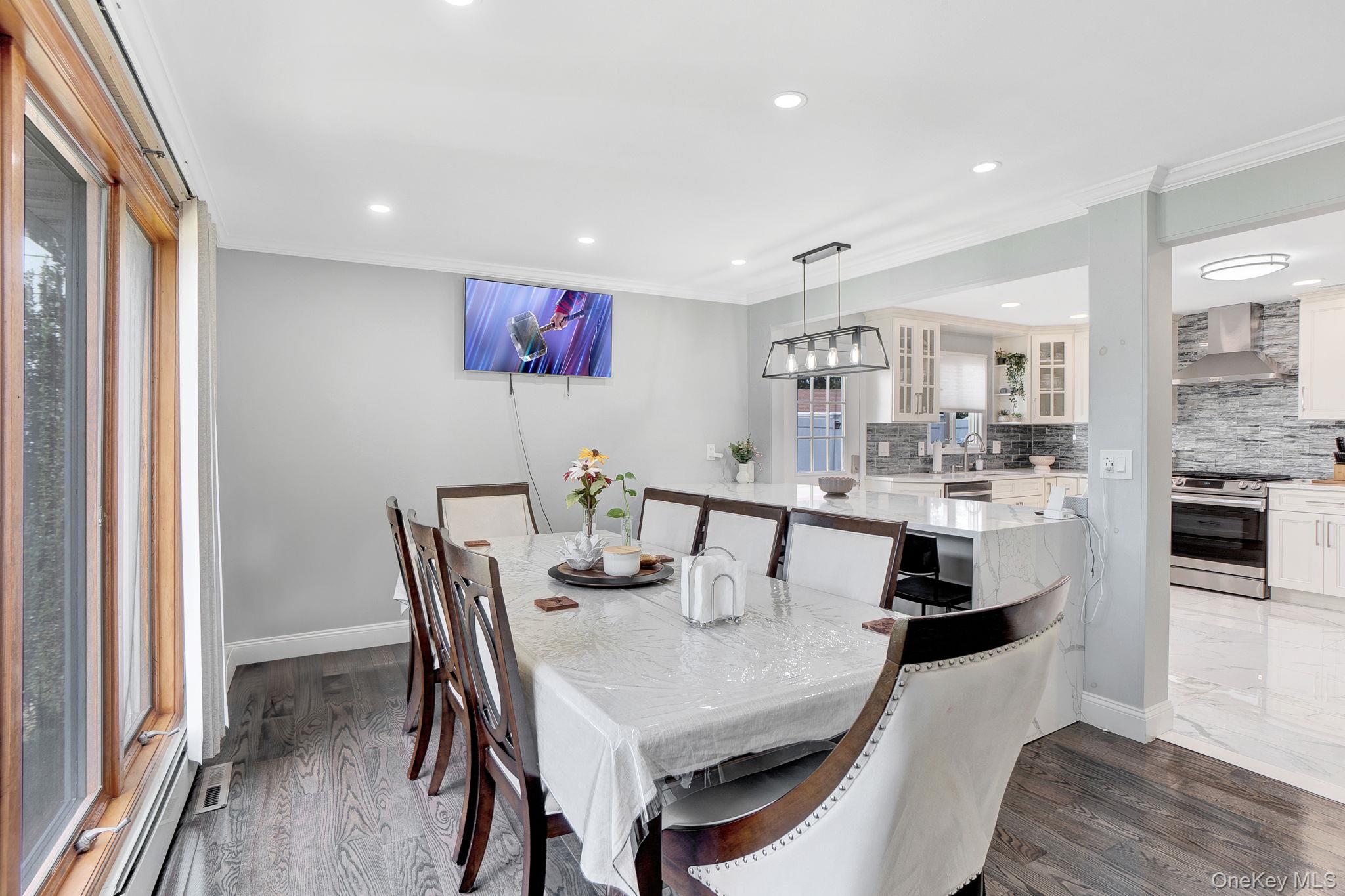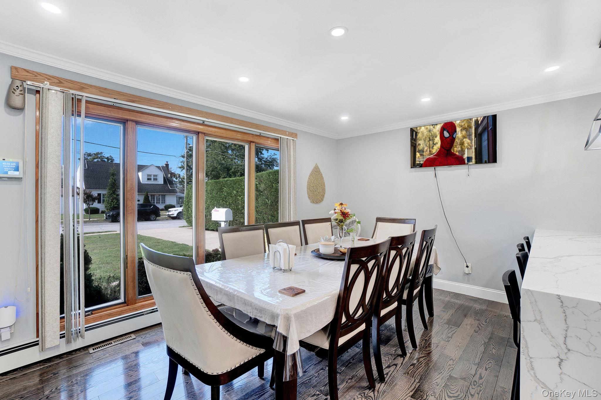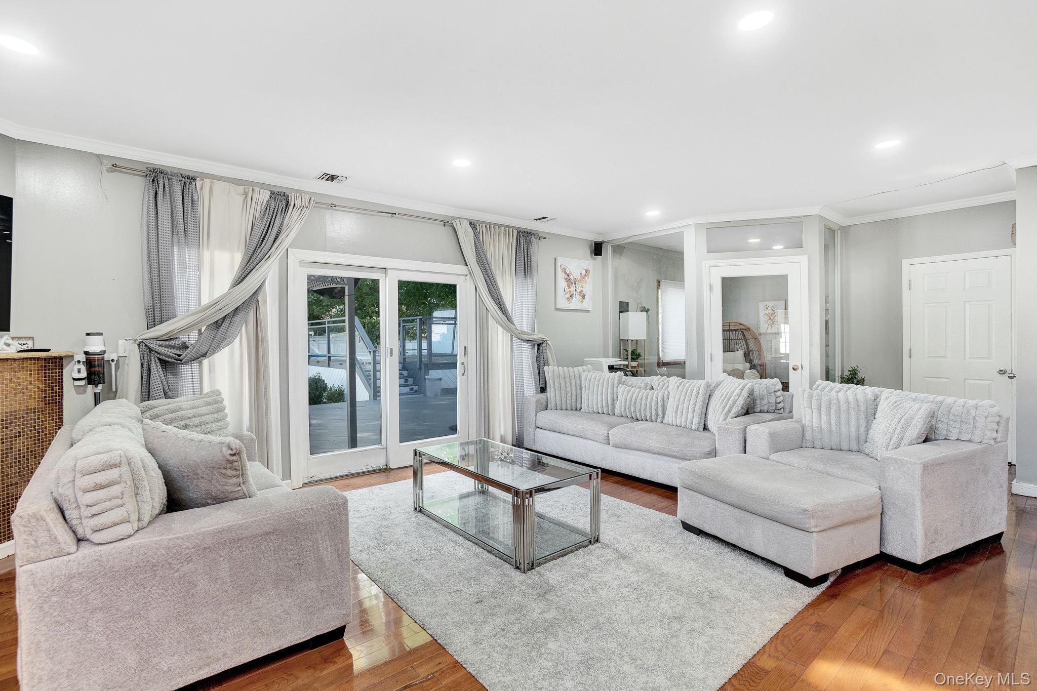 Welcome to this stunning and spacious home, fully renovated in 2024 and thoughtfully updated for modern comfort and style. Located on a quiet and desirable street, this home offers generous living space, elegant finishes, and flexible layout options perfect for large or multi-generational families. Step inside to find a brand-new kitchen with modern appliances, sleek new tiles, and new hardwood flooring throughout. The family room features heated floors and a cozy fireplace, ideal for year-round comfort. Skylights fill the home with natural light, enhancing its warm and open atmosphere. The flexible layout includes 2 bedrooms and 2 baths on the first floor, plus 4 spacious bedrooms and 1 custom bath with Jacuzzi upstairs. The home also features central air (2 units), gas baseboard heating, a walk-in closet, a small office area, a walkable attic, and potential for a M/D setup. Outside, enjoy a private backyard with a large deck, an above-ground pool, a 1-car garage, and a long driveway that fits up to 10 vehicles. The Property is located in a prime area with easy walkable access to the local mall and train station perfect for commuters and those who love convenience. A true move-in-ready gem! This turn-key home is ready for its next owner. Whether you're looking for extra space, potential for a multi-family layout, or simply a beautifully upgraded residence, 9 Pine Ln checks all the boxes. Contact today to schedule a private showing