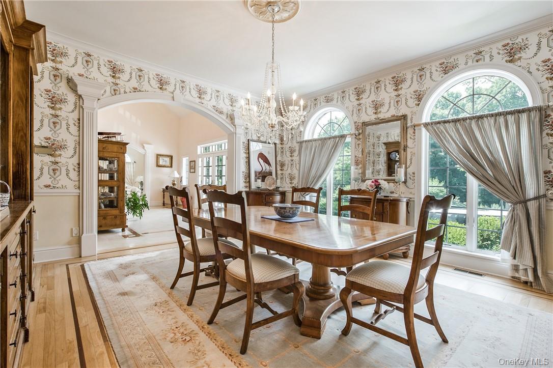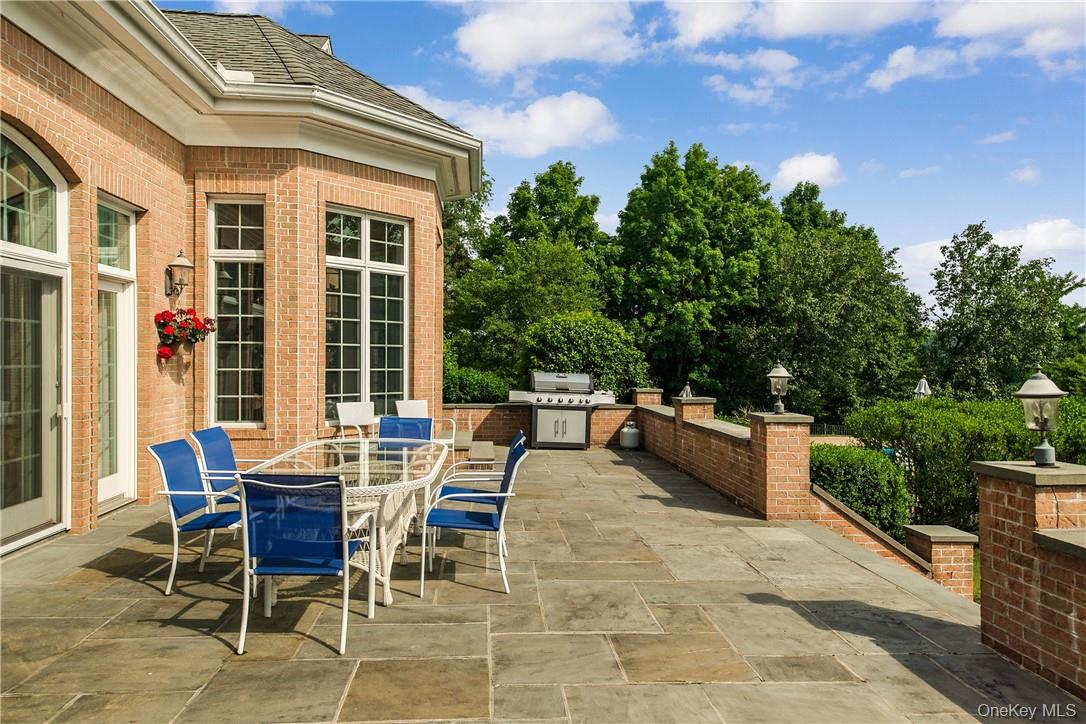 This stately brick Colonial seamlessly combines elegance and functionality, set on 2. 5 acres of manicured grounds with specimen plantings. A grand two-story foyer introduces the home’s impressive scale, with generous proportions and thoughtful design at every turn. The dramatic sunken living room and formal dining room, highlighted by soaring Palladian windows, provide an elegant backdrop for gatherings both large and small. At the heart of the home, the chef’s kitchen boasts a striking marble island, breakfast bar, and sunny dining area that flows directly to a brick patio, perfect for al fresco dining and entertaining. Just beyond, a bright and inviting great room with fireplace offers the ideal setting for relaxed everyday living. The first-floor primary suite is a true retreat, featuring dual walk-in closets, a private dressing area, and a spa-like bath with soaking tub and separate shower. Upstairs, four spacious bedrooms, two full baths, a versatile bonus room, and a lounge area with abundant storage complete the second level. Step outside to a private oasis designed for year-round enjoyment. A heated pool, expansive terrace, and panoramic views create the ultimate backdrop for summer barbecues and memorable gatherings. Perfectly positioned on a tranquil cul-de-sac, this home offers peace and privacy while remaining just minutes from Armonk’s shops and dining, with easy access to Mount Kisco, Greenwich, and major highways. Located within the highly regarded Byram Hills school district, this property is the perfect blend of luxury, comfort, and convenience.
