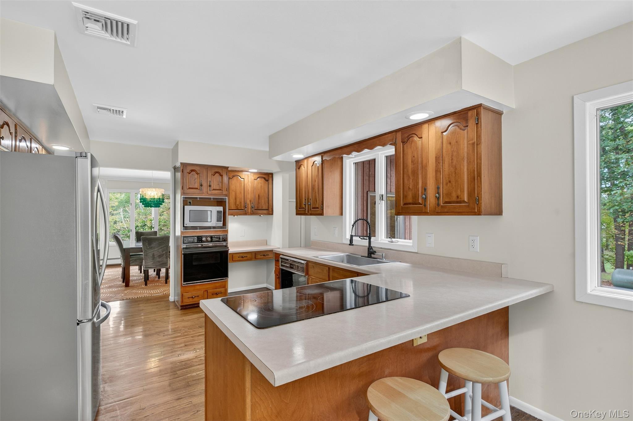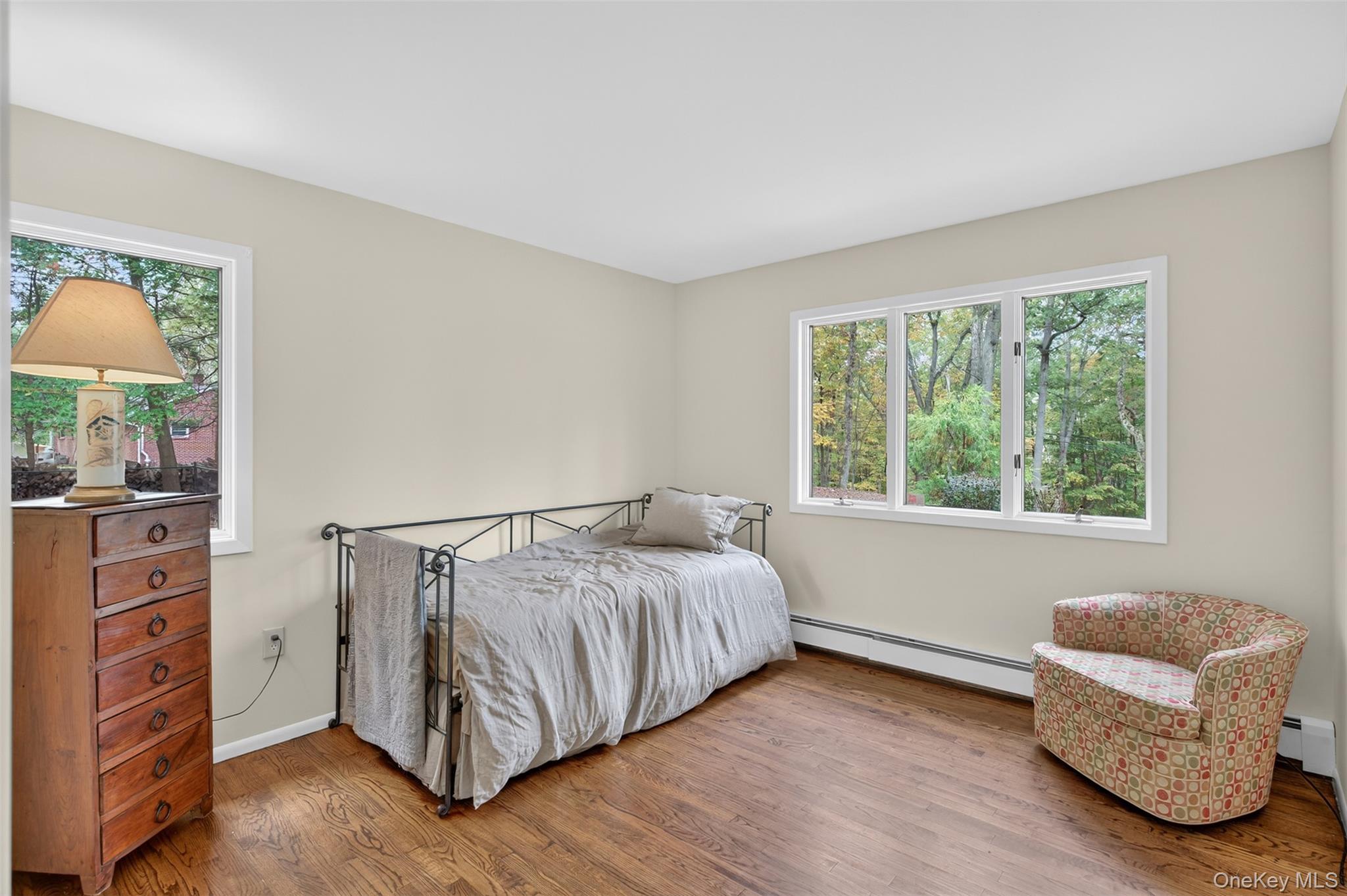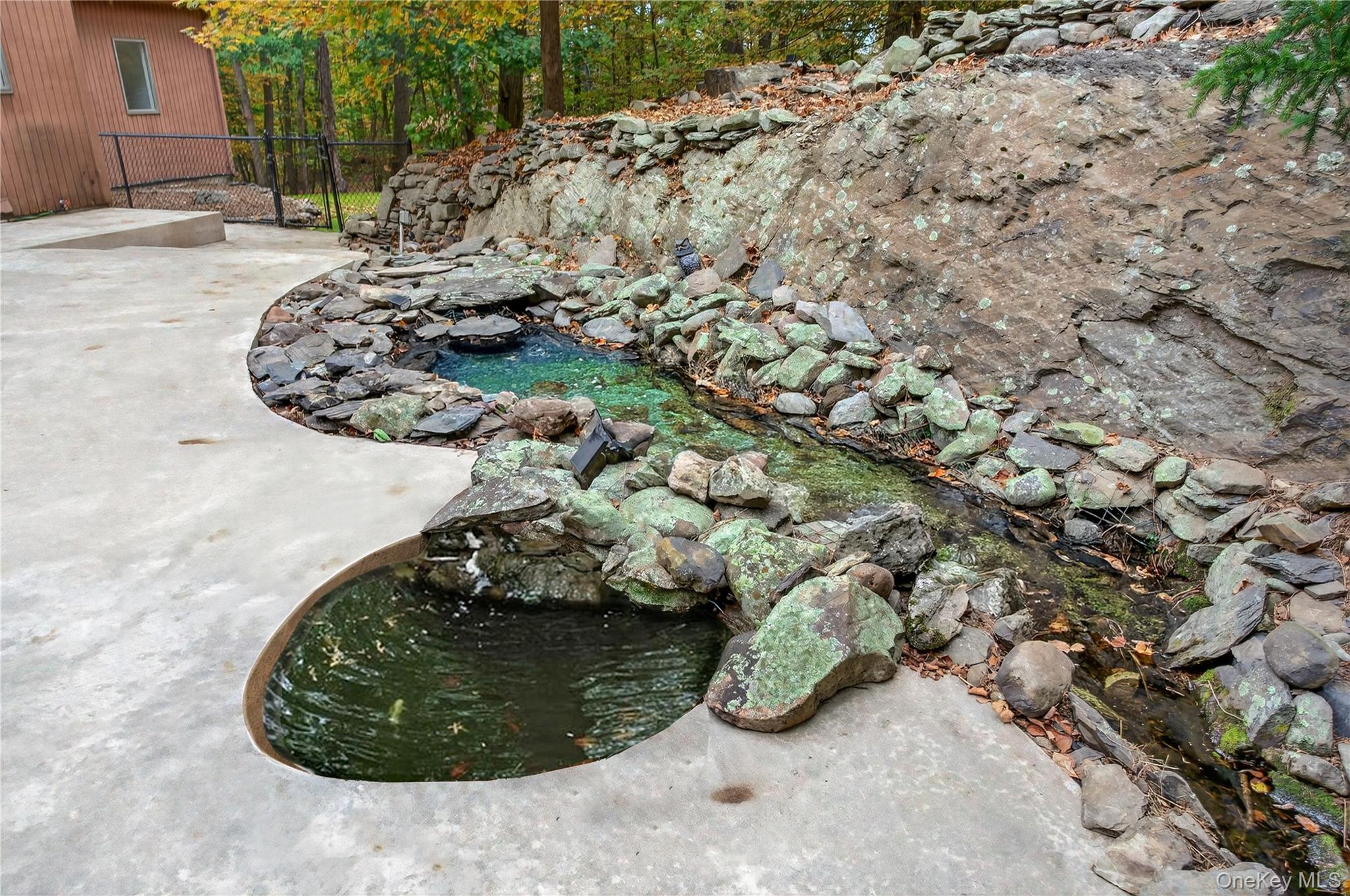 As you drive up to this enchanting 3. 2 acre parcel you are met with mature trees and professionally landscaped garden beds. You will be enamored by the calming waterfall, majestic koi pond, and oversized patio in the tranquil backyard that is ideal for relaxation, or entertaining. A freshly seeded, fenced-in, level lot also provides ample space for fun in the backyard. This idyllic ranch is tucked up off the road giving you privacy and a true sense of serenity. As you enter the freshly painted interior you will notice gleaming hardwood floors and a stone fireplace that will quickly become the centerpiece of your day to day. An oversized picture frame window adorns the sitting room giving you a sense of indoor-outdoor living. The spacious formal dining room leads you into the light-filled kitchen with a wolf cooktop peninsula, new fridge, and eat-in-dining area. Just off the kitchen is a main-level laundry/mud room that can be accessed through the 2 car garage. Three bedrooms and two full bathrooms complete the main level, including a primary ensuite. This ranch home also features central air, a whole house generator, 3 year old furnace and boiler-mate (energy efficient), 200 AMP electric and a full sized basement with ample storage and workshop. Set in bucolic Warwick just minutes from the Village of Warwick and Village of Florida, wineries, breweries, farm stands, hiking trails and so much more. Make this Warwick gem your home sweet home. Only 1 hour from NYC.