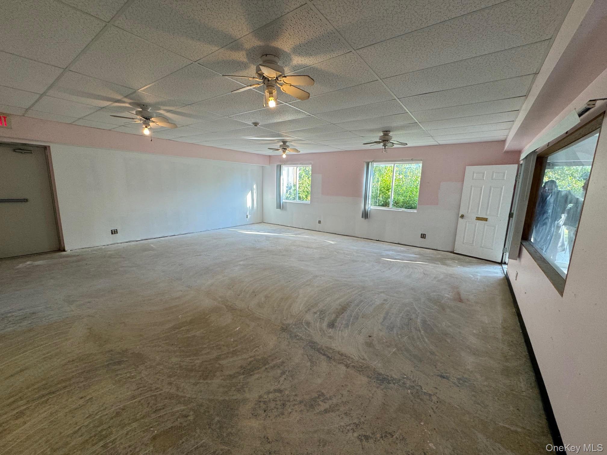 COMMERCIAL BUILDING FOR LEASE - PRIME SUPER LOCATION FOR YOUR BUSINESS WITH ALL MUNICIPAL SERVICES & 3 PHASE ELECTRIC. . . Mixed use 9375' sq. ft. in total. On ground floor with commercial concrete flooring with 5625' sq. ft. heated open space free of columns with 24' high ceilings plus another 1875' sq. ft. office space with no step access on the same floor plus another 1875' sq. ft. on second floor currently used as residential space is a 3 bedroom spacious apartment with 2 full bathrooms with all services and amenities. Cornwall municipality and schools with New Windsor address in less than half mile from the busy intersection of "Five Corners" with over 30, 000 cars driving by per day. Auto-switch Generac generator in place. 1. 2 acre lot on HC zoned district with approximately 40 car paved parking area and more green yard if needed on both sides of the building.