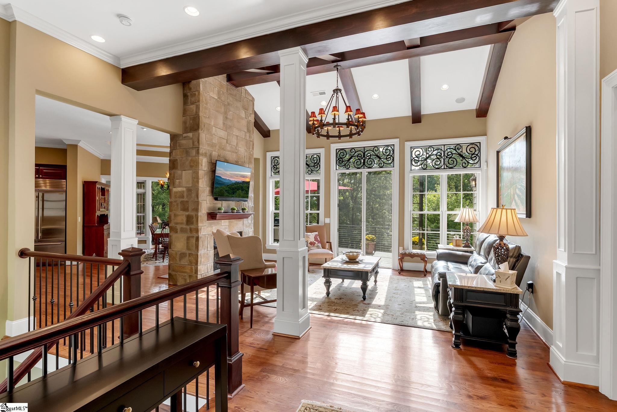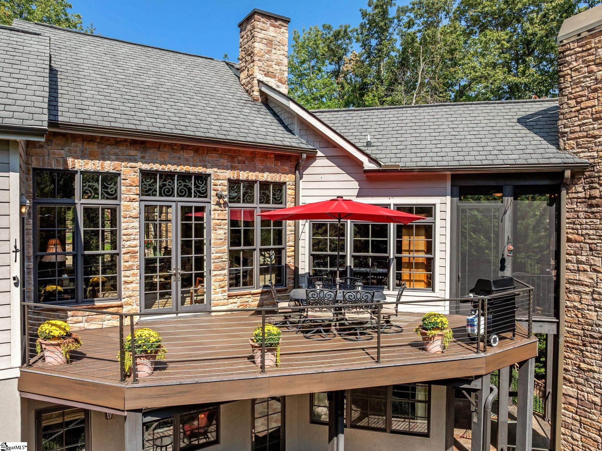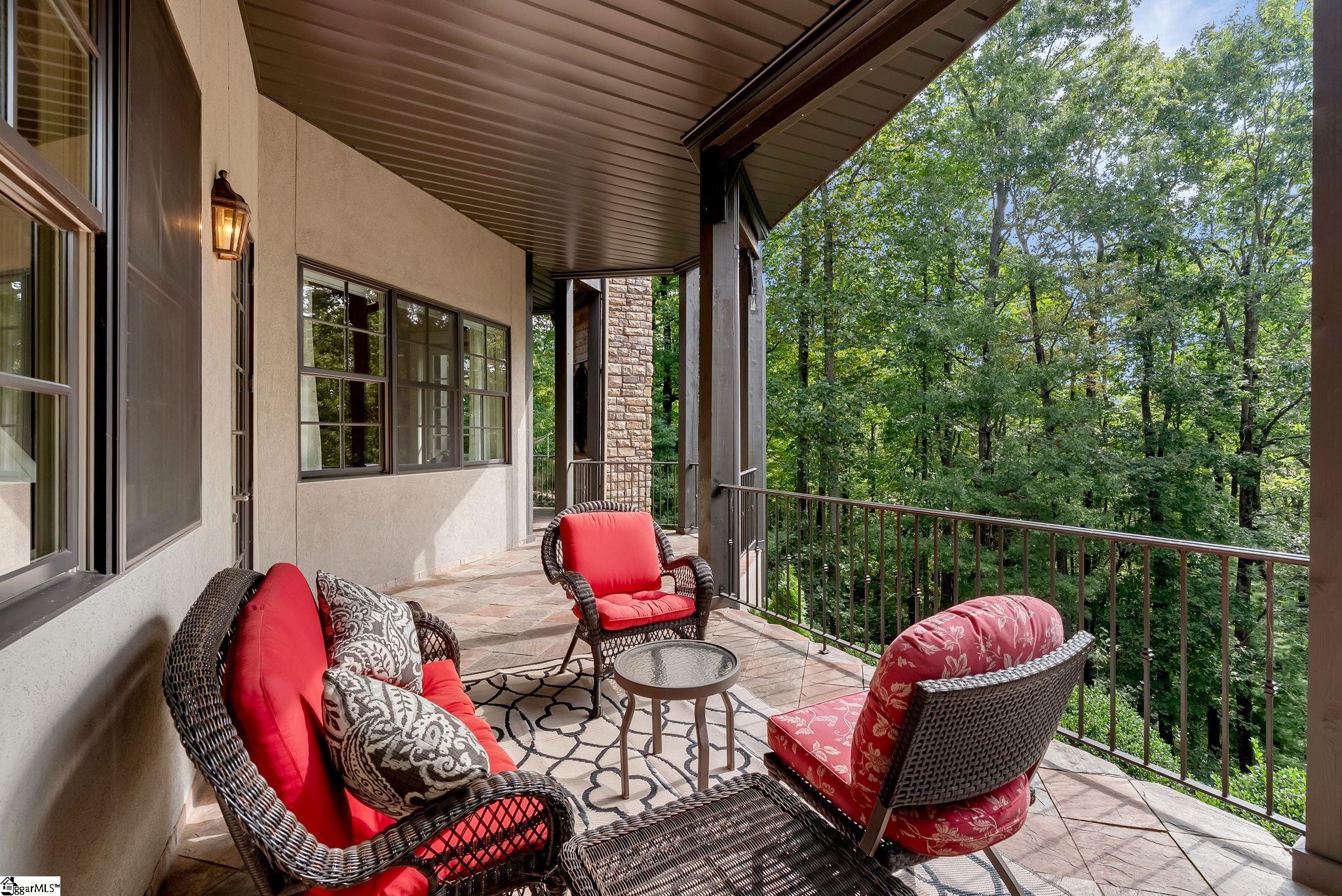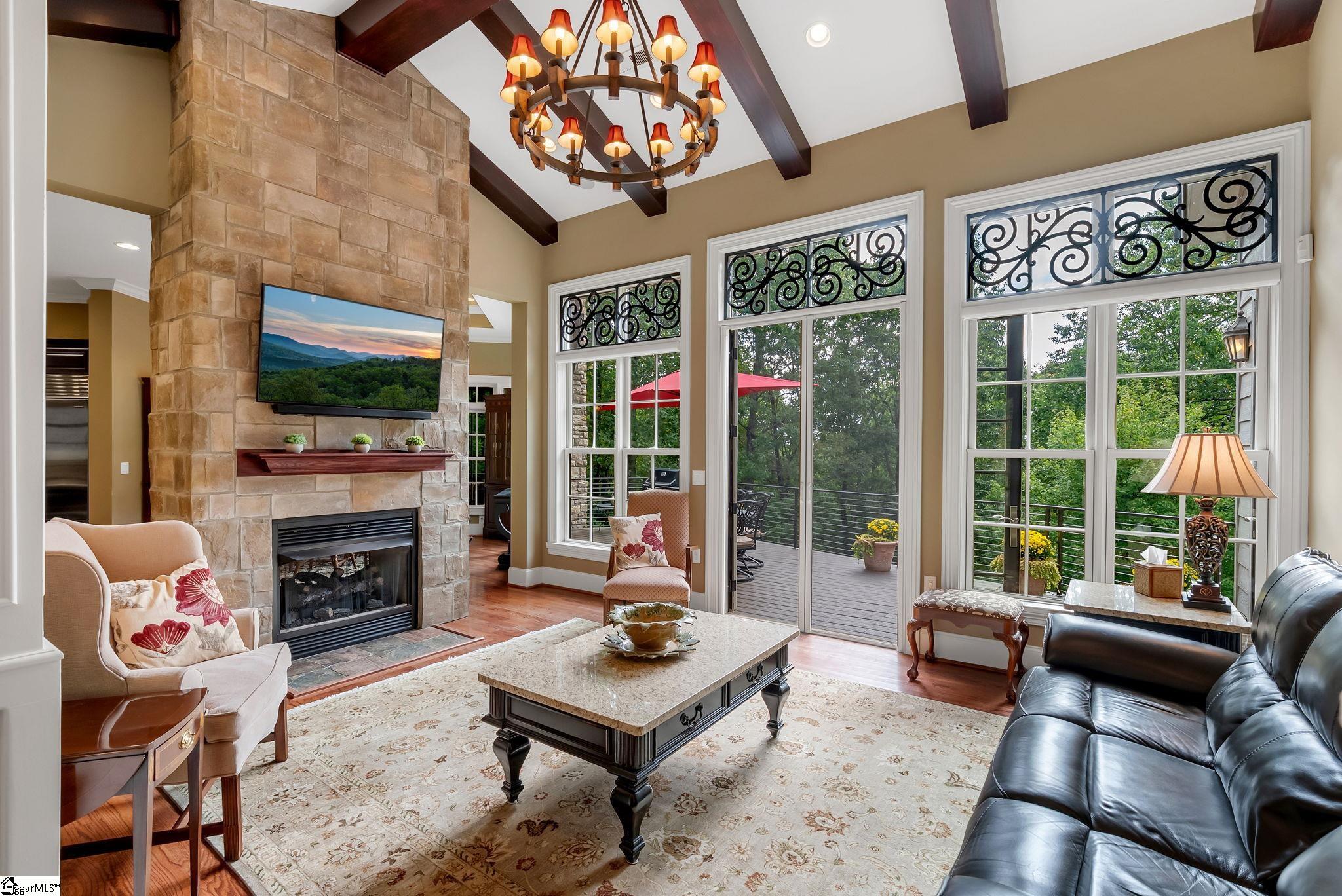 Welcome to 115 Blazing Star Trail in the highly sought-after Cliffs at Glassy, where luxury & comfort come together effortlessly. Set at a 2, 600-foot elevation with seasonal southeast views, this home is enhanced with thoughtful upgrades, & its design seamlessly integrates indoor & outdoor living. Perfect for both intimate gatherings & overnight guests, the layout provides spacious common areas alongside private retreats, all connected by an inviting flow. Expansive windows & strategically placed doors flood the interiors with natural light & open to tranquil outdoor spaces, ideal for enjoying the mountain setting year-round. This home embodies a lifestyle of sophistication, ease, & harmony with nature. The private setting & welcoming approach create the perfect introduction to this meticulously maintained home. Inside, the main level opens to a spacious great room with soaring vaulted ceilings & a dramatic two-sided stone fireplace. The open layout seamlessly connects to the chef’s kitchen & adjoining dining room, ideal for both everyday living & entertaining. Designed with style & functionality in mind, the gourmet kitchen features a gas 4-burner Wolf cooktop with grill, wine fridge, a newly expanded granite island with bar seating, & numerous upgrades, including Sub Zero & Wolf appliances, a trash compactor, & sink. Ample cabinetry & a built-in desk nook add thoughtful touches for convenience & organization. Just beyond the dining room, discover two inviting outdoor living areas. A charming screened porch with an outdoor gas fireplace provides a cozy spot to relax in comfort, while the newly expanded deck offers a private retreat for morning coffee, alfresco dining, or simply soaking in the natural surroundings. Together, these spaces set the stage for year-round enjoyment, whether entertaining guests or savoring quiet moments amidst the mountain scenery. The expansive primary suite offers a true retreat, accented by a vaulted ceiling & a recently renovated spa-like bath featuring dual vanities, a soaking tub, private water closet, & a walk-in shower with dual showerheads, including a rainfall feature. Two generous walk-in closets with custom systems & updated lighting provide both style & functionality. Also on the main level, the expanded laundry & mudroom includes abundant pantry cabinetry & a sink for added convenience. A stylish powder room & a dedicated office complete this level. The lower level showcases a generous living room with a wet bar, & gas fireplace creating the perfect space for entertaining. Two guest bedrooms & two full baths, including one with direct access to a private deck, provide comfort & privacy, while three unfinished storage rooms offer abundant space for organization or future customization. Outdoor living continues on this level with a spacious deck that seamlessly extends the home into nature & even stays dry during rains. Relax in the hammock featured in a private area with cool breezes. Framed by the tranquil beauty of the mountains, this inviting retreat is ideal for relaxing, entertaining, or simply enjoying the serene views year-round. Additional features of this remarkable home include an oversized two-car garage & a charming flagstone walkway with artistic concrete railings that meander around the property, creating a peaceful nature path. Notable updates include, refreshed landscaping, elegant entry door, retractable screens on the front & deck doors, updated interior & exterior paint, a LeafFilter system, two new HVAC systems, new water tank with constant hot-water flow, & a whole-home generator with surge protection (2025). Just a short drive from the clubhouse along the 18th fairway, & community amenities, this residence offers both convenience & luxury in one of the area’s most desirable settings. Offered mostly furnished with select exclusions. A Club membership at The Cliffs is available for purchase with this property giving you access to all seven communities.