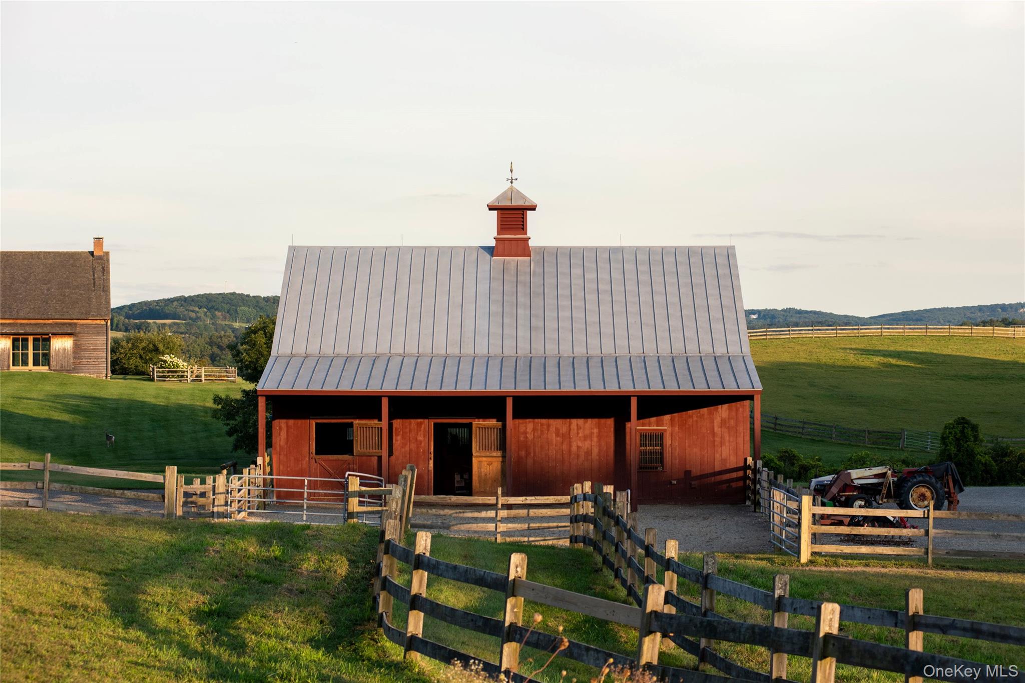 Set among the beautiful rolling hills on 203 acres is this private estate that takes you back in time. The farm was built in 2008 around a c. 1754 Dutch barn that was dismantled from upstate NY and transformed into an incredible great room with 34' soaring ceilings, a brick fireplace and two huge French doors to take in the view. Designed by Cynthia Filkoff with 6, 340 square feet, the main house offers five bedrooms and three and one half baths. The home feels centuries old, with the wide board floors and plaster walls throughout, while providing the modern conveniences, like the geothermal heating and cooling system and the automatic generator. Every room is a piece of art and history; comfortable, primitive and functional. Adding to the list of amenities is a two-car garage with loft; three bedroom caretaker’s house; and equestrian facilities including a five stall barn, equipment barn, outdoor riding ring and six paddocks. The expansive property has trails throughout and was placed in the Dutchess Land Conservancy for love of the land. A once in a lifetime opportunity to purchase this private country estate. Just minutes to Pine Plains, and two hours to NYC. Additional Information: Amenities: Soaking Tub, ParkingFeatures: 2 Car Detached,