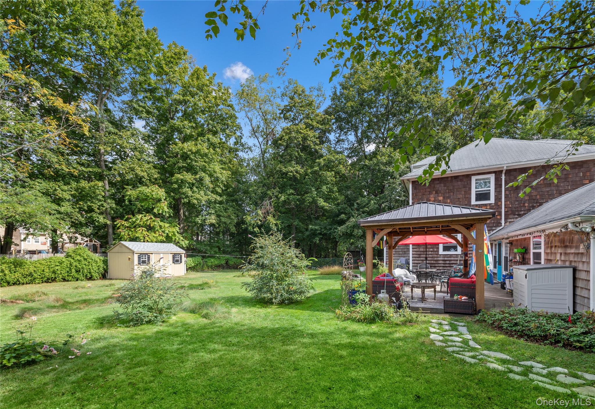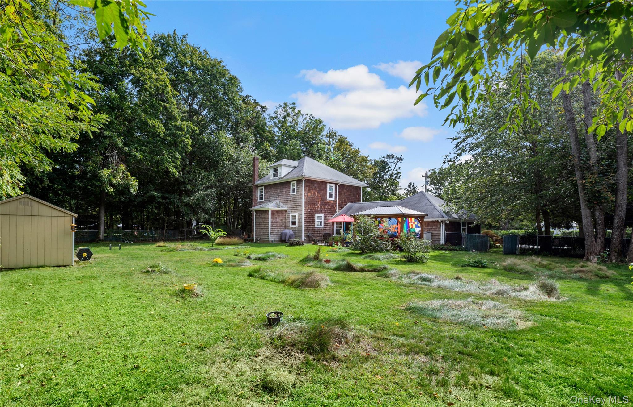 Welcome to 468 Main Street, a cedar-shingled colonial, in Yaphank's Historic Village Green Section, where spacious rooms, with high ceilings, glow with natural light and graceful curved walls add a touch of character. The eat-in kitchen offers endless possibilities, plus ample storage and counter space, while the well-appointed formal dining room invites everyone to gather beneath a chandelier that sparkles like a firework. The primary suite dazzles with comfort, joined by two additional bedrooms and two full bathrooms that offer space for everyone. A cozy sitting room opens to an expansive, meadow-like, 0. 75 acre yard - the kind that invites barefoot mornings and starlit evenings. Recent updates include, but are not limited to, fresh paint throughout, refinished hardwood floors, updated electrical panel (200 amp), washer & dryer, hot water heater and pergola. Tons of storage with the full, unfinished basement, attached two-car garage and walk-up third floor attic! 468 Main Street is the perfect home to dream bigger, grow freely, and live the life you’ve been imagining.