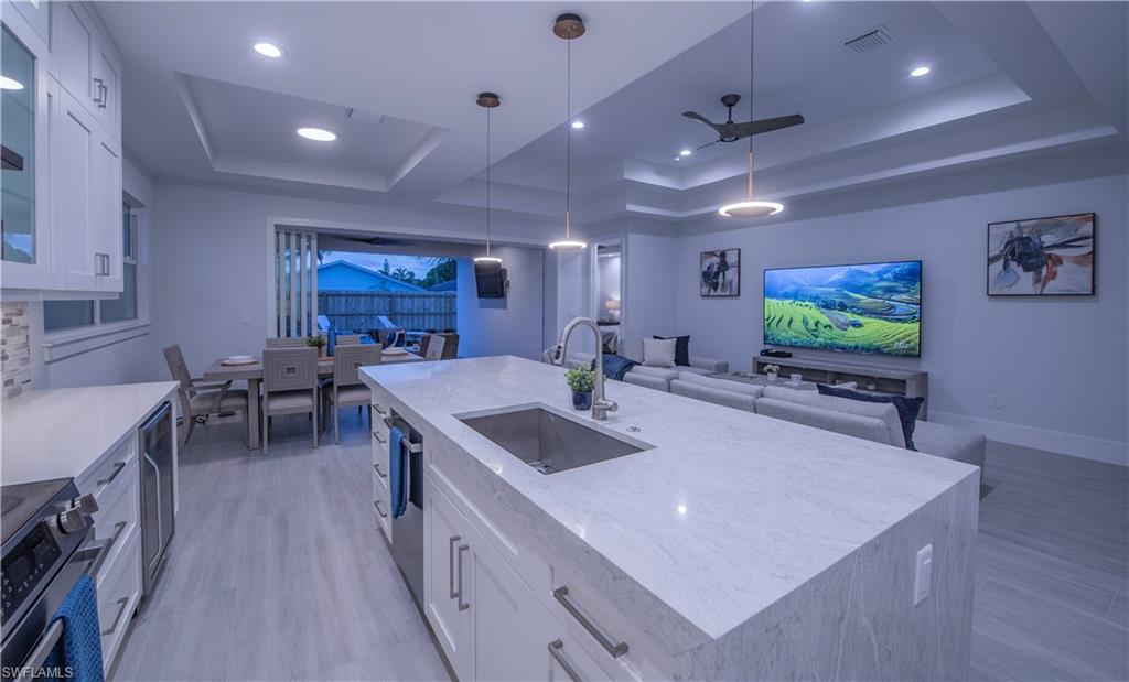 Exceptional turnkey investment opportunity: a 5-bedroom, 3-bathroom property with a pool and spa. Built in 2023, this home comes fully equipped with existing rental income, making it an ideal choice for investors. The property is designed to attract both short-term vacationers and long-term tenants, featuring a modern open-concept layout with high-end finishes. The chef’s kitchen includes premium appliances and a striking waterfall marble island, while southern exposure ensures abundant natural light. Outdoors, a private, resort-style pool, spa, and sun-soaked lounge areas provide the perfect retreat. Its prime location is within walking distance of Mercato’s dining and nightlife, the Ritz-Carlton, and Vanderbilt Beach. This ensures consistent rental demand and strong occupancy rates. Whether you are looking for a profitable beach-area rental or a dual-purpose vacation home with income potential, this property is fully turnkey and positioned to deliver immediate returns.