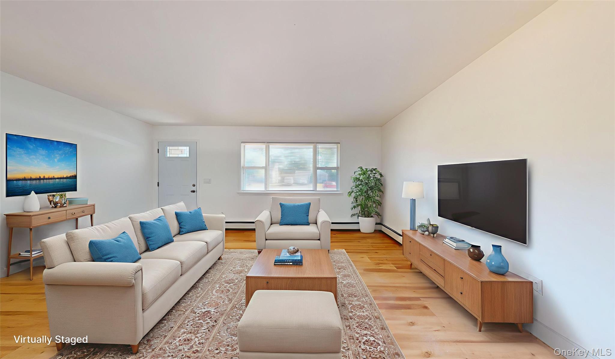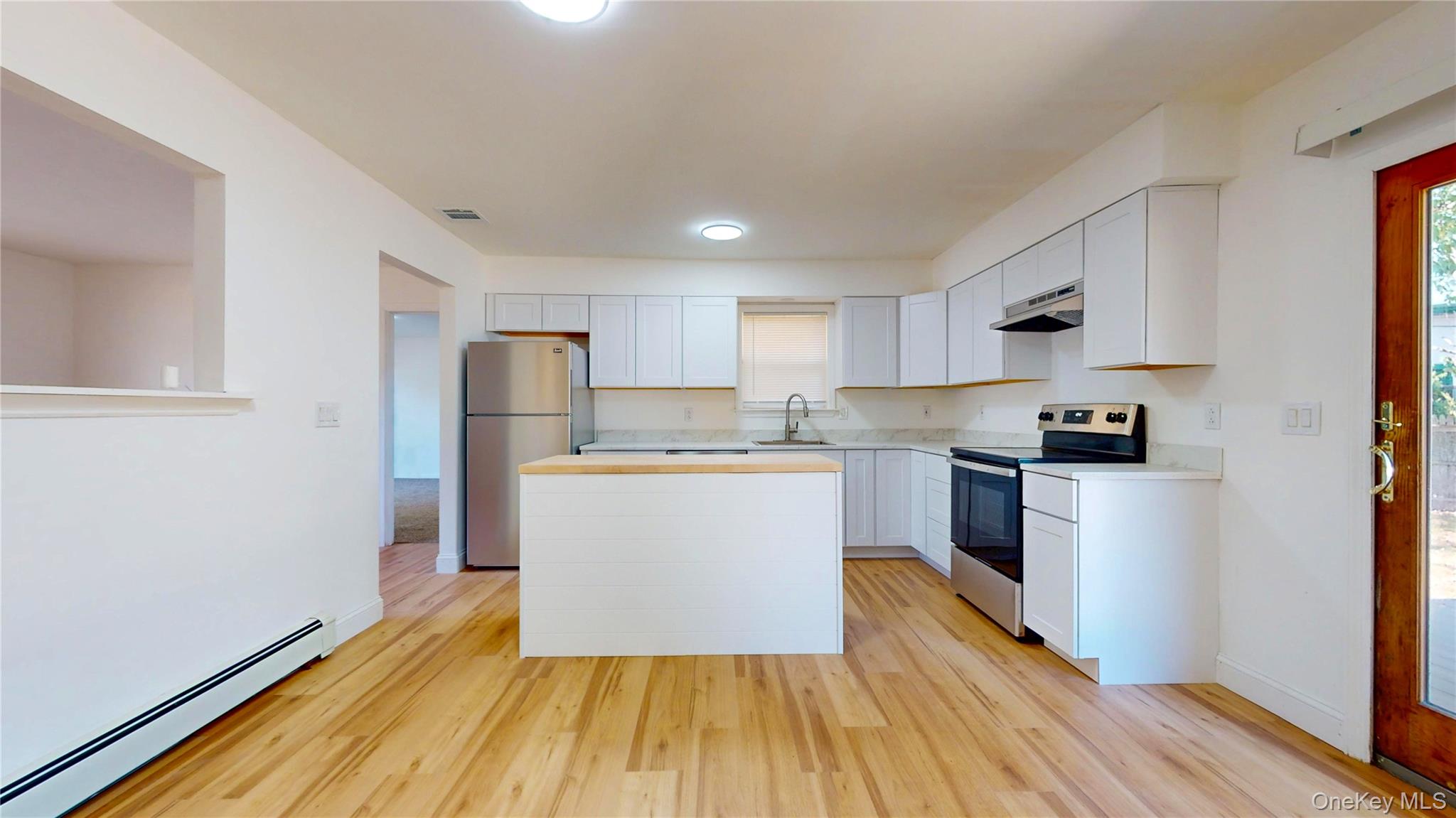 Completely renovated wide-line ranch on a corner lot. Features new vinyl siding, Trex front porch and rear deck, new white soft-close kitchen cabinets, stainless steel appliances, and updated bathrooms. Professionally painted throughout with new laminate flooring and carpet in bedrooms. Ductwork ready for central air. Upgraded 200 AMP electric panel. Primary suite with private bath, plus three additional bedrooms and full bath. Super low taxes under $7, 000.