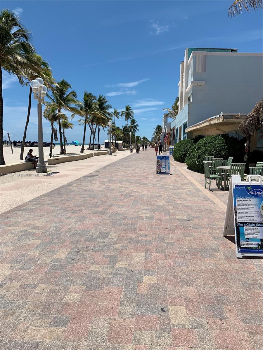 Location Location !! A few steps away from world famous Hollywood Boardwalk . Amazing views, 2nd floor 1 bedroom / 1bath unit , Ready to move in . Can Be sold furnished or unfurnished. No driving needed to witness sunrise or sunset on the ocean . Your own paradise getaway! Boutique style 2 Story building . Apt features 2023 water heater and a new dishwasher , king size bed , 2 walk in closets , stove , microwave, refrigerator and a bathroom with a large shower . Building is extremely well maintained. President of the Association resides on the property . 50 yrs Recertification completed in 2023 . Pipelining 2023 , 15 yrs warranty brand New Roof 2024 . New remodeled heated pool , Complete building paint and parking lots asphalt overlay , all completed in 2025 Free Common Laundry