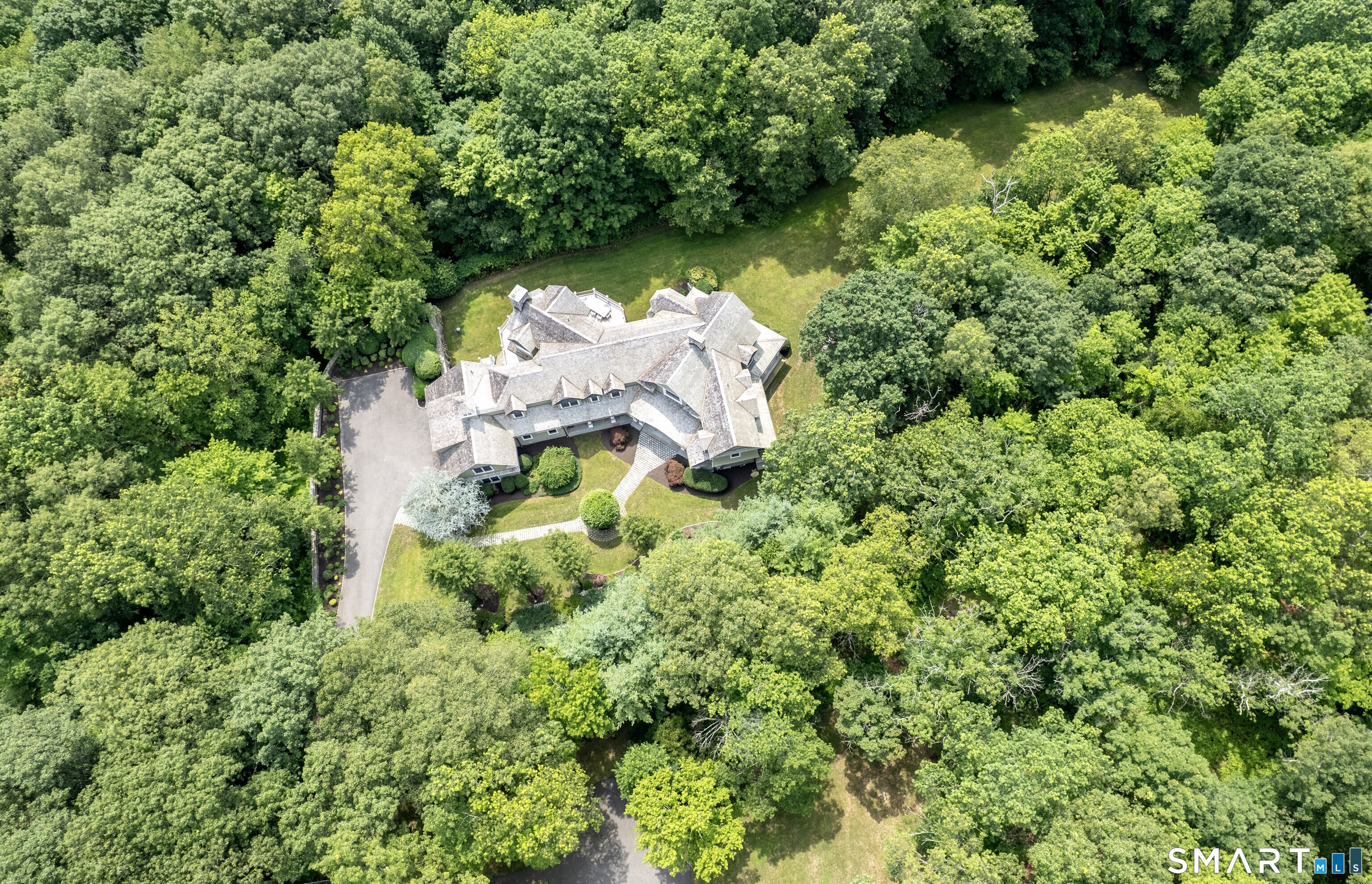 A rare opportunity to own a custom-designed residence by renowned architect Peter Cadoux, nestled on a private cul-de-sac abutting Quarry Head Park/Harrison Smith Preserve providing direct access to nearly 60 acres of hiking and equestrian trails. Additional privacy is provided by a serene sanctuary of forever green space to the west. This extraordinary home combines architectural artistry, thoughtful design, and the finest materials and craftsmanship. The home has been meticulously maintained by a professional property manager. A grand foyer with 20+ ft ceilings, welcomes guests into an atmosphere of understated elegance, framed by exceptional millwork. The main living spaces flow gracefully: a formal dining room adorned with a crystal chandelier and an inviting living room featuring a coffered ceiling and fireplace. A half bath for guests and a private office with built-in wood cabinetry is off to the right. Off the dining room, the butler's pantry featuring a refrigerator and wine cooler make entertaining a breeze. The kitchen is a culinary dream, appointed with Viking and Sub-Zero appliances, double sinks, beautiful quartz countertops and gorgeous custom cabinetry. With ease for entertainment, the kitchen opens to the family room with a well-appointed stone fireplace. Mirroring this focal point, an outdoor fireplace anchors the wrap-around deck, offering seamless indoor-outdoor entertaining. A walk-in coat closet, mudroom, additional powder room and walk in pantry connect the heated three-car garage complete the main level with style and versatility. The upper floor offers six bedrooms, including an extraordinary primary suite designed as a true retreat. The suite features vaulted ceilings, Palladian windows that flood the space with natural light, a sitting area currently used as a fitness room, two walk-in closets, and a dressing room with custom cabinetry. The spa-inspired bath impresses with double vanities, a steam shower, soaking tub, and built-in refrigerator. Four additional bedrooms share Jack and Jill baths, with two over the garage making an ideal au pair/in-law suite. A sixth en-suite bedroom serves as a welcoming guest room. Completing the level are a laundry room, custom built-in cabinets and study area, designed for everyday function. The fully finished lower level extends the home's sophisticated living experience with a one-of-a-kind family room and wet bar complete with dishwasher and refrigerator, sitting area with custom cabinetry and stone fireplace, a wine cellar holding over 800 bottles and plenty of room for a pool table. A separate recreation area that can be used as a media room or playroom and full bath with steam shower, provide space for entertainment and relaxation adding convenience for hosting or future pool use. The walkout allows easy access to stone patio and the outdoors. This exceptional property is surrounded by nature and privacy. A flat yard is perfect for fun and games. This exquisite residence is enhanced with a newer cedar roof, whole-house generator, whole-house speaker system and central vacuum. It has every bell and whistle. Indeed, every detail of this estate has been executed to perfection - delivering comfort, convenience, and enduring quality.