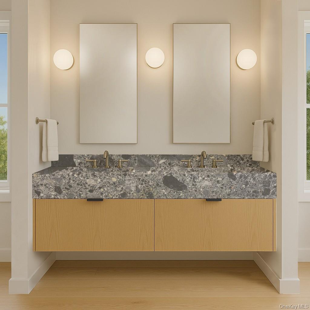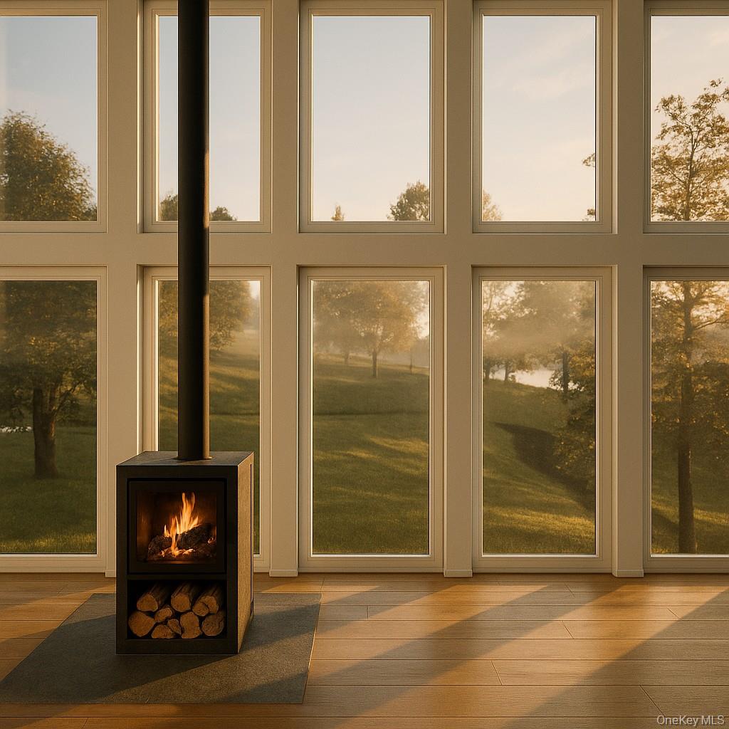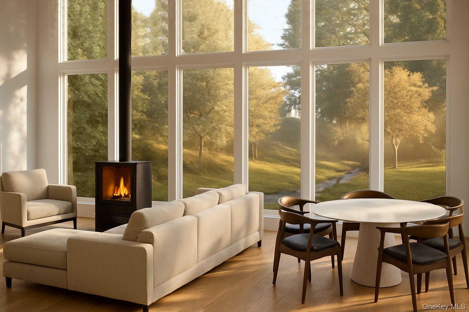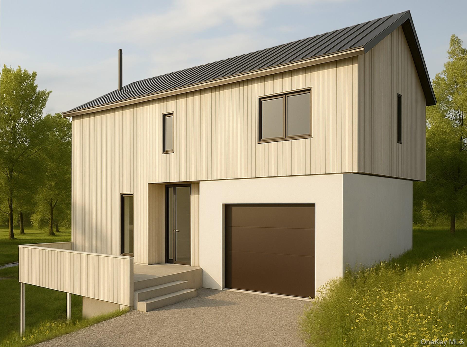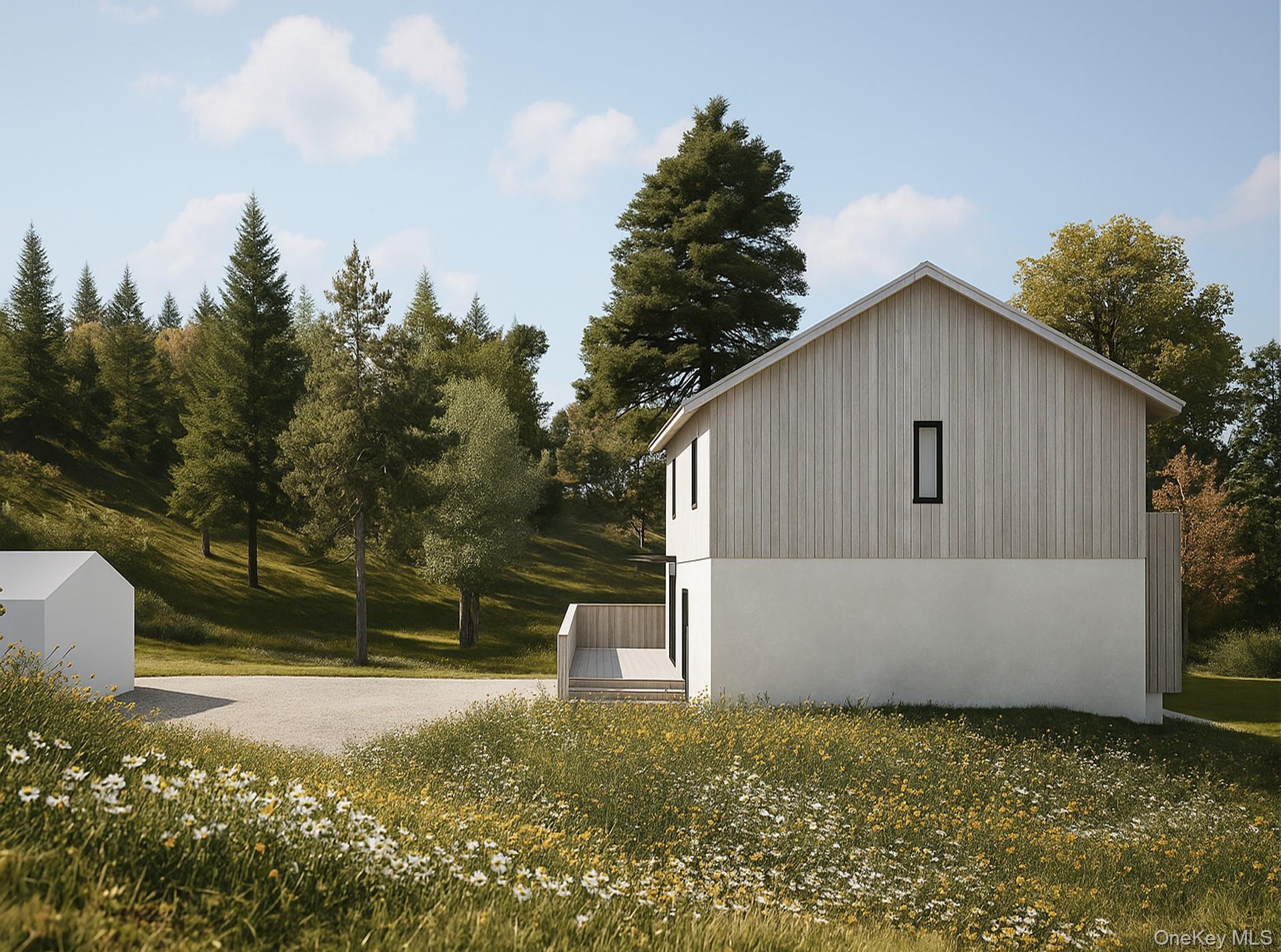 Set on a serene two-acre parcel that spans both sides of a quiet country road, this exceptional new residence, scheduled for completion in December 2025, offers a rare blend of modern architectural polish and timeless natural beauty. A gentle creek meanders through the landscape, creating a soothing backdrop to a home with warm materials, refined craftsmanship, and high-performance building standards. The primary residence encompasses 2, 040 square feet of conditioned space, with two bedrooms both featuring an ensuite bath. The interior palette is understated yet luxurious: Belgian bluestone and wide-plank Mirage engineered oak flooring set a grounded tone, while custom white oak cabinetry and integrated Miele appliances lend a seamless elegance to the kitchen. Ceppo Di Gre stone slab countertops add richness and texture, complementing the home's natural material ethos. Every detail speaks to quality and intentionality. The exterior is clad in cedar siding and stucco rain-screen over a Zip System sheathing, topped by a standing seam metal roof. The home is constructed to meet high-performance standards with an R35. 5 wall assembly and an R60 roof, ensuring exceptional thermal comfort year-round. A whisper-quiet ground-source heat pump from Dandelion provides heating and cooling to the central forced air system. An original 1956 Montgomery Ward structure has been carefully reimagined as a conditioned accessory structure with a half bath. It offers 420 square feet of flexible space - ideal for a studio, guest quarters, or remote work. The home includes an oversized one-car garage with 390 square feet of additional space. Outdoor living is enhanced by a 125-square-foot screened-in cedar patio overlooking a creek, which invites quiet mornings and evenings immersed in the surrounding natural beauty. Premium fixtures and finishes throughout the home: Kohler plumbing, Toto toilets, an Electrolux washer/dryer, and a Zephyr exhaust hood round out a best-in-class appliance suite. At the heart of the double-height living space, a Stuv wood-burning stove adds warmth and sculptural elegance. While it feels worlds away, the property is ideally situated for connection to the region. High Falls is just three minutes away, with the charming hamlets of Stone Ridge and Rosendale reachable in under eight. New Paltz lies 12 minutes to the south, Kingston is a 20-minute drive, and Minnewaska State Park Preserve, with its celebrated trails and vistas, is just 15 minutes away. With construction well underway and completion anticipated in December 2025, there is still an opportunity to personalize select finishes. This is more than a home - it is a cohesive retreat where sustainability meets sophistication in the heart of the Hudson Valley.