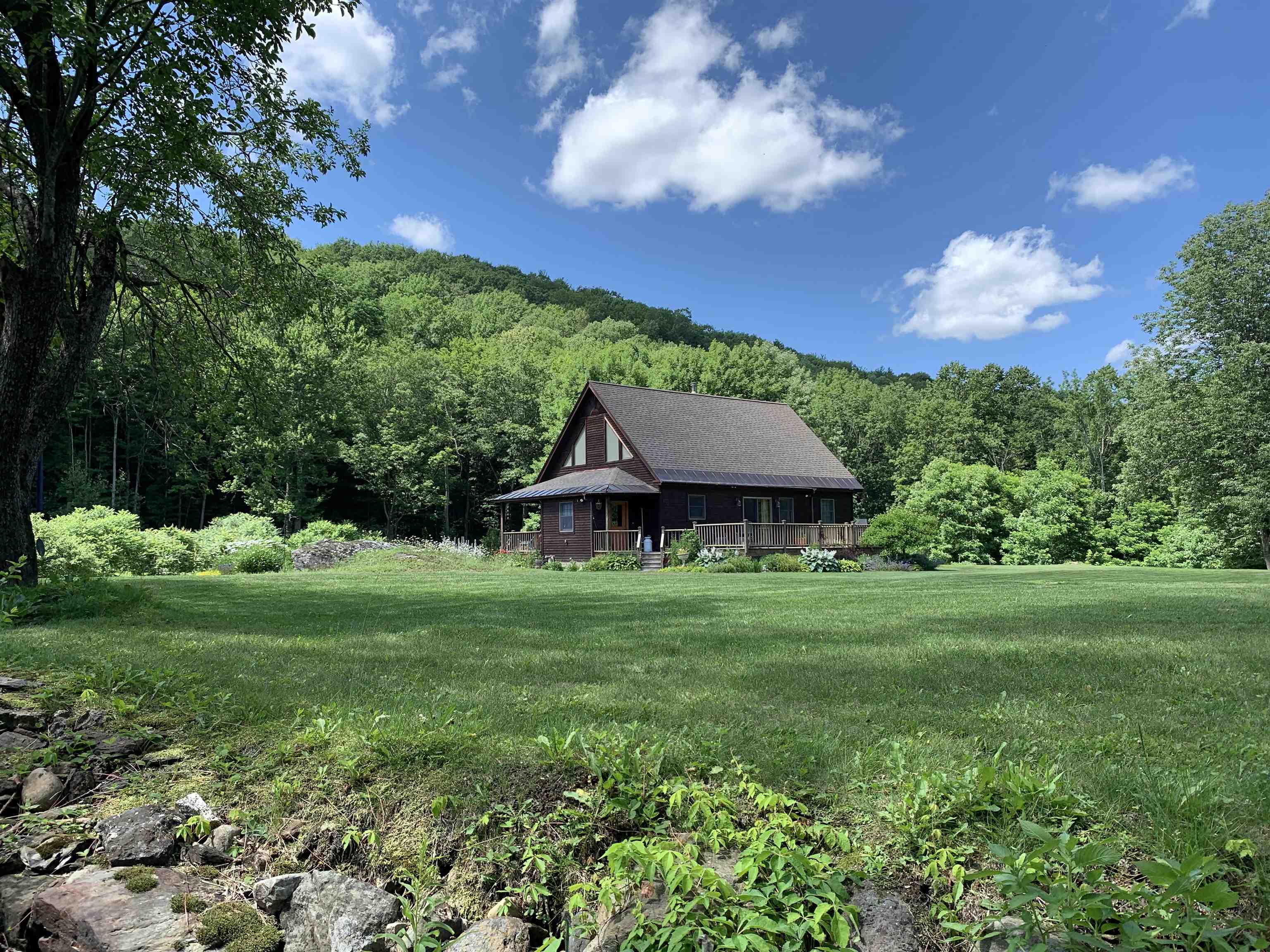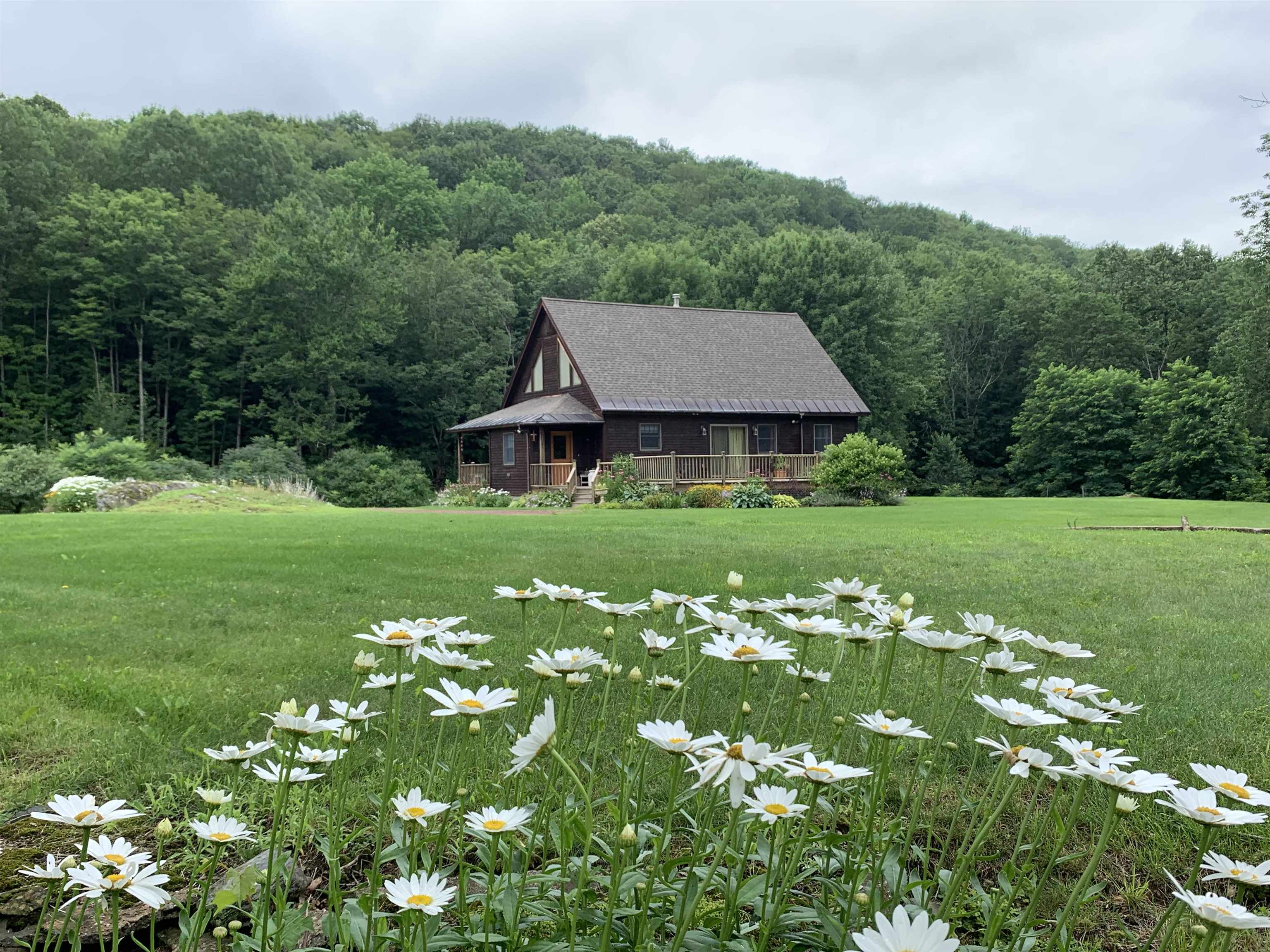 Set on 10. 42 acres, this well-maintained home features a grand yard with perennial gardens, sweeping driveway, rock wall, scattered trees, offering both privacy and beauty. Inside, soaring cathedral ceilings with exposed king post trusses create an impressive focal point, complemented by a loft sitting area ideal for a home office or private retreat. The spacious primary suite features an open flow, with double vanity and walk in closet. One of the downstairs bedrooms easily shuts off as a private guest suite. Two decks, including a 26’x16’ deck off the dining room, offer views of the sprawling, beautiful grounds. Spacious walkout basement with a new unit heater, large windows and French doors provides natural light and versatile living space. New and inspected fuel oil tank. Four new heat pumps provide additional heat and make a fully air-conditioned home, complemented by a newer automatic full-house generator for year-round comfort and peace of mind. Set on a quintessential Vermont country road, this home is just a short drive to lakes, Green Mountain hiking, and world-class skiing at Killington.