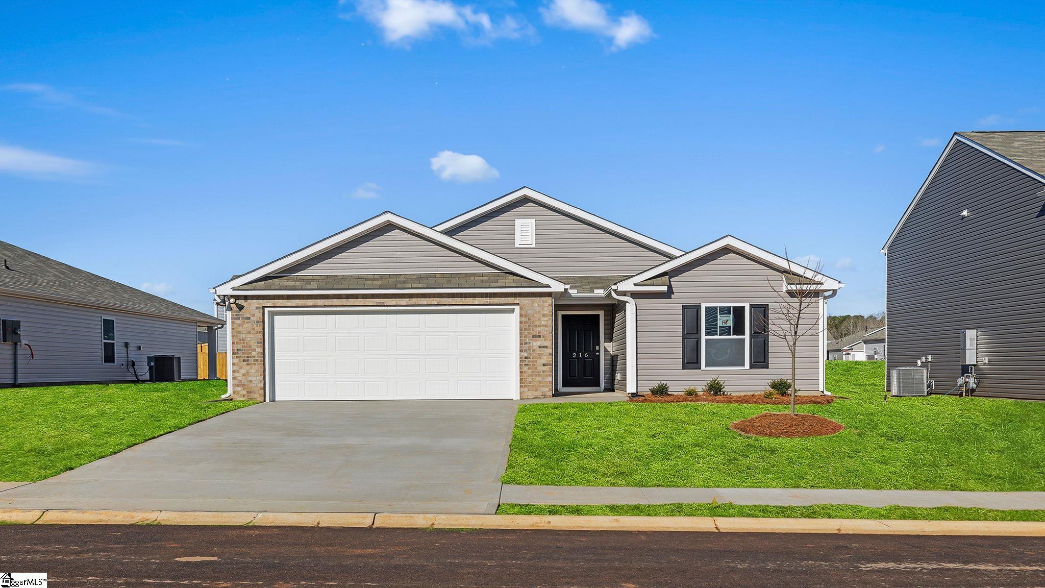 Check out 216 Pristine Drive, a beautiful new home in our Bentley Park community. This spacious one story home features three bedrooms, two bathrooms, and a two-car garage, with 1, 343 square feet of well-designed living space. As you enter, a welcoming foyer leads you into the open-concept living area, where the main living spaces flow seamlessly together, creating a sense of spaciousness and connection. The chef’s kitchen is equipped with stainless steel appliances, custom cabinetry, granite countertops, and a breakfast bar, making it perfect for both cooking and casual dining. The large great room is just adjacent, providing a comfortable space for family gatherings and relaxation. The primary suite is a peaceful retreat, complete with an en suite bathroom featuring dual vanities and a walk-in closet. The two additional bedrooms features generous space and ample closet storage, with easy access to a well-appointed secondary bathroom. Outside, you’ll enjoy a patio, ideal for outdoor entertaining or simply soaking in the beautiful weather. With its thoughtful design, spacious layout, and modern features, this home is the perfect place to call home.