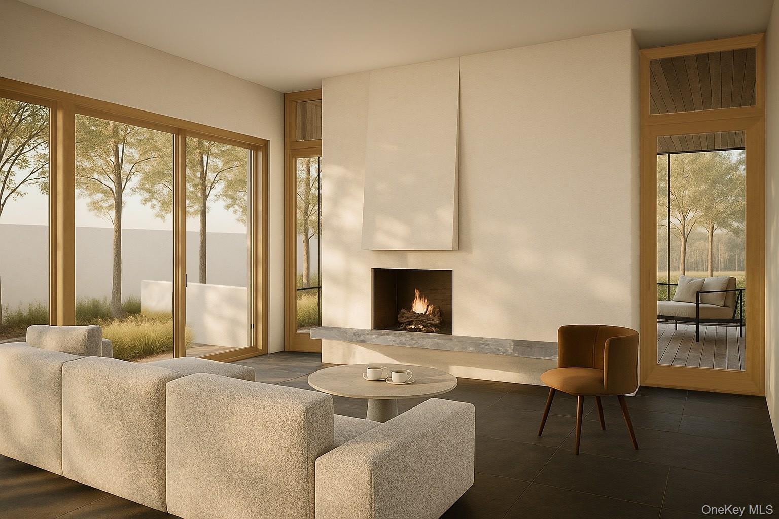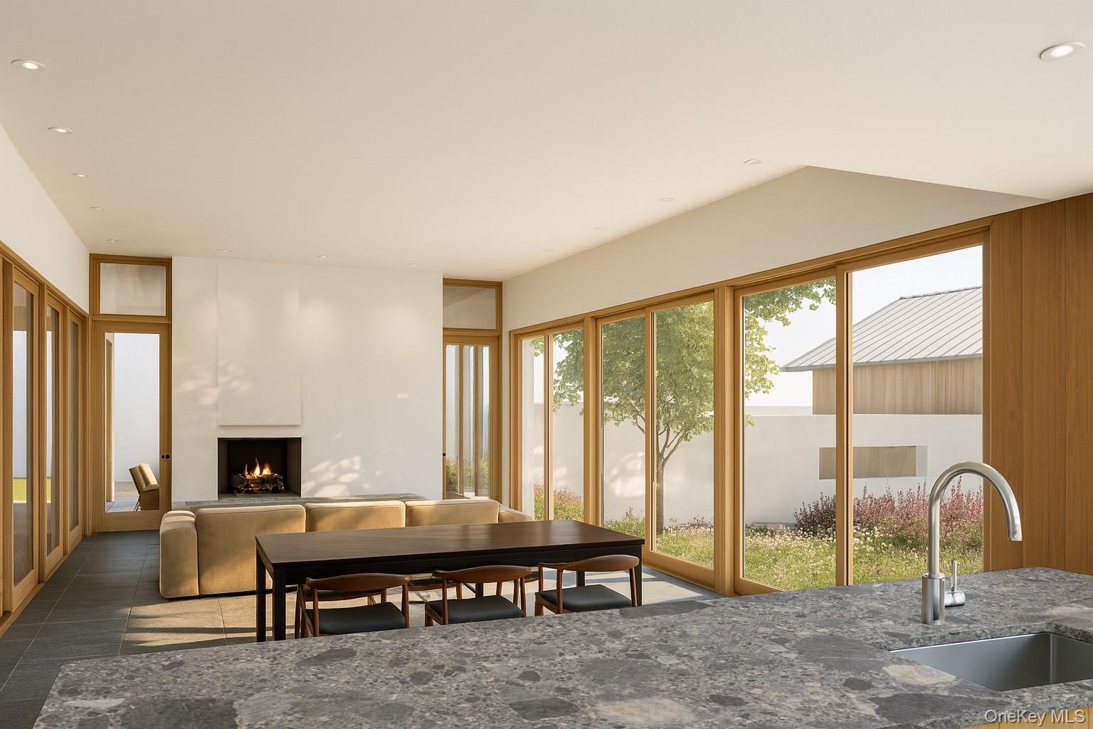 Tucked along a quiet bend in one of Accord's most picturesque country roads, this newly built residence feels like stepping into another era - one defined by timeless beauty, quietude, and a deep connection to the land. Sited on four private acres that blend open meadow and mature forest, the home is introduced by a long driveway that winds through the grassland, past a serene pond that borders the property. Inside, the home is a masterclass in high-performance luxury, with every material, finish, and mechanical system carefully chosen for both form and function. The main house offers three spacious bedrooms, each with its own en suite bath, plus a versatile first-floor flex room with access to a full bathroom ideal for guests or a fourth bedroom option. Belgian bluestone floors span the main level, transitioning to 7'' wide Mirage engineered oak upstairs. Custom white oak cabinetry anchors a sleek kitchen outfitted with integrated Miele appliances and Ceppo Di Gre stone countertops, while a central indoor wood-burning fireplace adds warmth and texture to the living space. Outdoor living is equally considered, with a cedar-screened porch featuring a second wood-burning fireplace and a six-seat Jacuzzi that invites relaxation in every season. A fully entitled accessory dwelling unit sits just beyond a private one-bedroom suite with a kitchenette, bathroom, and its own GE appliances, offering endless flexibility for guests, rental income, or studio use. The estimated completion is December 2025. Sustainable, stylish, and rooted in place, the home is built to exceed expectations. With a high-performance envelope (R35. 5 walls, R60 roof), standing seam metal roof, cedar siding and decking, and a ground-source heat pump system by Dandelion, the residence is as efficient as it is beautiful. A two-car garage, unfinished basement, and enclosed courtyard complete the offering. Framed by classic red barns, rolling farmland, and orchards, the surrounding area evokes a pastoral elegance rarely found in modern life. Moments from the acclaimed Inness resort, Arrowood Brewery, and the vibrant creative energy of Accord and nearby Stone Ridge, this property is a rare convergence of modern design, rural tranquility, and cultural richness - all to be completed by December 2025.