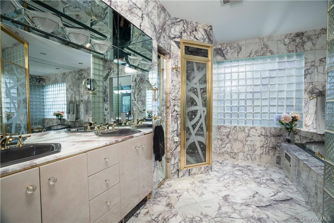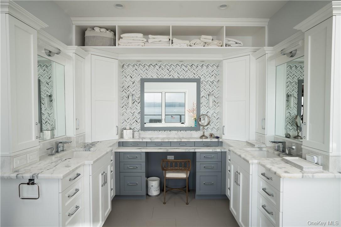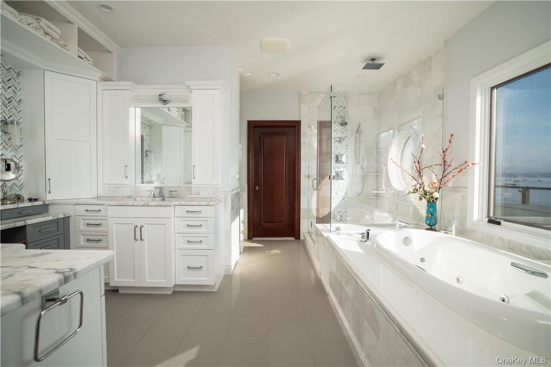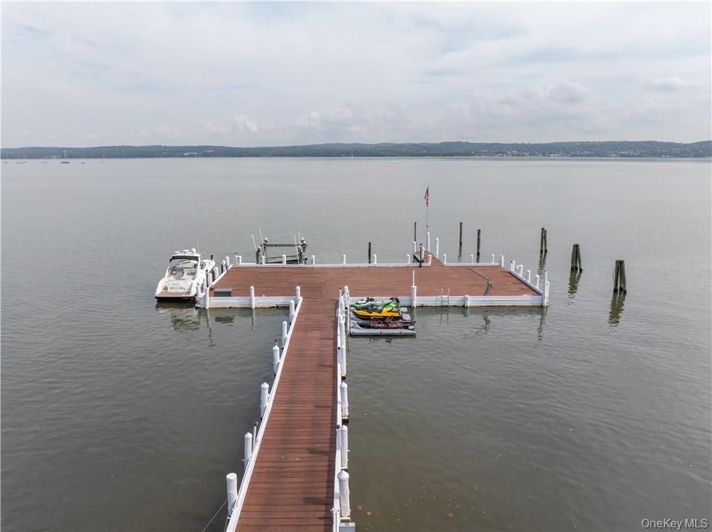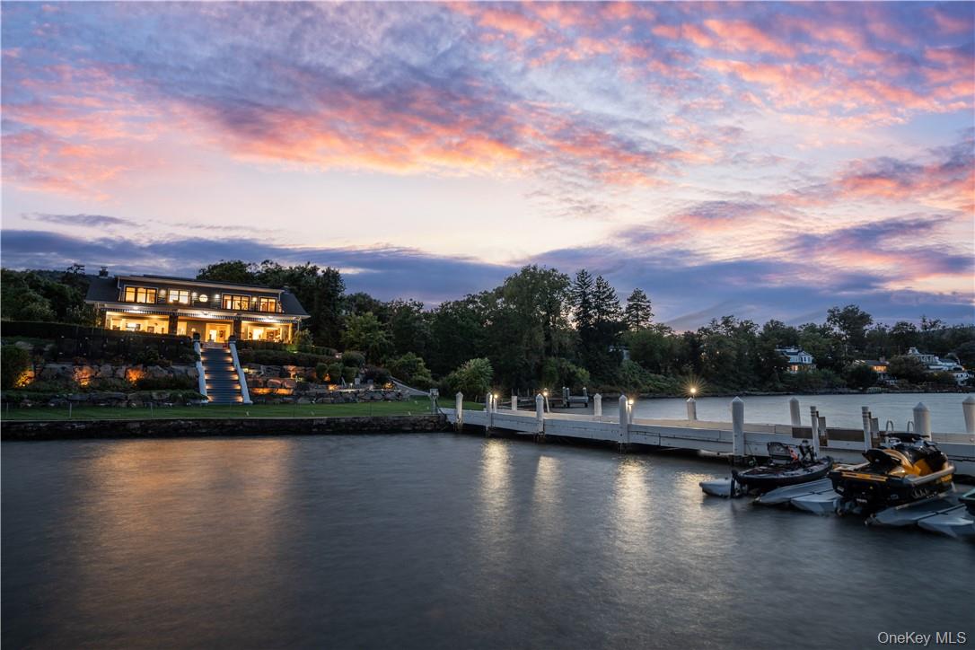 Introducing a truly unique sanctuary nestled in a private enclave directly on the Hudson River, just slightly north of the Mario Cuomo Bridge. A Boater's Dream House! This luxurious four-bedroom, five-bathroom residence offers both comfort and exclusivity. Included in the property is a fully updated one-bedroom apartment, above a three-car garage, complete with a bathroom, located on a separate lot. Fully renovated in 2022, the home blends timeless elegance with modern upgrades throughout. Enjoy the serenity of a cozy neighborhood while taking advantage of the largest privately owned residential dock, measuring 83'x36' between New York City and Albany. This impressive dock accommodates a 70-foot yacht, complete with a boat lift and three jet ski floats. As you enter the main house, you will be greeted by a breathtaking grand entrance. The ground floor boasts an inviting guest suite featuring a spa-like bathroom. Additionally, you will find one of two fully equipped laundry rooms on this level. A gorgeous library, adorned with custom built-ins and a surrounding movable ladder, providing access to all levels of this exquisite space with high ceilings. The new gourmet kitchen is a chef’s dream, equipped with premium appliances including a 48-inch Viking gas range, Thermador refrigerator, large pantry with a Frigidaire freezer, a porcelain farmhouse sink, and a double wall oven with convection, steam and rotisserie. The kitchen island features a drawer-style microwave and a vacuum sealer, paired with built-in cabinets and a large quartz countertop island that seats five. The first floor also encompasses a spacious great room and a large dining area that can comfortably seat 12, both offering spectacular views of the Hudson River. The great room features a large stone fireplace at each end, showcasing panoramic views. The elevator from the first floor takes you to a full basement, which includes an additional bathroom and potential maid quarters. The second floor leads to the luxurious primary master suite, featuring a spa-like bathroom with marble walls, his and her oversized custom closets, and a balcony with a hot tub overlooking the Hudson River. This level also includes another laundry room and two additional bedrooms, both with river views. Step outside to a covered deck, complete with a fully equipped outdoor kitchen. Stepping off the porch down to a park-like setting featuring multiple levels of landscaping that enhance outdoor living at its finest. A staircase leads down to the river level, offering an additional seating and viewing area with a large stone fire pit. Additionally there is a full house generator, and the roof is equipped with 70 solar panels, significantly reducing electrical bills, especially during the summer months. Additional Information: Includes a separately deeded lot with a 3-car garage and a finished apartment above.