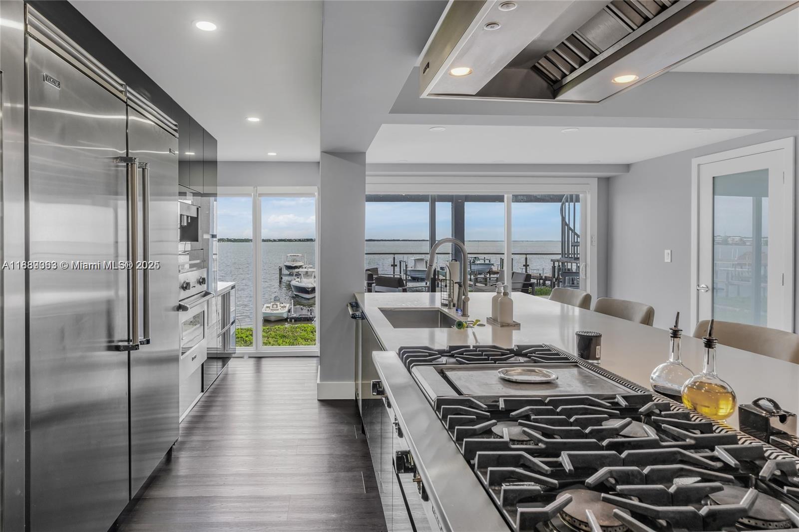 boat lift, sandy beach access, and a chef's kitchen with granite counters and stainless appliances. The third-floor